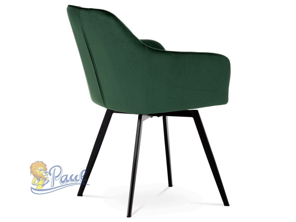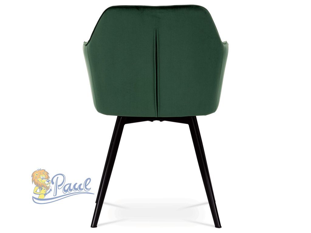 Jídelní židle, potah smaragdově zelená sametová látka, kovové nohy, černý matný lak
