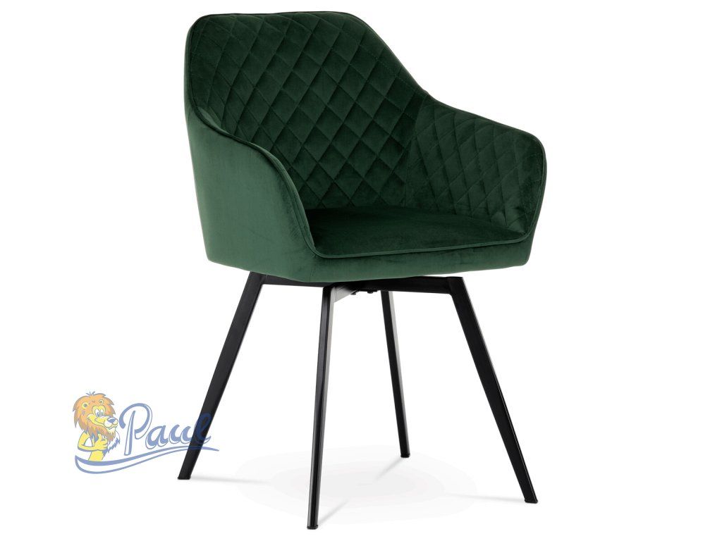 Díky svému dokonalému designu je tato židle v industriálním stylu nezaměnitelná a zároveň velmi pohodlná. Skořepina sedáku a opěradla má potah z kvalitní látky v smaragdově zeleném matném sametu. Polstrování je z PU pěny. Velmi dekorativním prvkem je výrazné kosočtvercové prošití vnitřních ploch v barvě potahu a paspule po obvodu celé skořepiny. Vybraná látka se také velmi dobře čistí. Stabilitu židle zajišťují čtyři kónické kovové nohy obdélníkového průřezu s kvalitním práškovým nástřikem v černé matné barvě. Ukončené jsou černými plastovými kluzáky, zabraňující poškození tvrdých povrchů podlah. Tato provedení produkují z tohoto modelu židle skvělou volbu pro zařízení obývacích či jídelních, ale také zasedacích místností. Nosnost židle je 110 kg. Bonusem této židle je otočný a vratným mechanismus, který umožňuje otáčení o 90° doleva a o 90° doprava a zároveň vždy vrátí sedák do původní polohy. Díky němu žiidle zůstanou vždy srovnané u stolu.Doplňkové parametry
