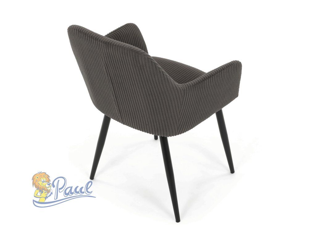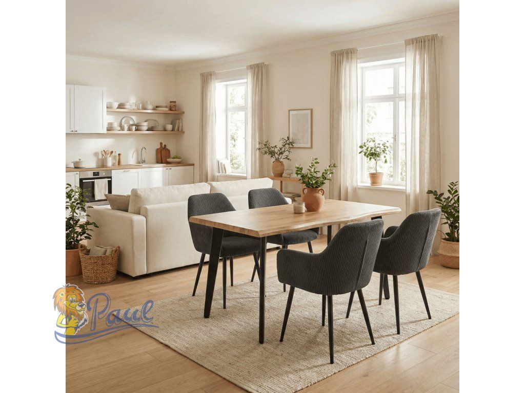 Čalouněná židle s područkami v šedém manšestru kombinuje pohodlí s moderním designem vhodným do jídelních prostor i kanceláří. Sedák a opěradlo jsou potažené příjemnou manšestrovou látkou, která nabízí měkký povrch s výraznou texturou, jež zároveň dobře odolává běžnému opotřebení. Pevné nohy z černě lakovaného kovu zajišťují stabilitu a dlouhou životnost, přičemž jejich štíhlý profil dodává židli lehkost a současně pevnost. Područky jsou ergonomicky tvarované a čalouněné stejným materiálem jako sedák, což přispívá k celkovému komfortu při sezení. Židle není otočná, což podtrhuje její jednoduchý a funkční charakter vhodný pro různé interiérové styly.Doplňkové parametry