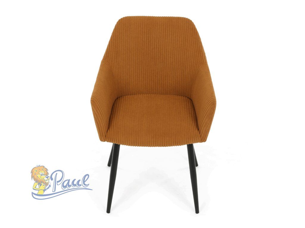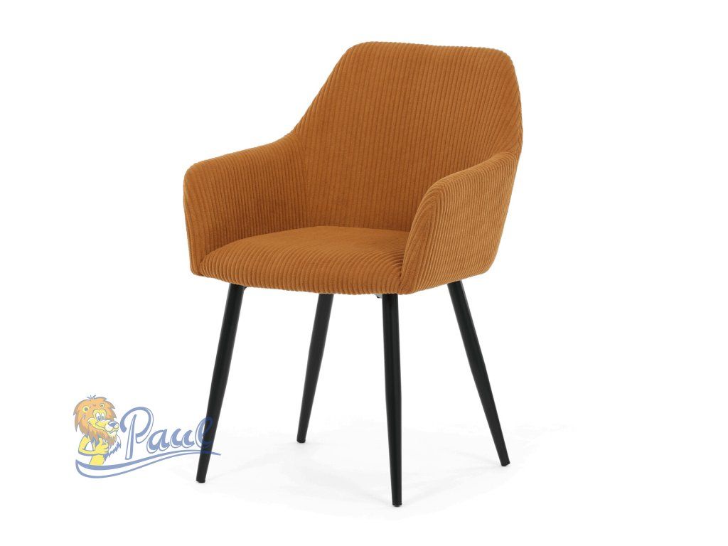 Čalouněná židle s područkami v hořčicově žlutém manšestru nabízí pohodlné sezení s příjemnou texturou látky, která je příjemná na dotek a snadno se udržuje. Sedák i opěradlo jsou vyplněny měkkou pěnou, která zajišťuje komfort i při delším sezení. Stabilní kovové nohy v černém matném provedení dodávají židli pevnost a zároveň moderní vzhled. Područky jsou ergonomicky tvarované a čalouněné stejným materiálem jako sedák, což přispívá k celkovému pohodlí a estetice. Židle je určena pro běžné užívání v jídelnách či kancelářských prostorách, kde oceníte kombinaci designu a funkčnosti.Doplňkové parametry