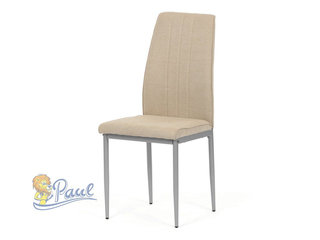 Židle jídelní, béžová látka, šedé kovové nohy