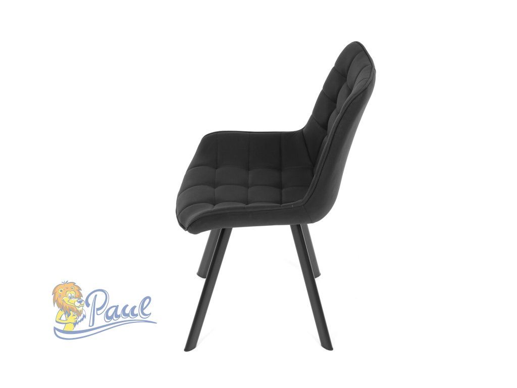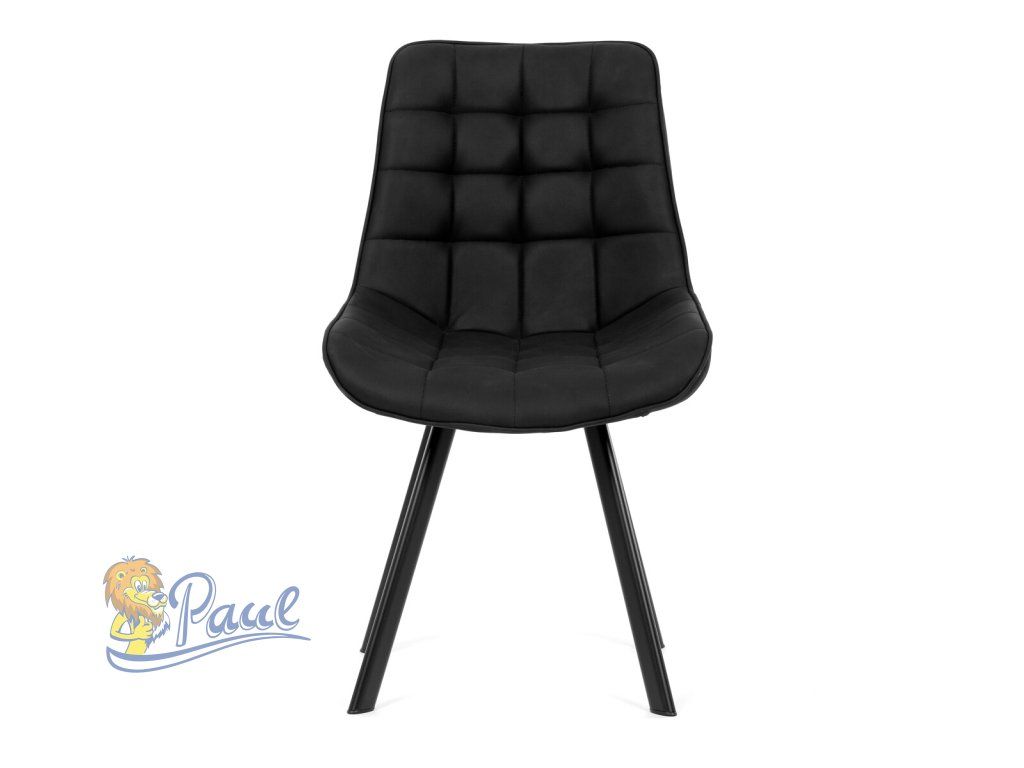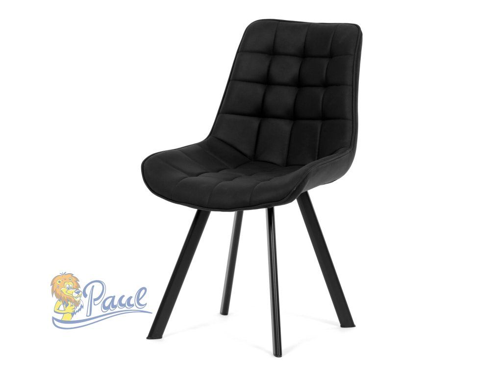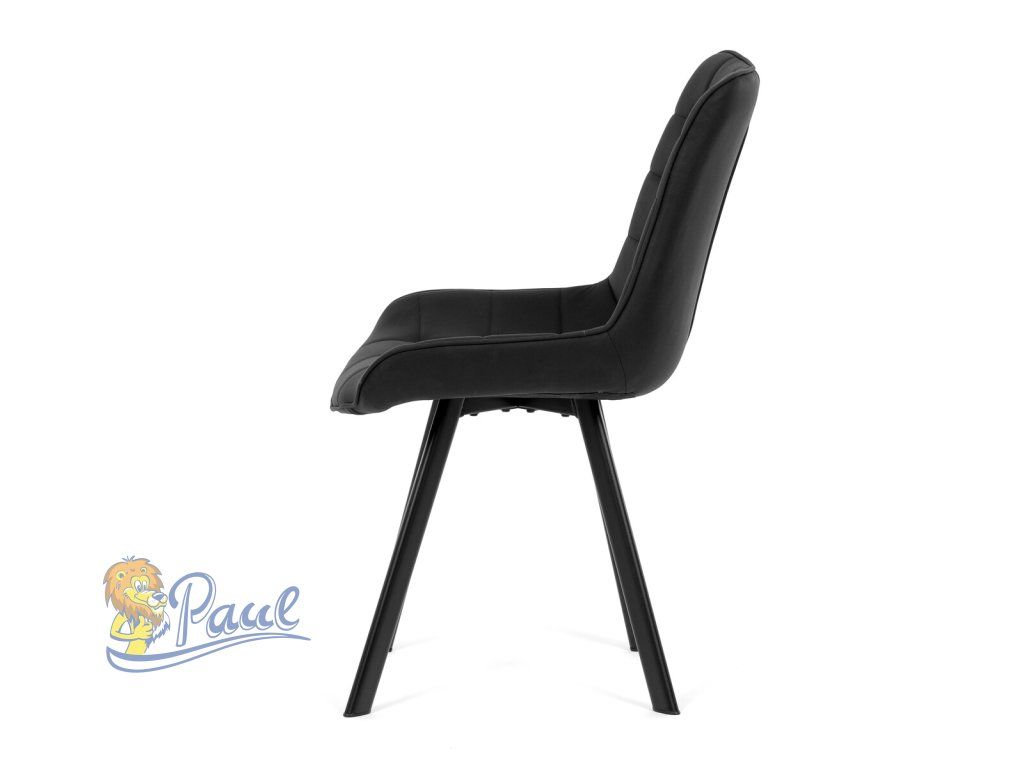 Židle jídelní, černá látka v dekoru broušené kůže, černý kov