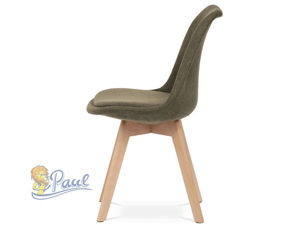 Židle jídelní, hnědá látka, nohy bukové dřevo