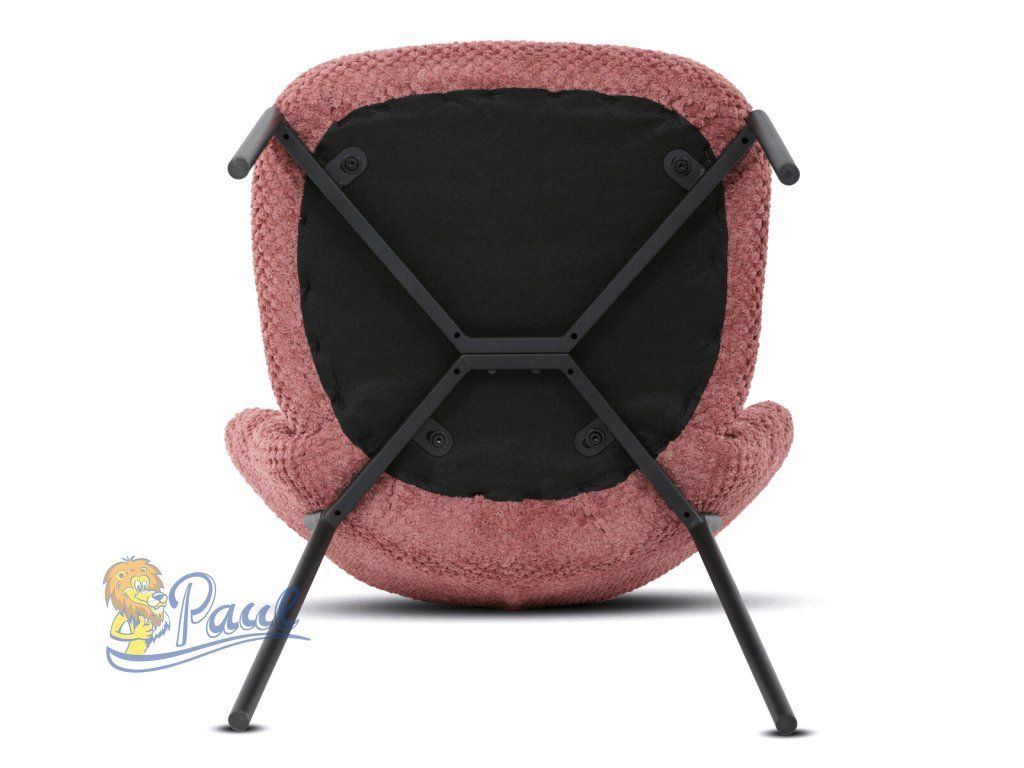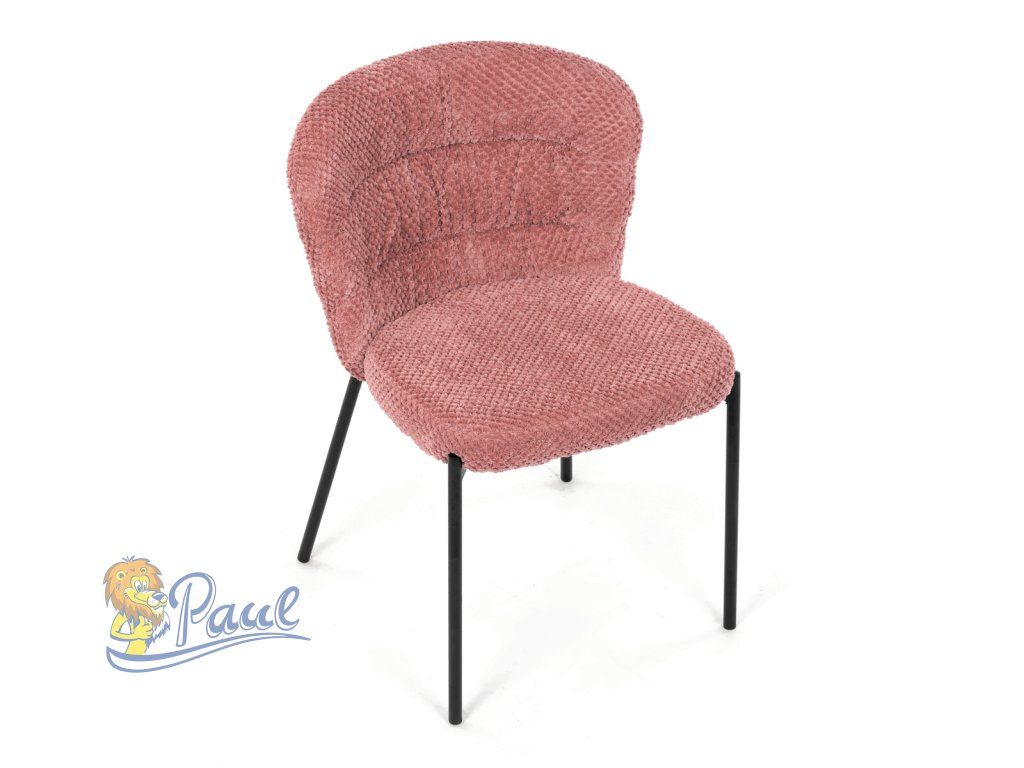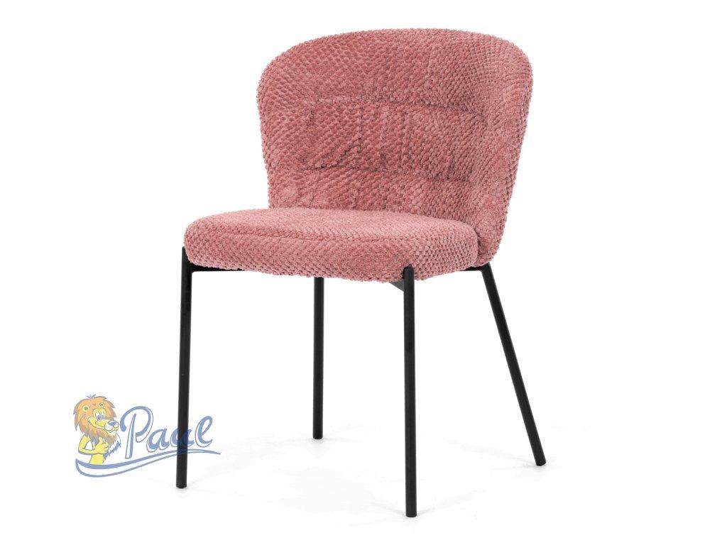 Židle jídelní, růžová látka, černé kovové nohy.