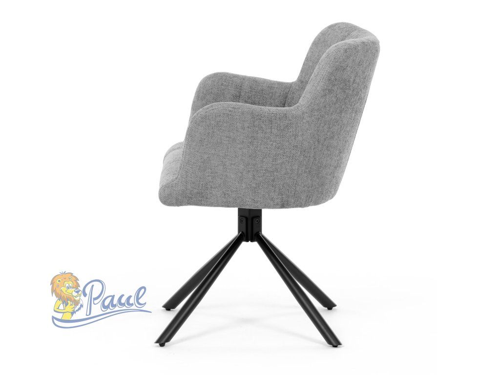 Židle jídelní, šedá látka, černý kov, otočný vratný mechanismus 90°/90° (L/P) - funkce reset