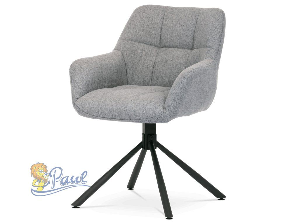 Židle jídelní, šedá látka, otočný mechanismus 90°/90° (L/P), černý kov
