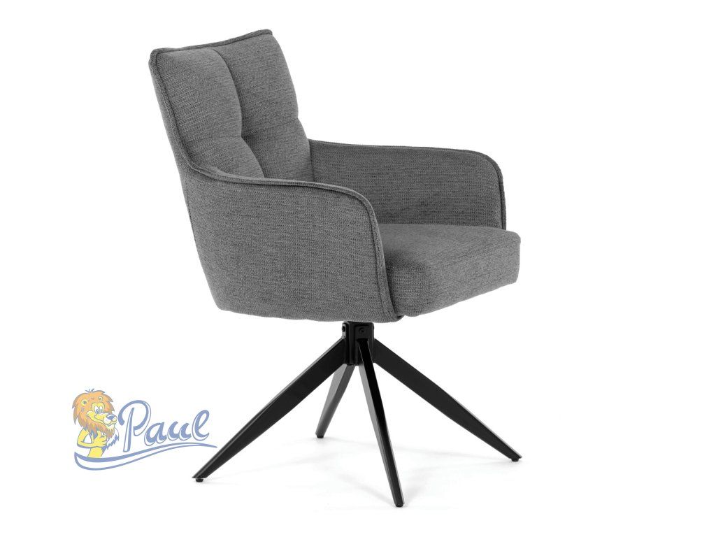 Židle jídelní, taštičkové pružiny v sedáku, 180° otočný mechanismus, šedá voděodolná látka, černý kov