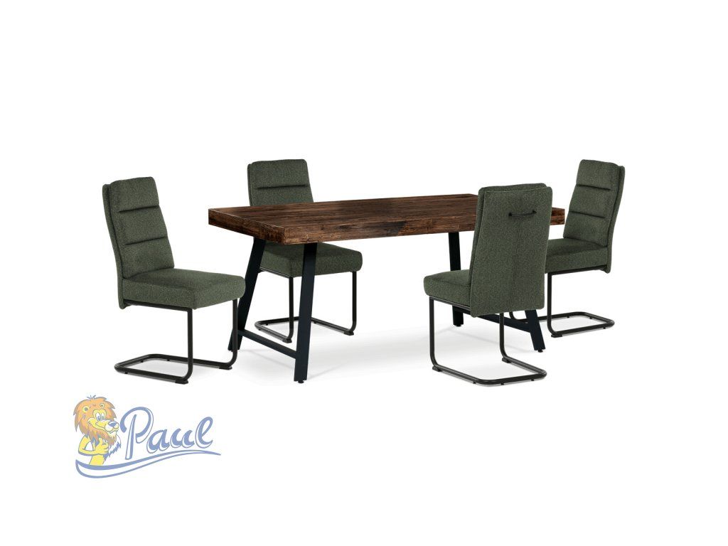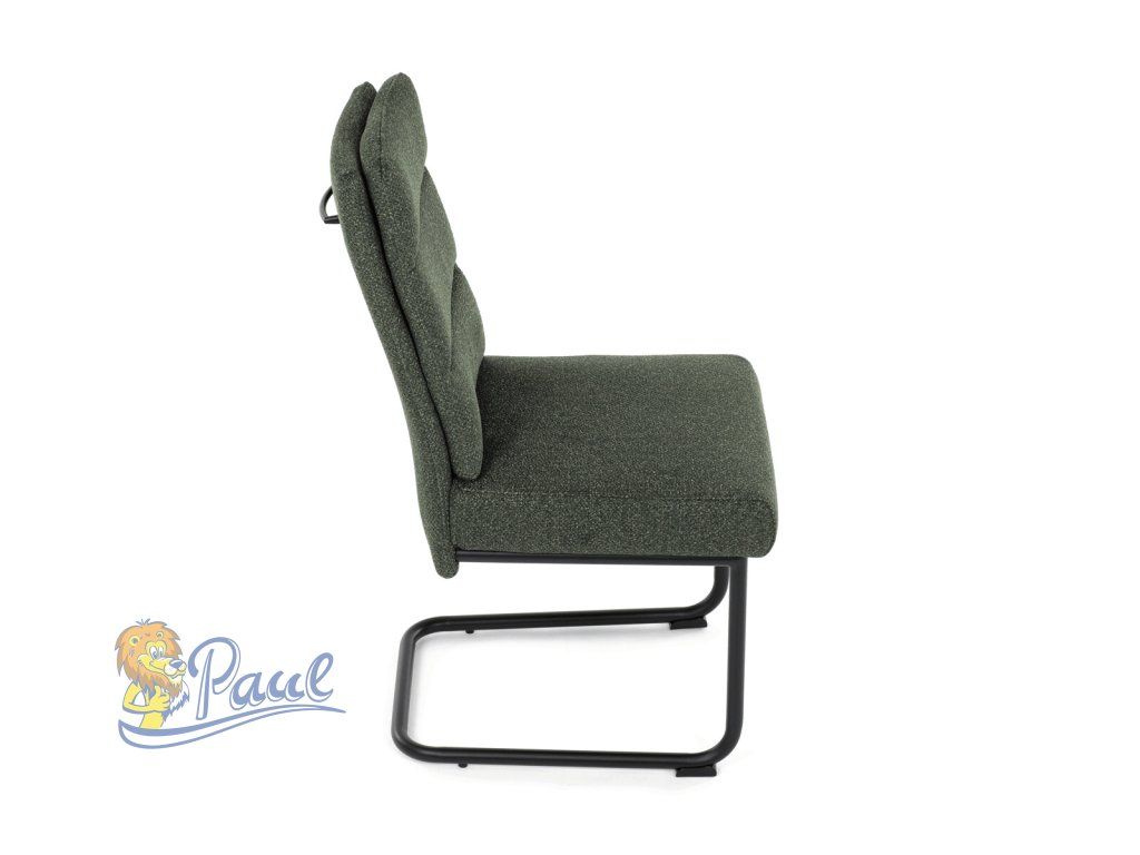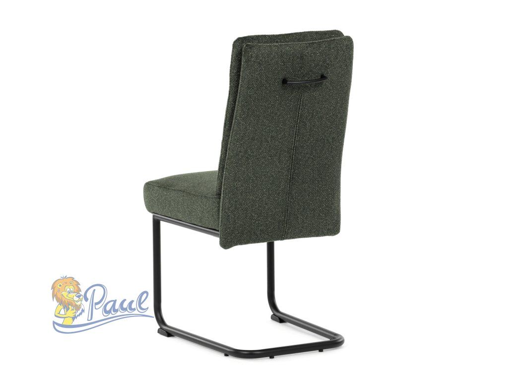 Židle jídelní, taštičkové pružiny v sedáku, madlo na opěráku, zelená látka, černý kov