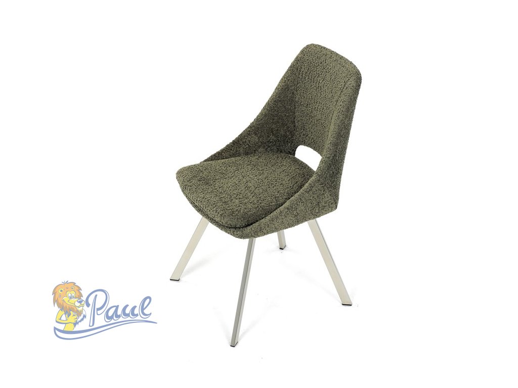 Židle jídelní, zelená látka, kovové nohy, broušená nerez.