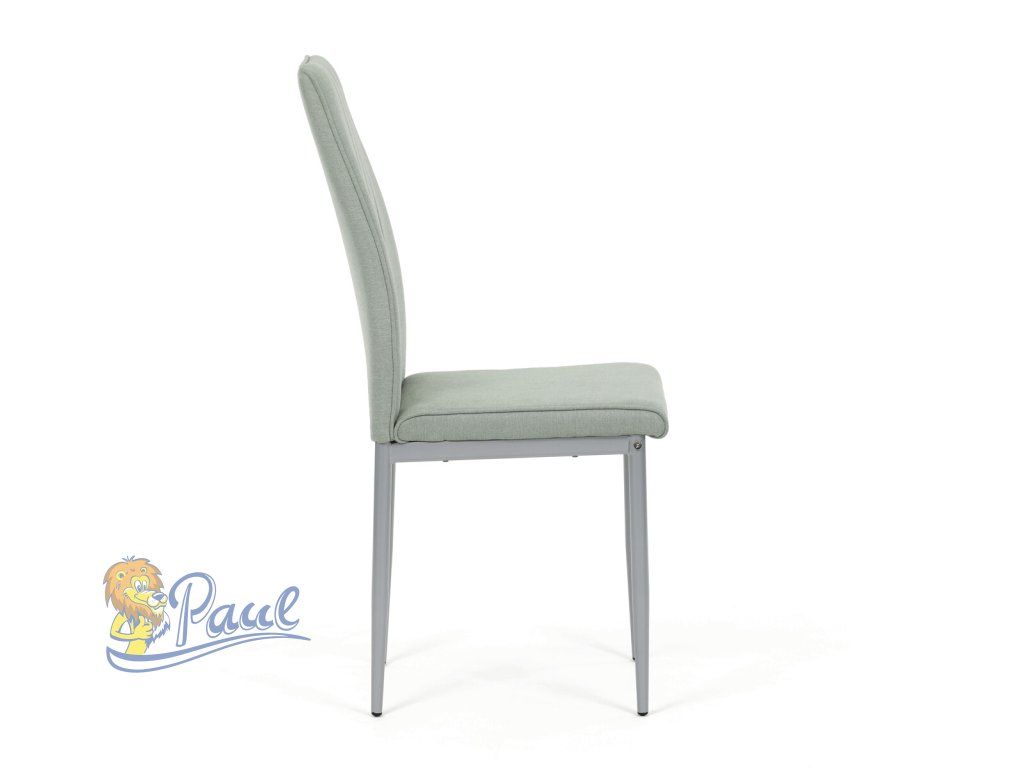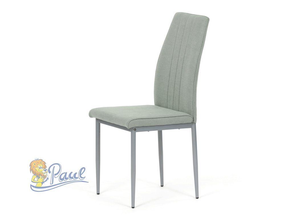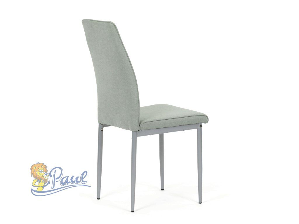 Židle jídelní, zelená látka, šedé kovové nohy