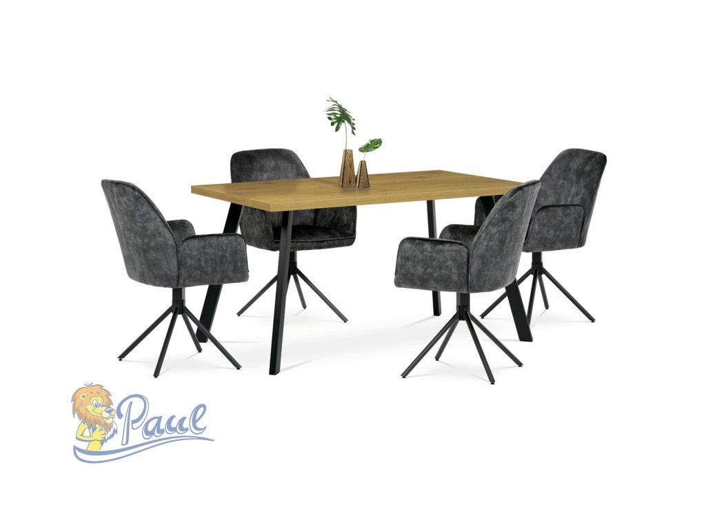 Židle jídelní a konferenční, černá látka v dekoru žíhaného sametu, kovové černé nohy