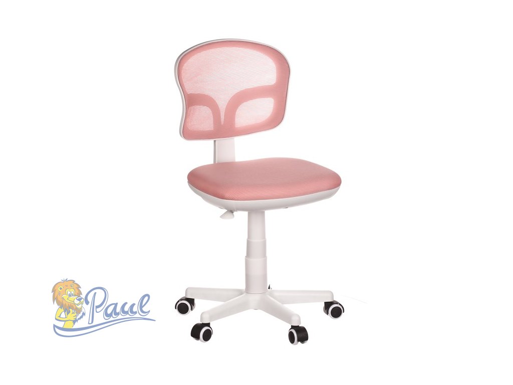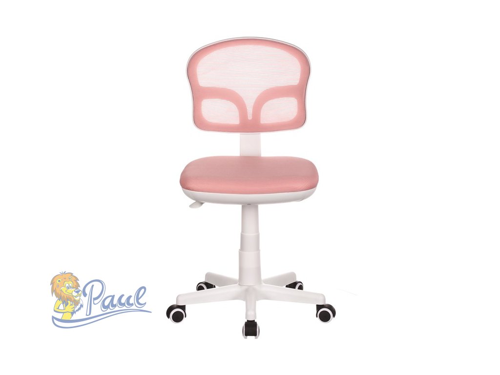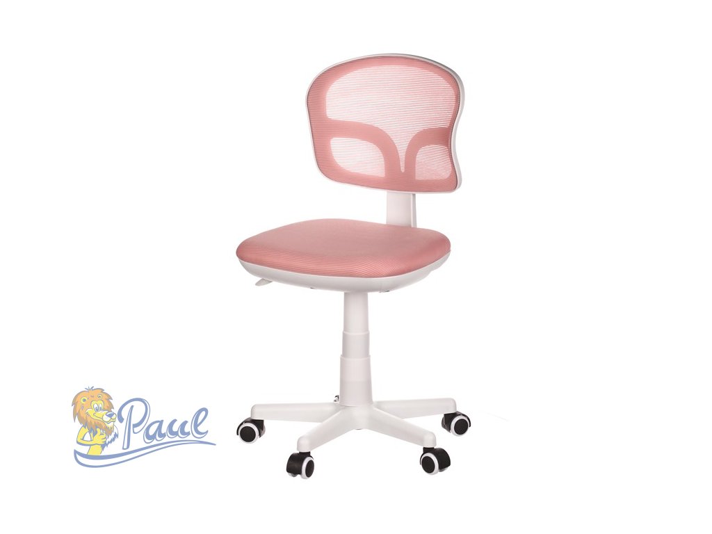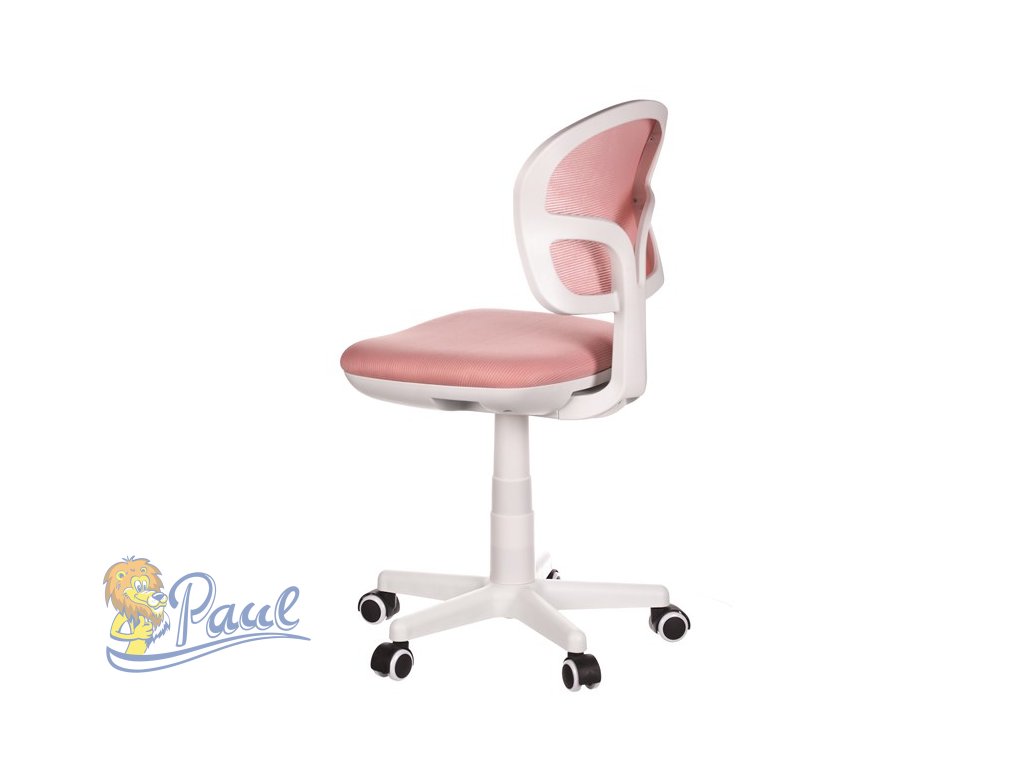 Dětská židle, růžová síťovina, bílý plastový kříž, kolečka na tvrdé podlahy