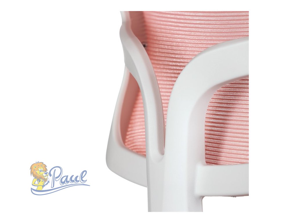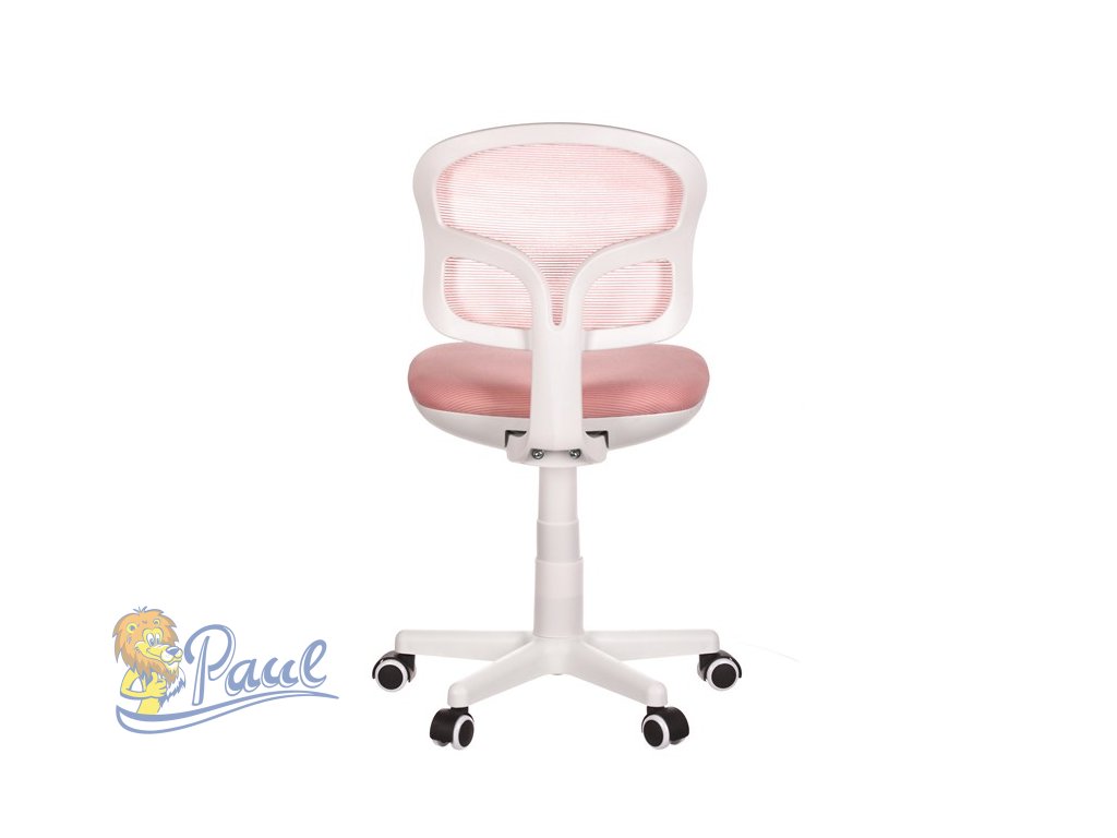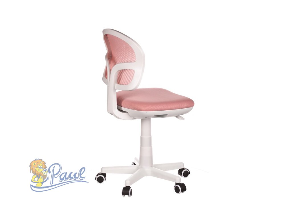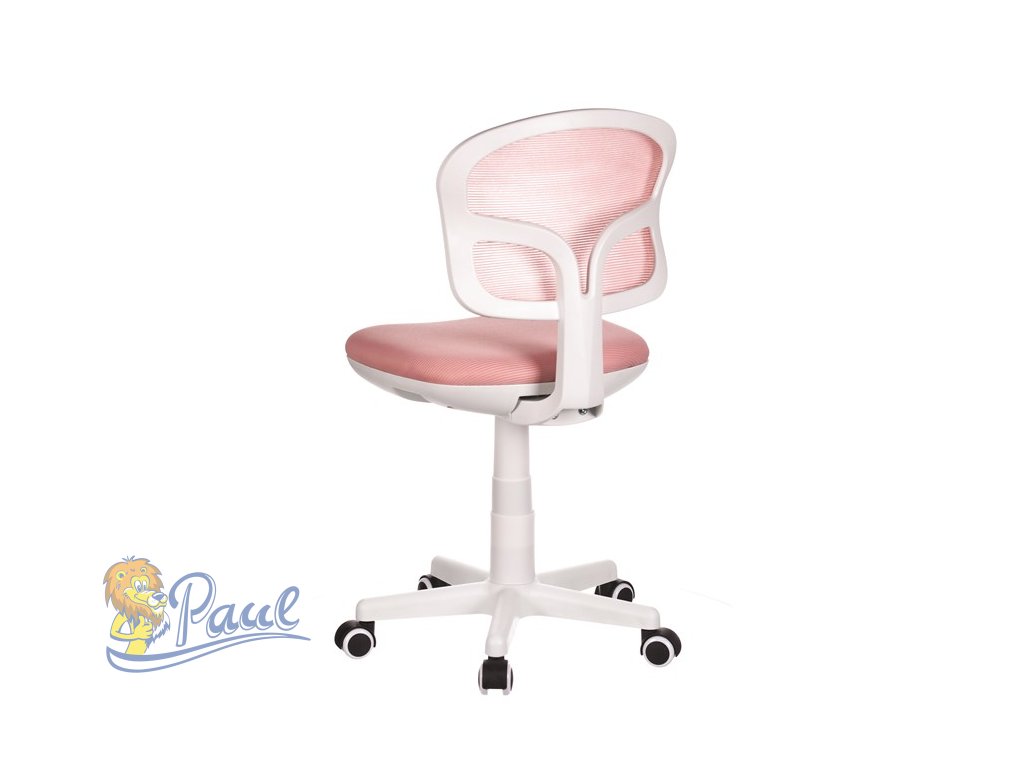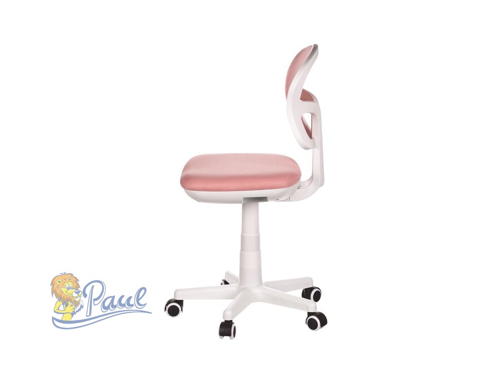 Dětská židle, růžová síťovina, bílý plastový kříž, kolečka na tvrdé podlahy