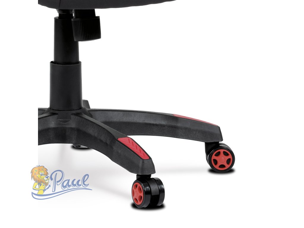 Herní a kancelářské křeslo E-racer s potahem z červené a černé látky nabízí ergonomicky tvarované opěradlo s integrovanou opěrkou hlavy pro podporu krční páteře. Sedák je vybaven vyměkčenou vrchní částí pro zvýšený komfort při dlouhodobém sezení, zatímco pevné čalouněné područky doplňují stabilitu a pohodlí. Křeslo disponuje houpacím mechanismem a možností výškového nastavení, což umožňuje přizpůsobení individuálním potřebám uživatele. Plastový kříž s kolečky určenými pro tvrdé povrchy zajišťuje snadnou mobilitu a stabilitu na různých typech podlah. Celkově je křeslo navrženo pro dlouhou životnost a komfortní používání v herním i kancelářském prostředí.Doplňkové parametry