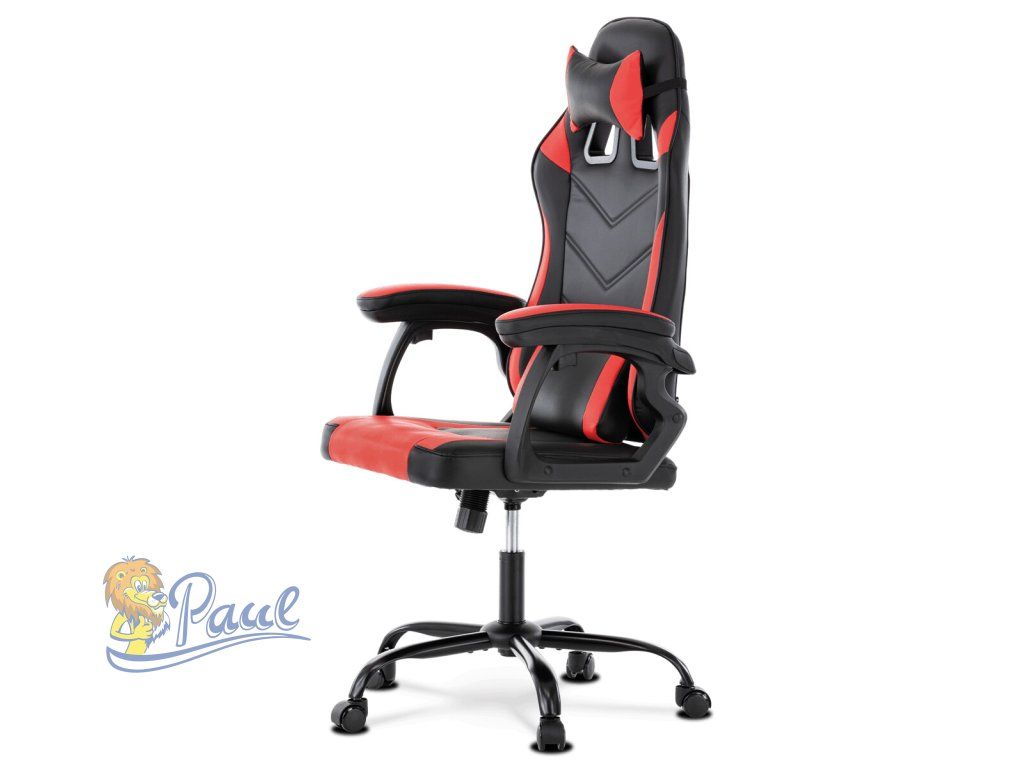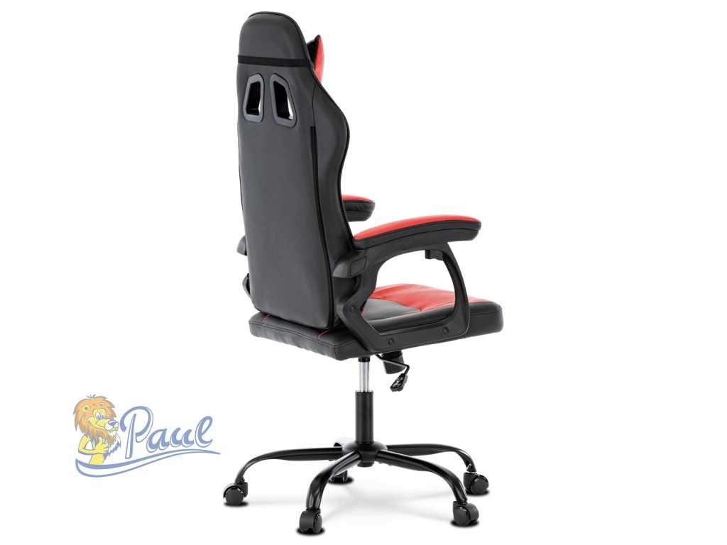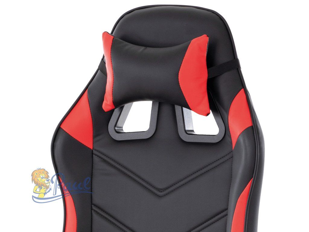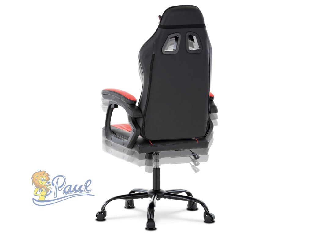 Herní křeslo, červená a černá ekokůže, houpací mechanika, opěrák 135°