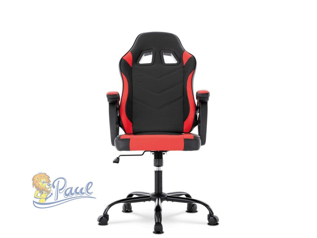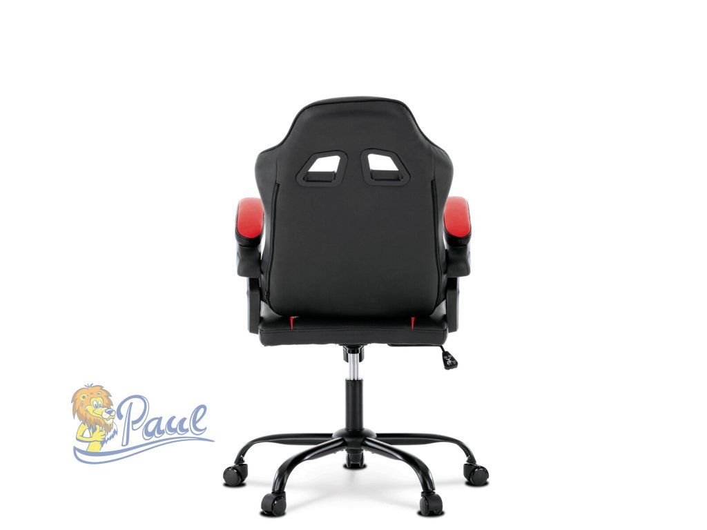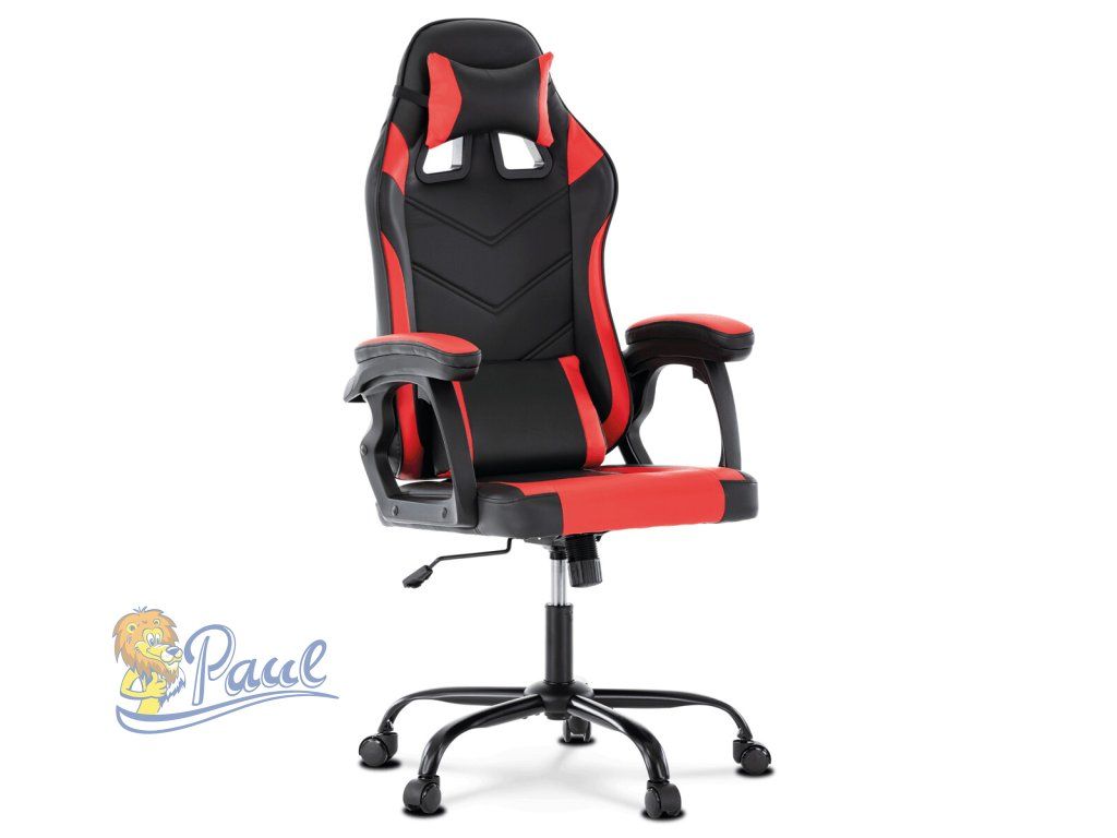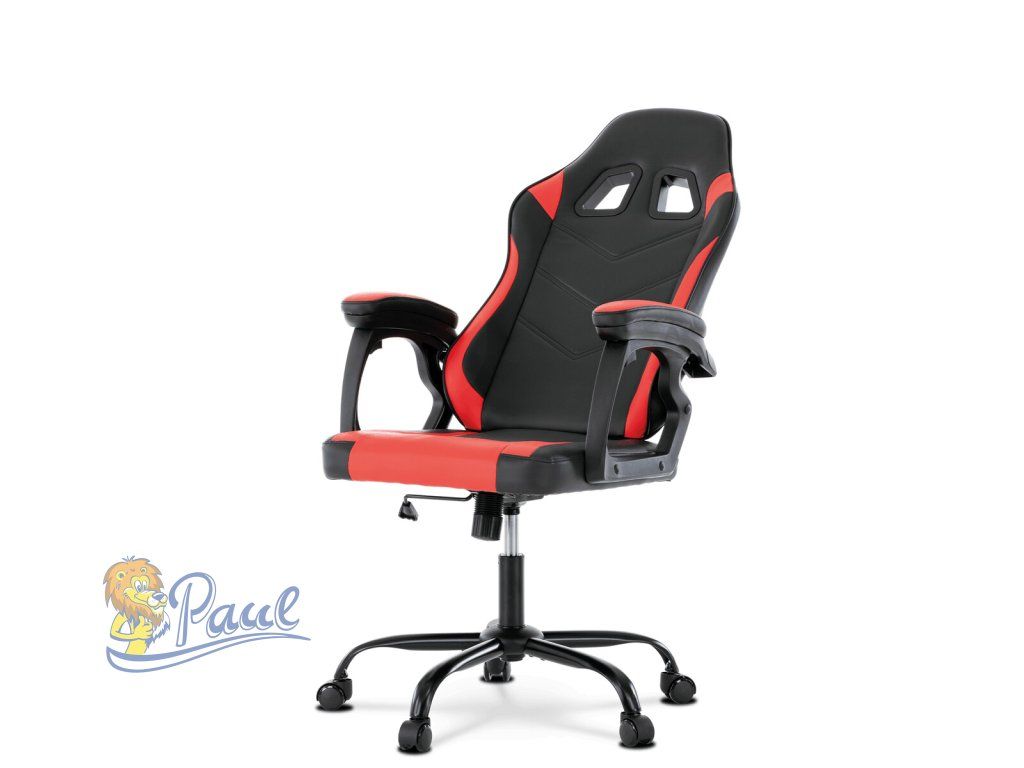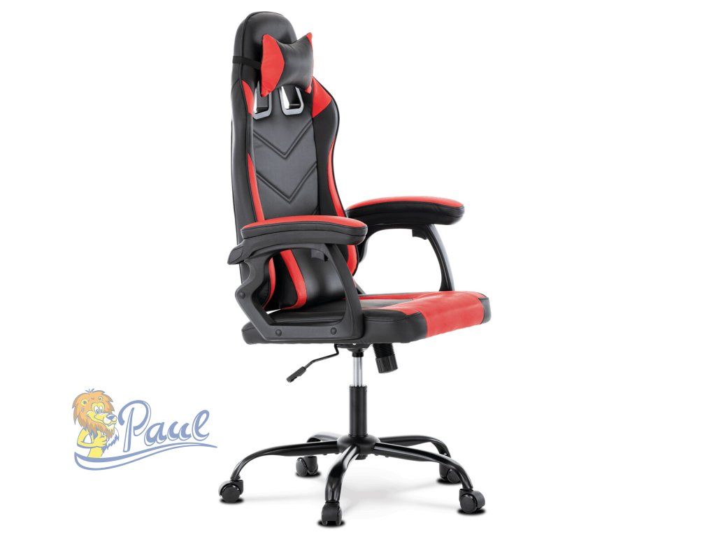Herní křeslo, červená a černá ekokůže, houpací mechanika, opěrák 135°