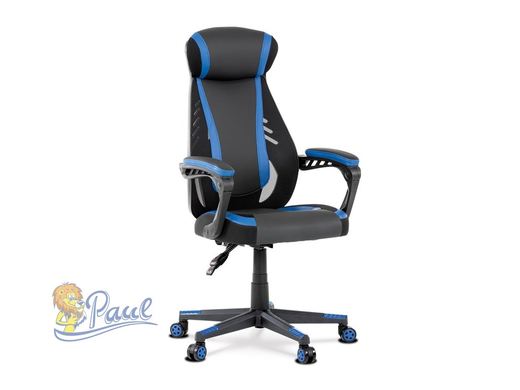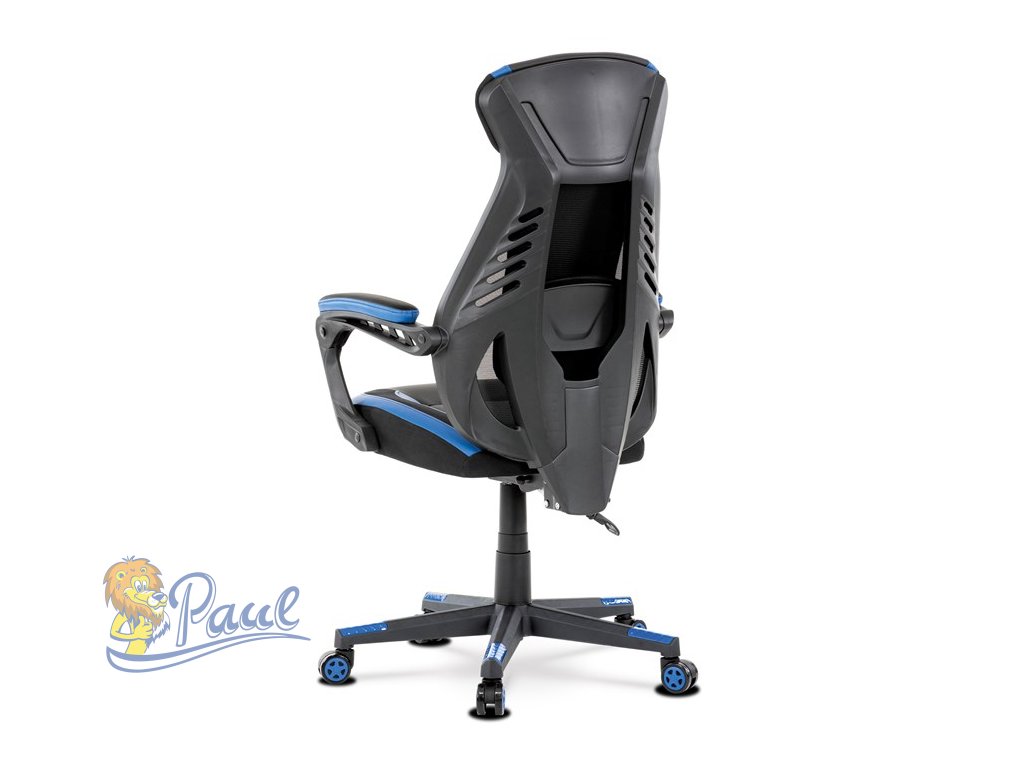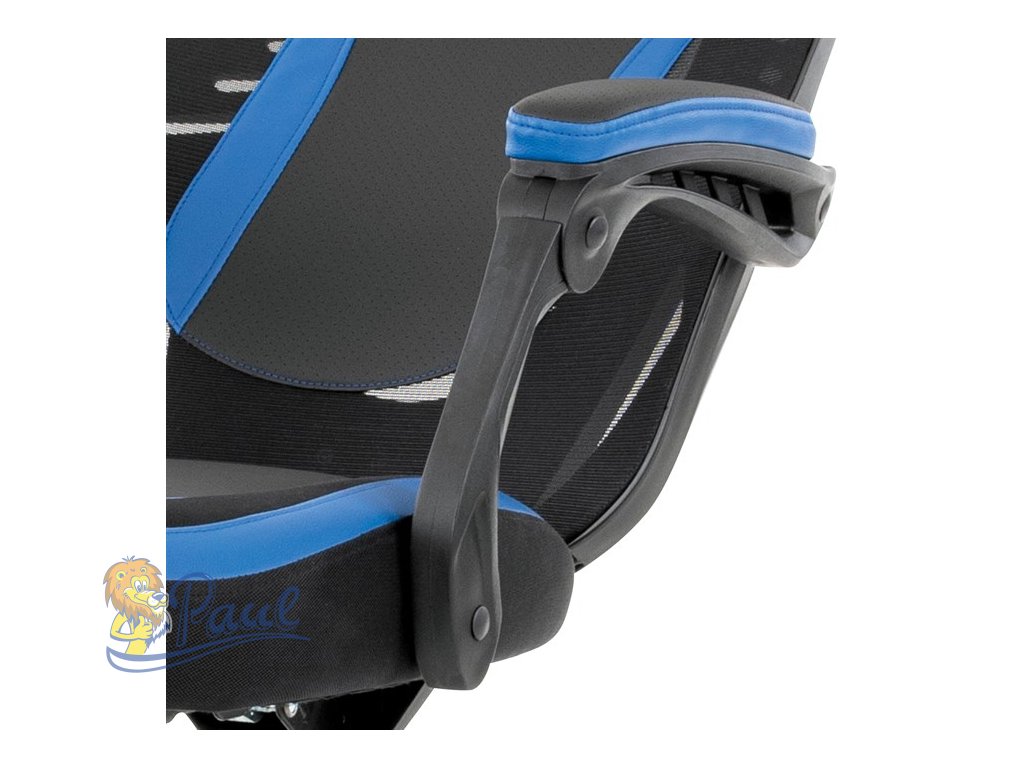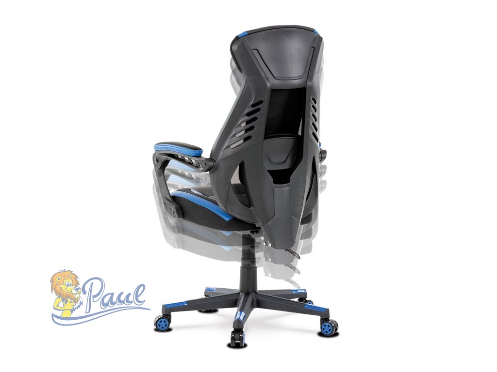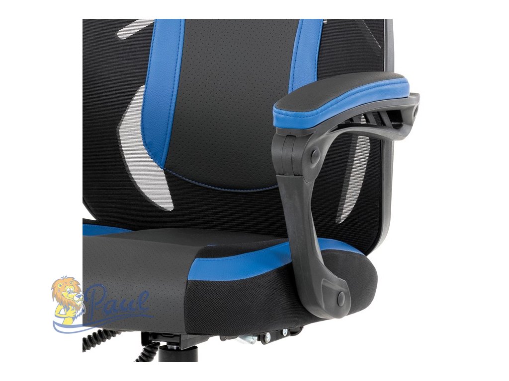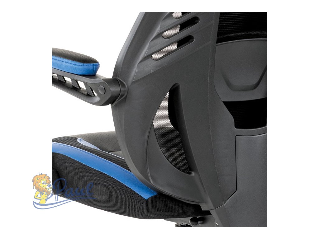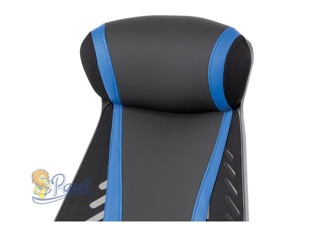 Herní křeslo, modrá, černá ekokůže a černá látka a síťovina MESH, PCA mech