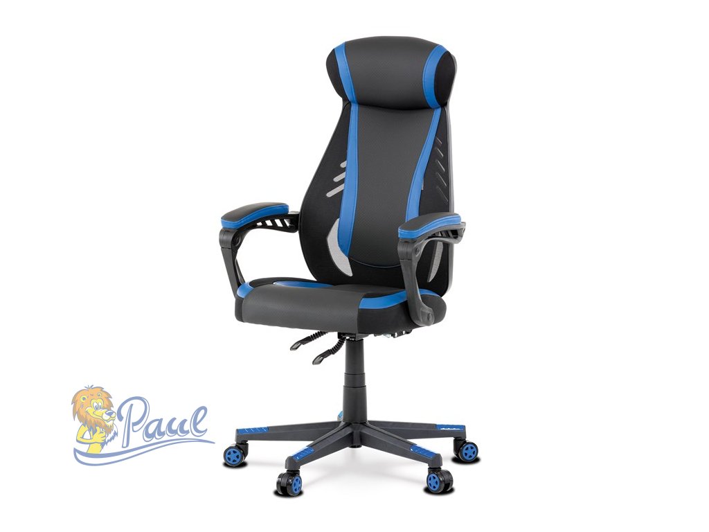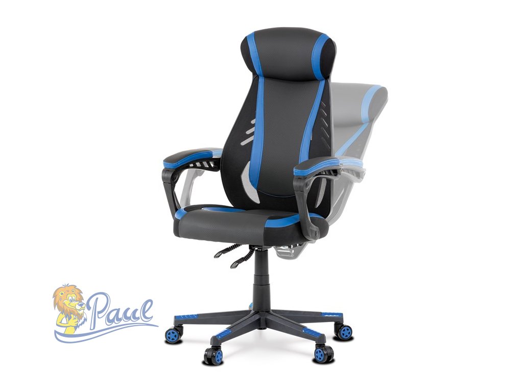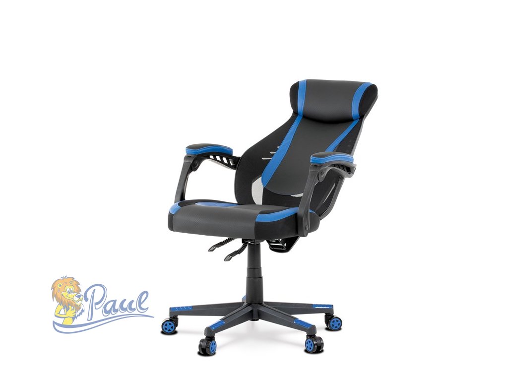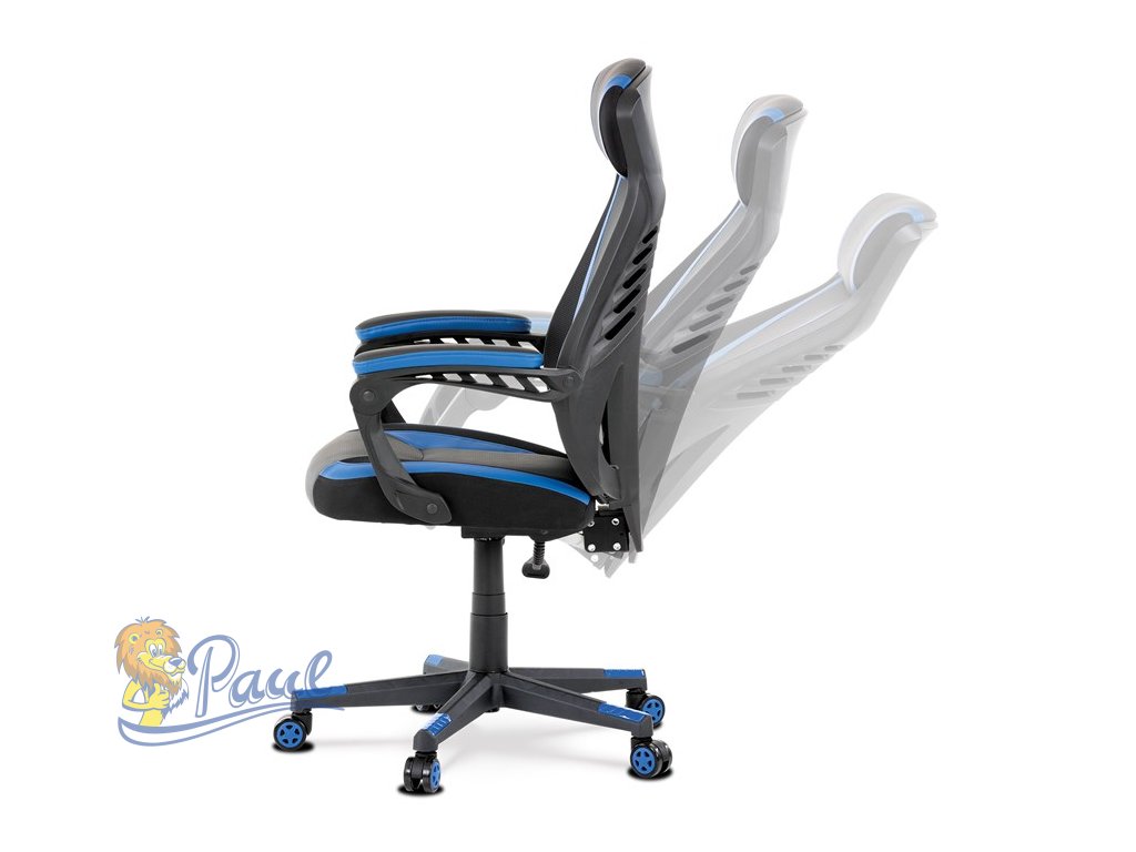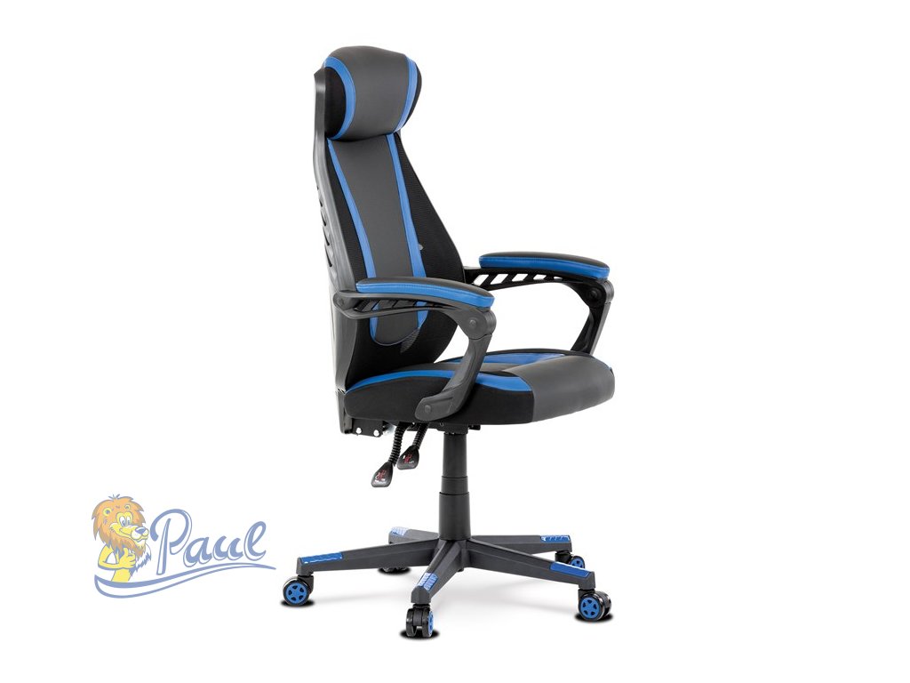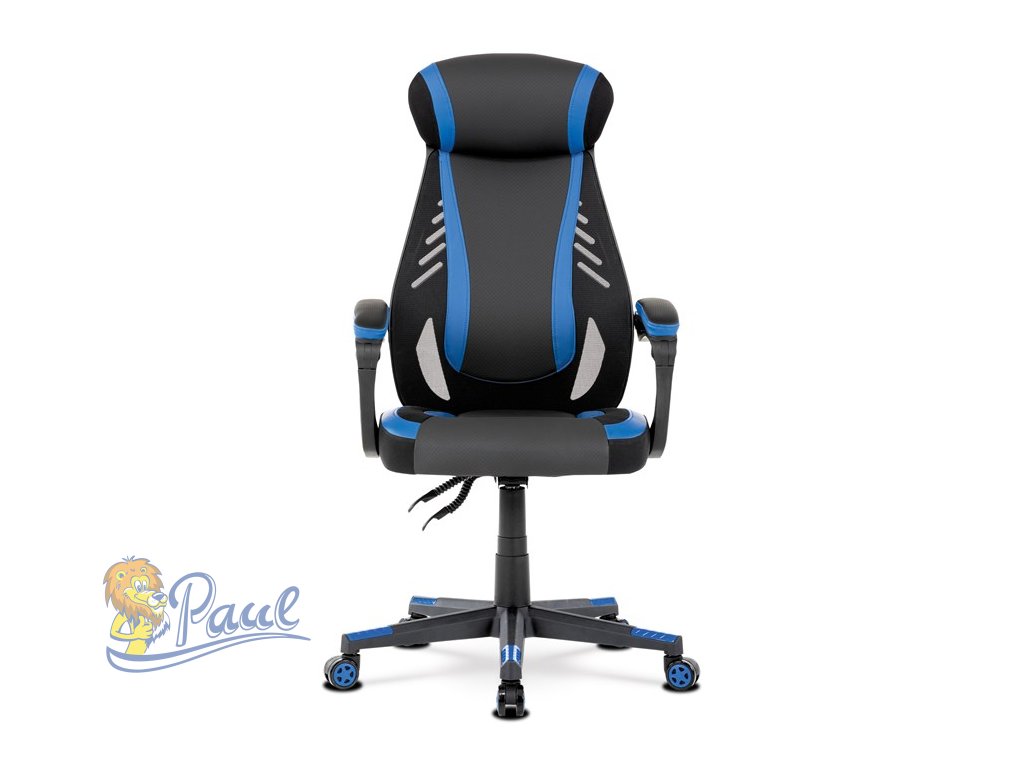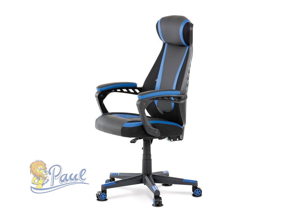 Herní křeslo, modrá, černá ekokůže a černá látka a síťovina MESH, PCA mech