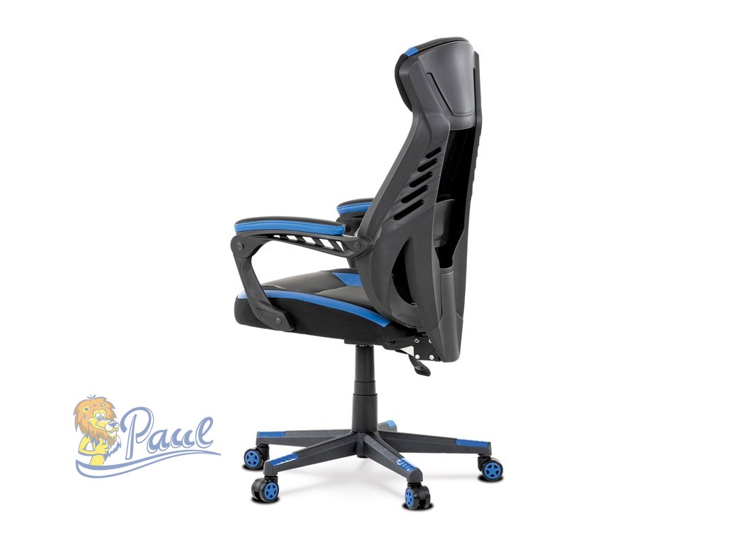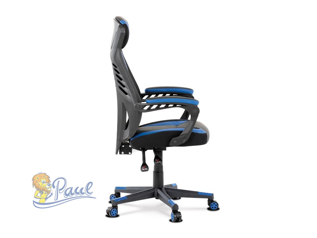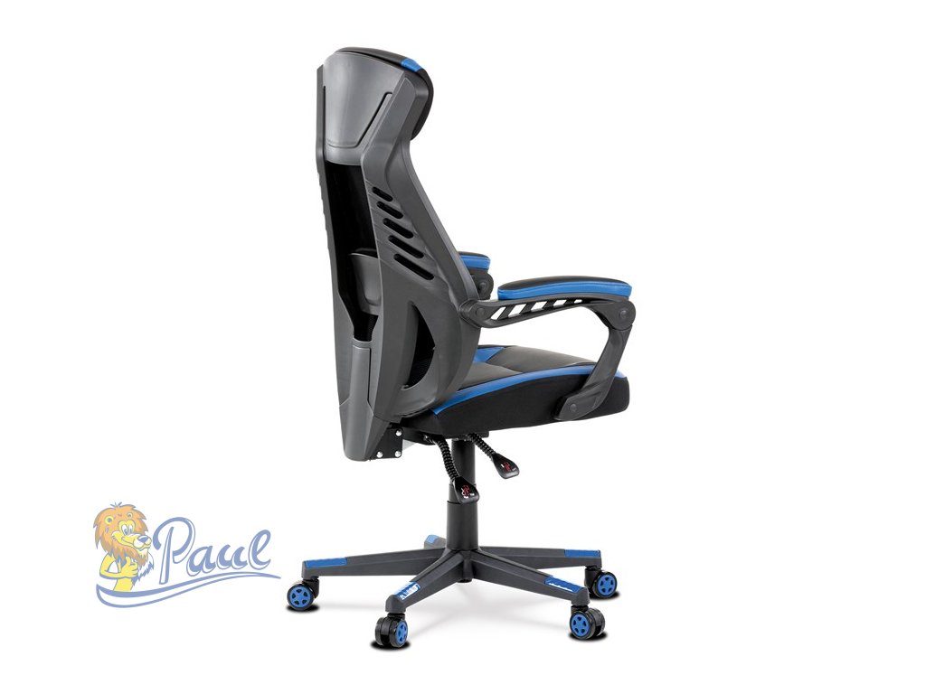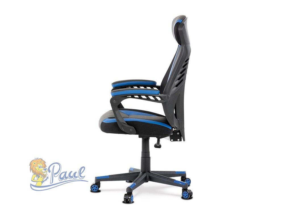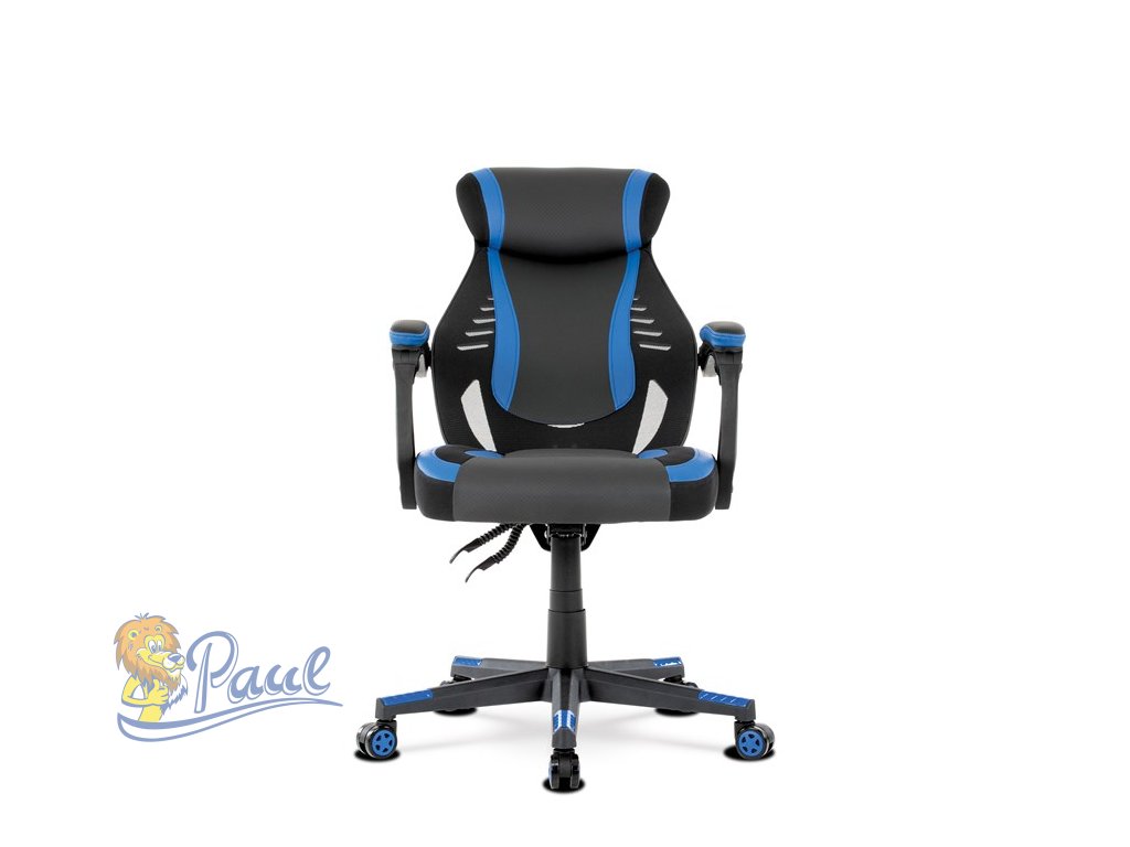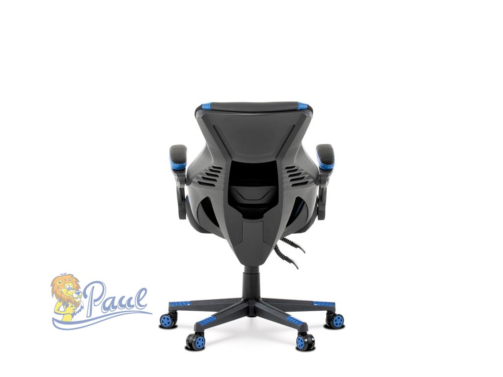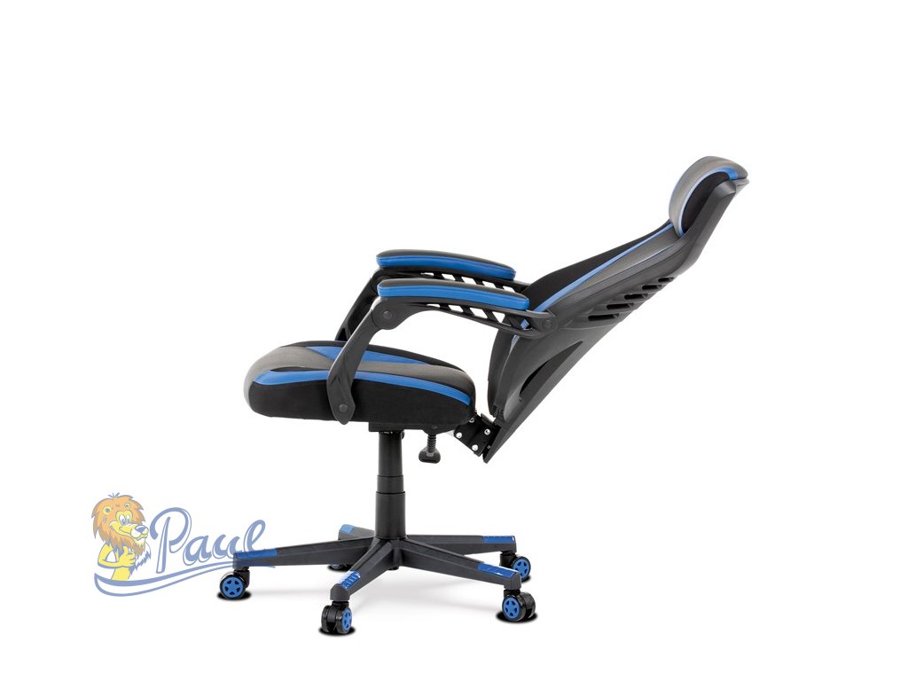 Herní křeslo, modrá, černá ekokůže a černá látka a síťovina MESH, PCA mech