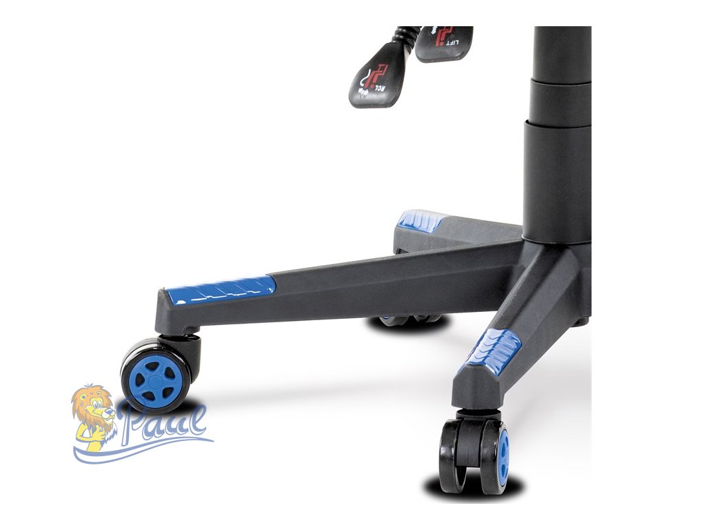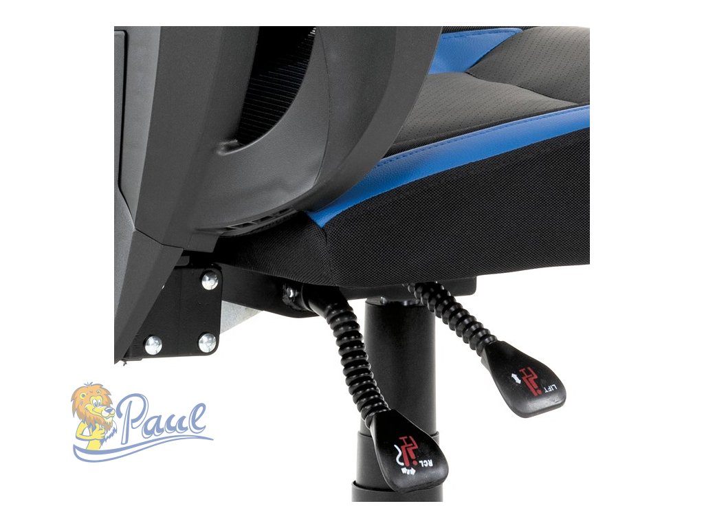 Luxusní herní a kancelářské křeslo z kolekce TOP racing. Jedná se o moderní designové křeslo, navržené nejen pro náročné požadavky PC hráčů, ale je uzpůsobené i pro standardní kancelářskou práci. To vše v maximálním pohodlí a při dokonalé ergonomii sezení. Potah je kombinací modré a černé perforované ekokůže na sedáku i opěráku, černé síťoviny MESH a černé, jemně hrubé látky látky na sedáku i bocích opěrky hlavy. Opěrák je černý plastový výlisek ve futuristickém designu. Výplň sedáku i hlavové opěrky je z velmi kvalitní a tuhé PU pěny, vyztužení a pružnost zajišťují látkové popruhy. Křeslo je vybaveno houpacím mechanismem s plynulou aretací. Při vypnutí je možné se s opěradlem volně pohupovat. Výška sezení se upravuje jednou páčkou na pravé straně přes kvalitní plynový píst. Poloha opěráku se nastavuje druhou páčkou, umístěnou rovněž na pravé straně křesla. Masivní černý plastový kříž s modrými protiskluzovými plastovými doplňky je osazen černými plastovými kolečky pr. 6 cm s modrým racing středem a gumovým obvodem ideálními na tvrdé podlahy. Se stabilitou celých 70 cm průměru kříže si můžete dovolit i ty nejnáročnější hry. Vysoký, prodyšný a ergonomicky navržený opěrák s integrovanou zesílenou opěrkou hlavy, polstrovanou a výškově nastavitelnou bederní opěrkou slouží nejen jako výborná opora celých zad a také podporuje správné držení páteře. Područky jsou plastové, polstrované a potažené modrou a černou ekokůží. Šíře je 7 cm, délka ložné plochy 33 cm a výška 3 cm. Při sklápění sedáku se pohybují a kopírují jeho pohyb a polohu. Nosnost židle je až 130 kg. Toto herní a kancelářské křeslo je skvělou volbou, ať stojí za hracím či kancelářským stolem. Vždy působí luxusně, jako nepřehlédnutelný designový solitér. Kvalita zpracování, důraz na pohodlí a ergonomii, to zaručuje pohodu při dlouhých herních večerech i denní kancelářské práci. Budete mít velké dilema, zda toto křeslo opustíte a vezmete zavděk obyčejným křeslem a nebo na něm zůstanete i při relaxu či sledování televize ...Doplňkové parametry