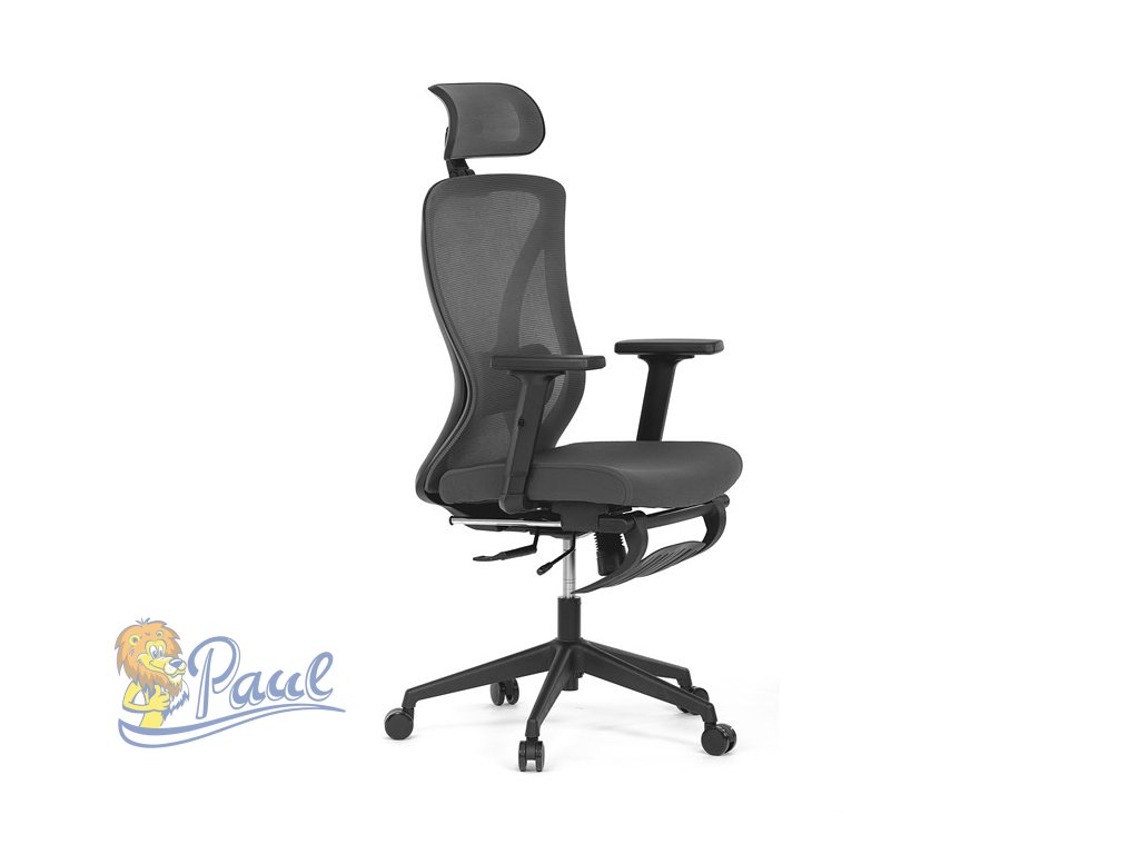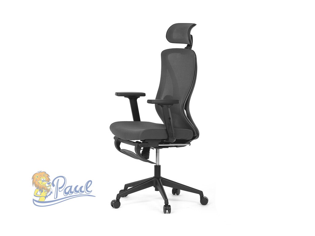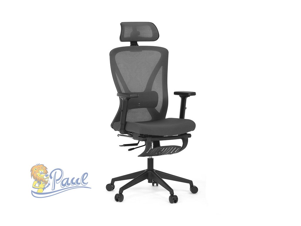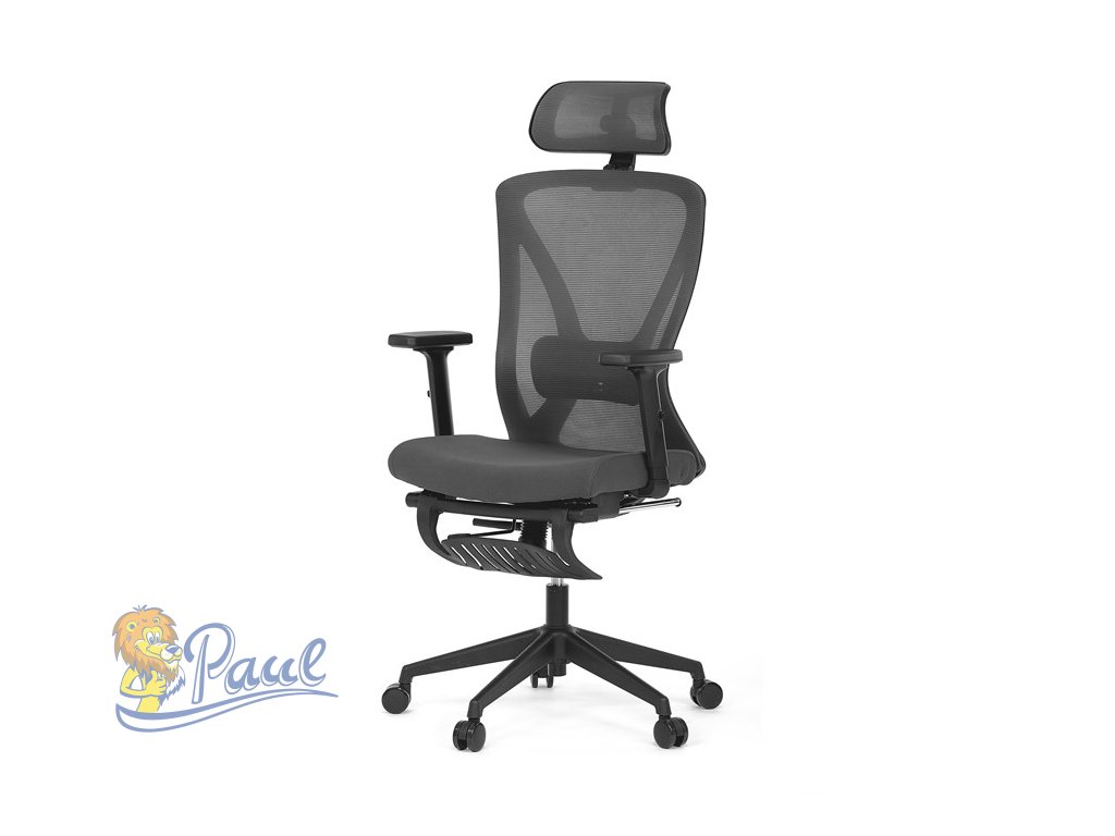 Kancelářská židle, šedá MESH, plastový kříž, opěrka nohou, posuvný sedák, 2D područky