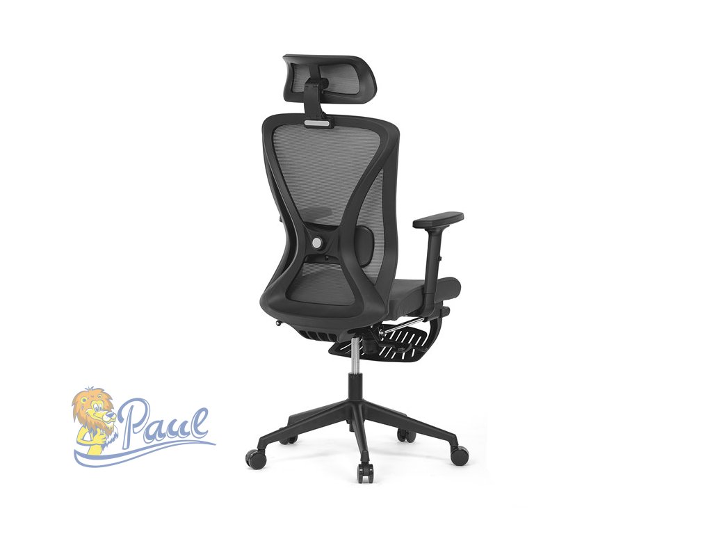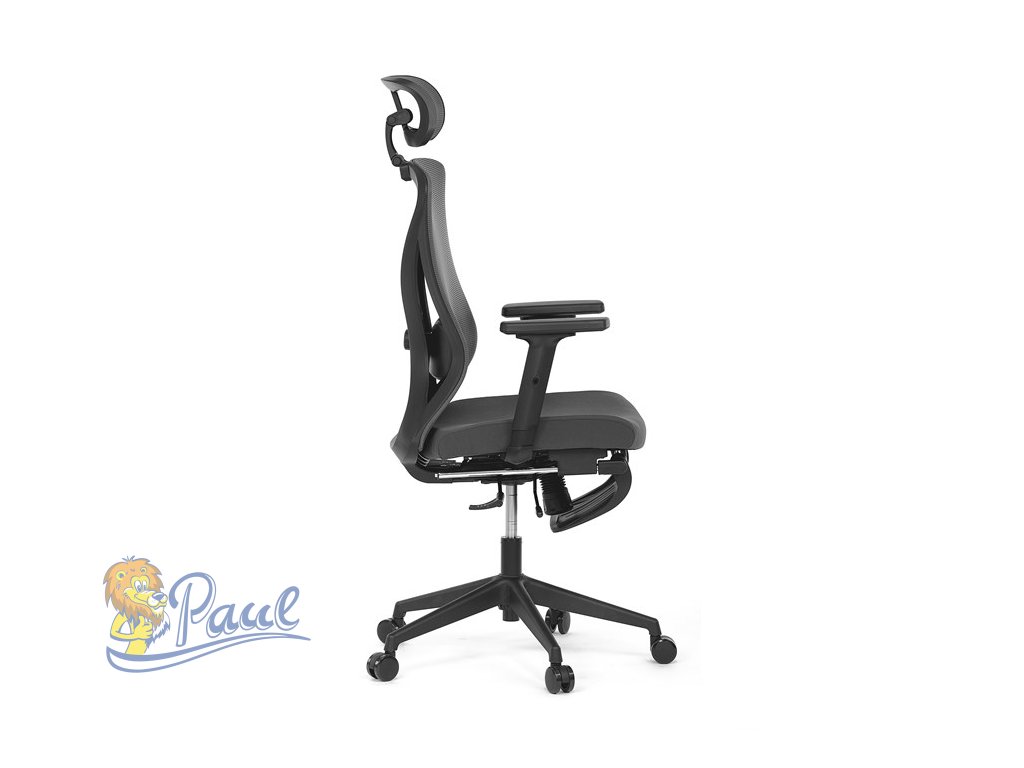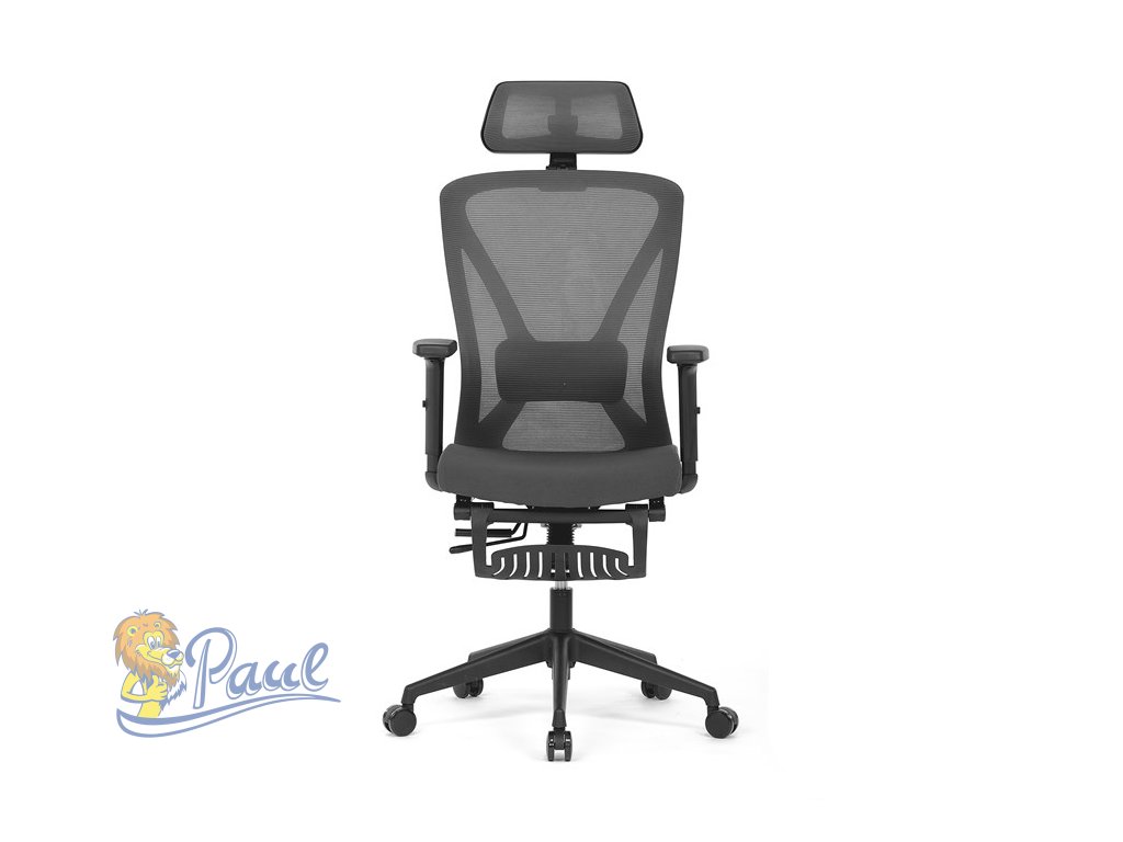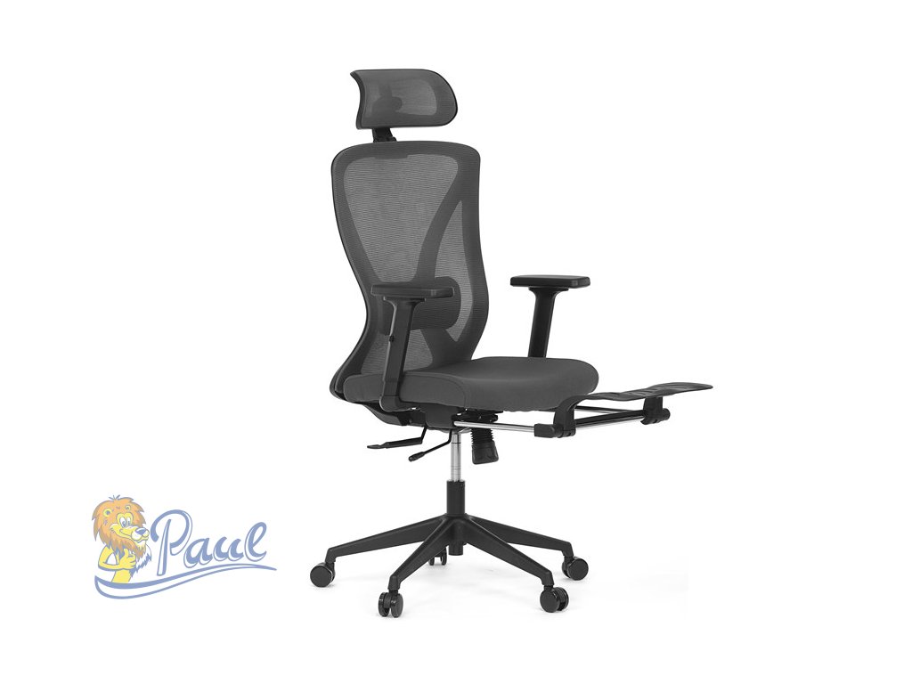 Kancelářská židle, šedá MESH, plastový kříž, opěrka nohou, posuvný sedák, 2D područky