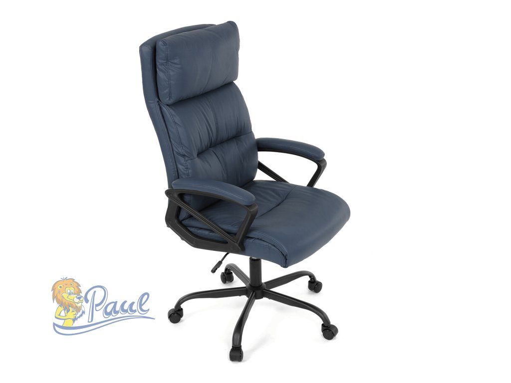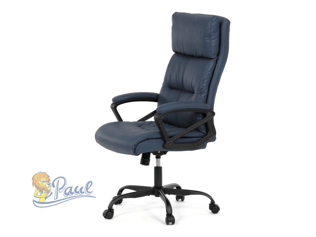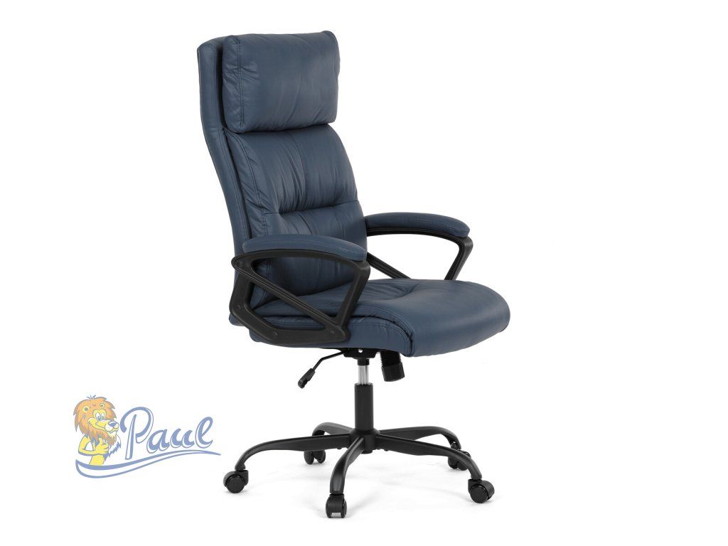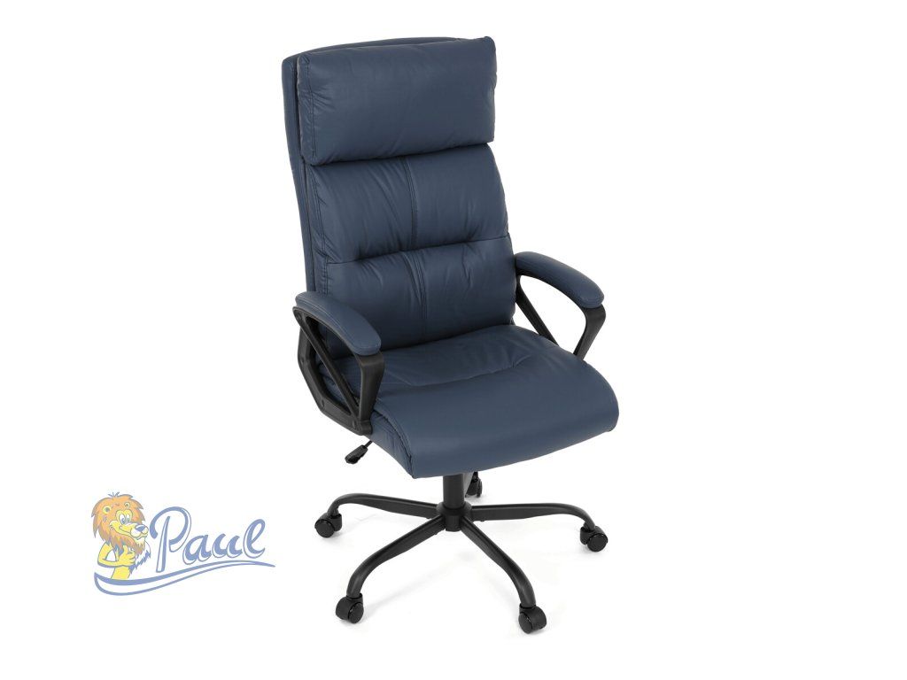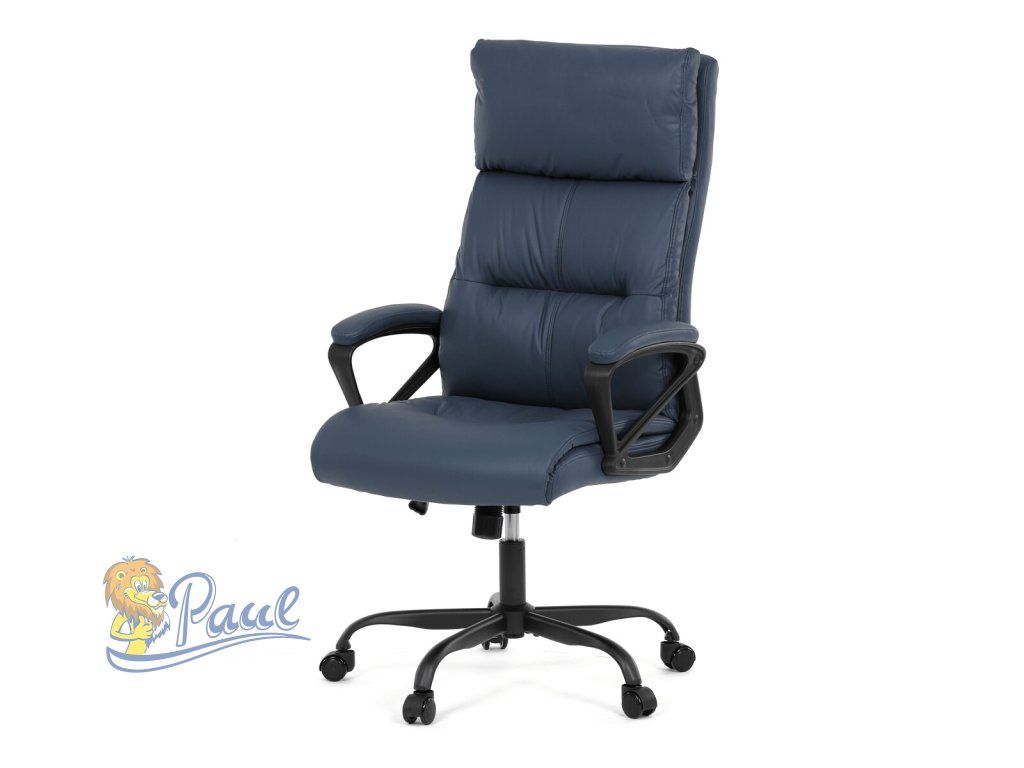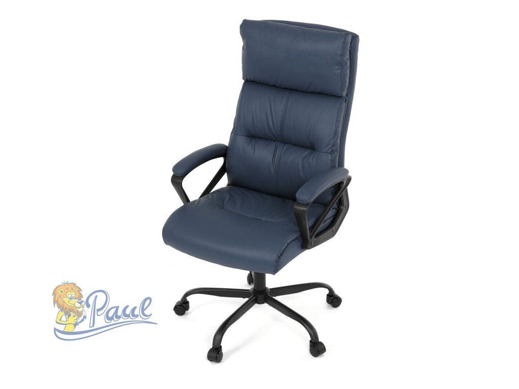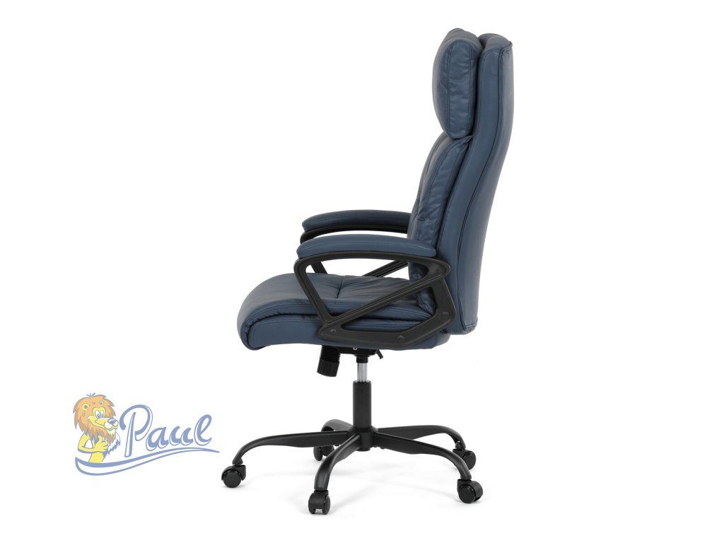 Kancelářské křeslo, tmavě modrá ekokůže, taštičkové pružiny, kovový kříž, kolečka na tvrdé podlahy