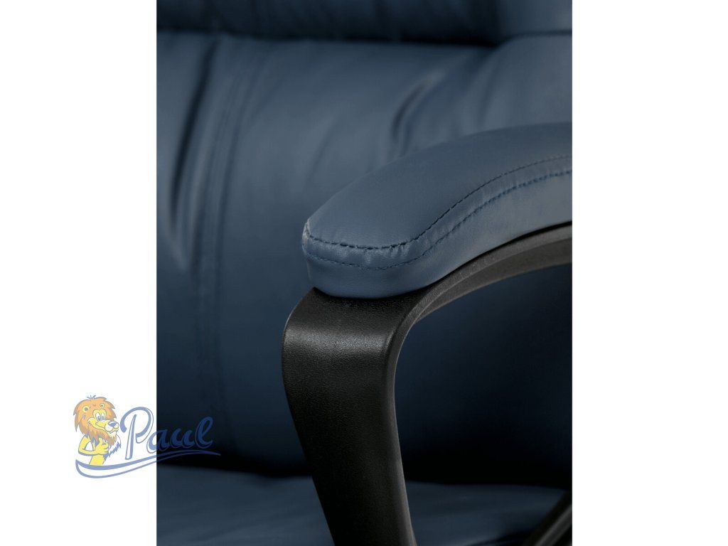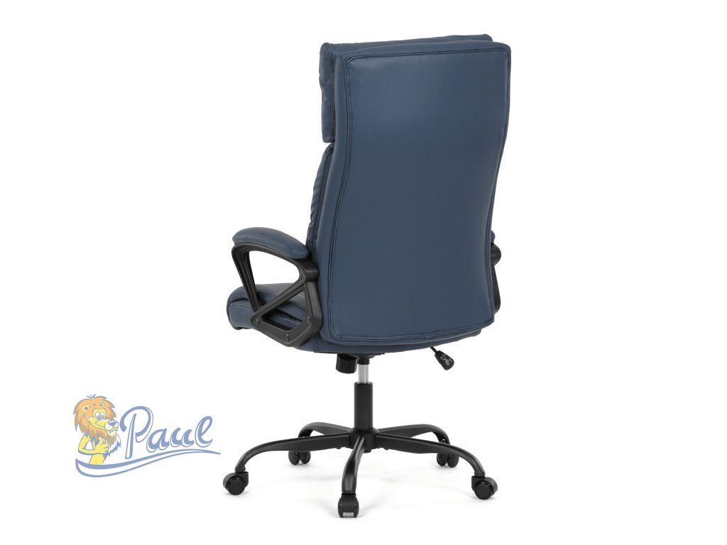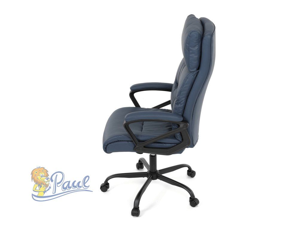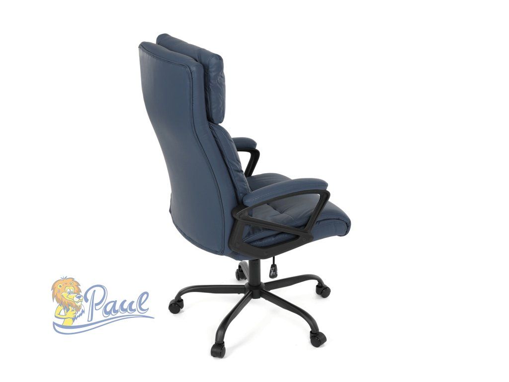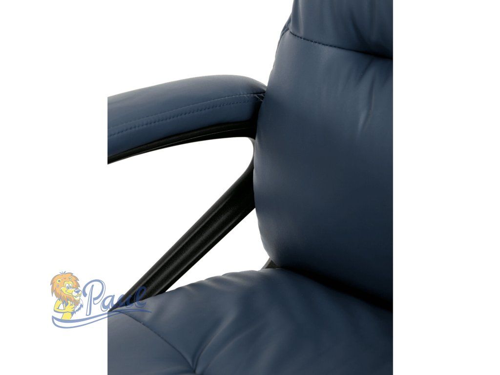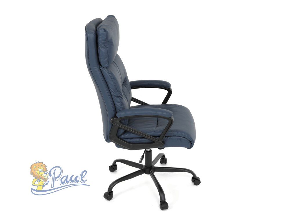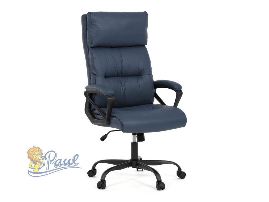 Kancelářské křeslo, tmavě modrá ekokůže, taštičkové pružiny, kovový kříž, kolečka na tvrdé podlahy