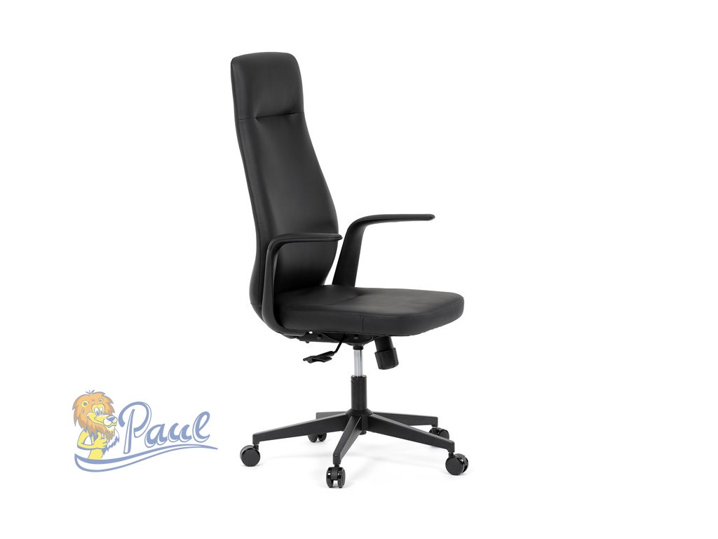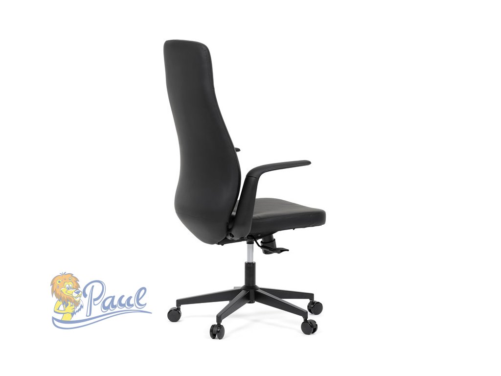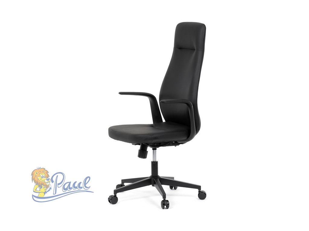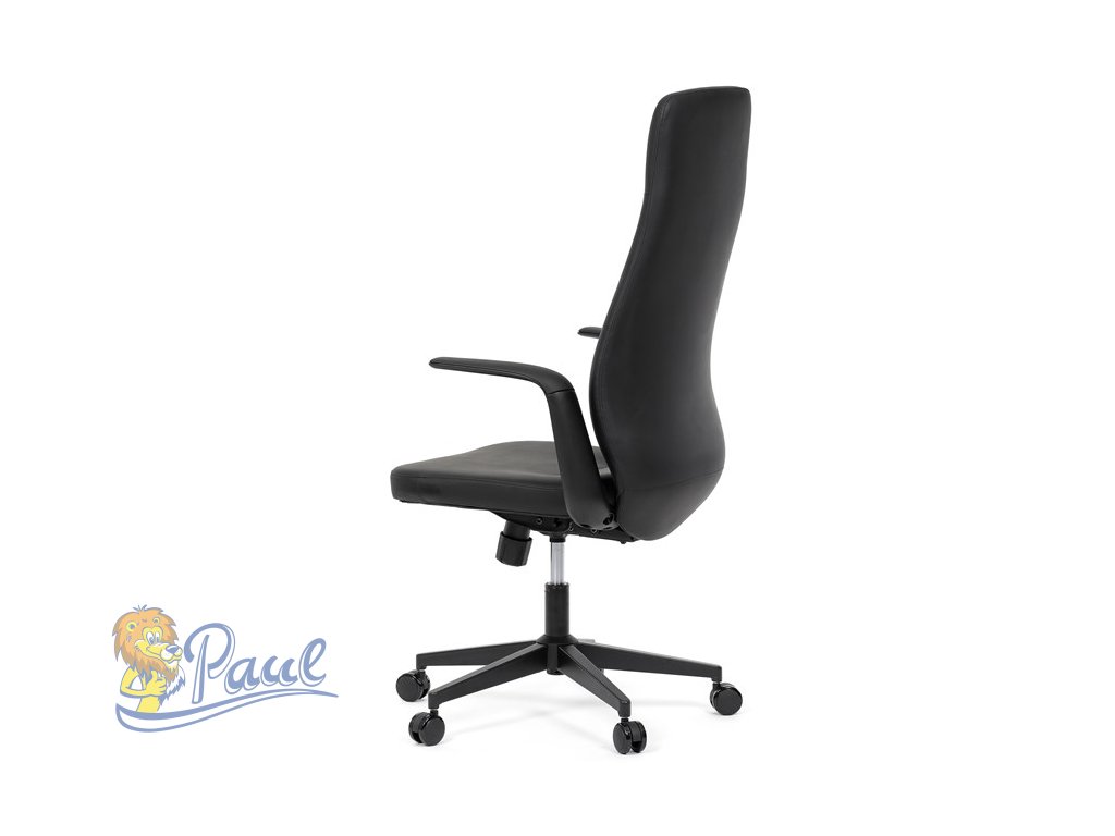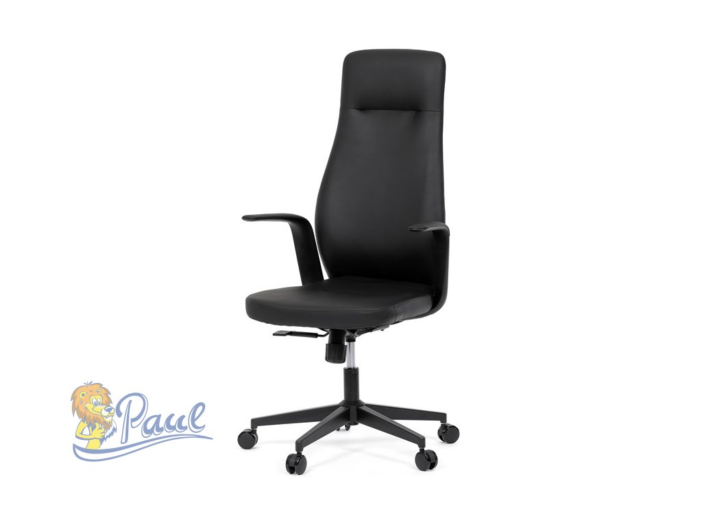 Kancelářské křeslo, černá ekokůže, houpací mechanismus s aretací ve 3 polohách, kovový kříž, kolečka pro tvrdé povrchy