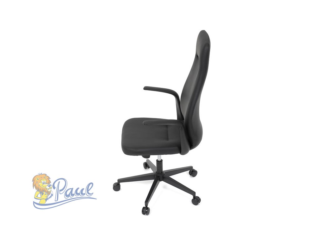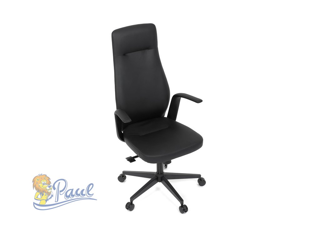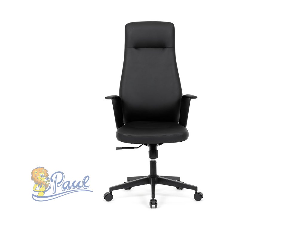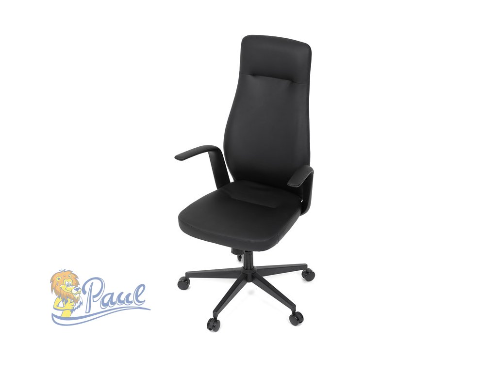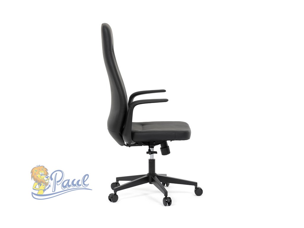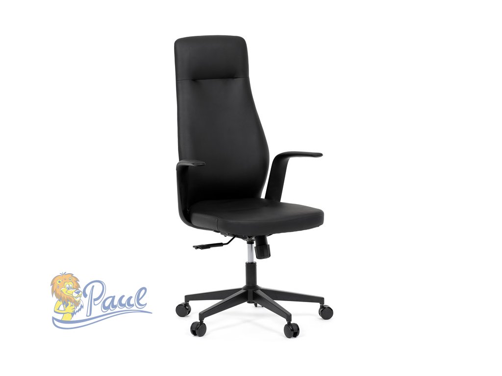 Kancelářské křeslo, černá ekokůže, houpací mechanismus s aretací ve 3 polohách, kovový kříž, kolečka pro tvrdé povrchy
