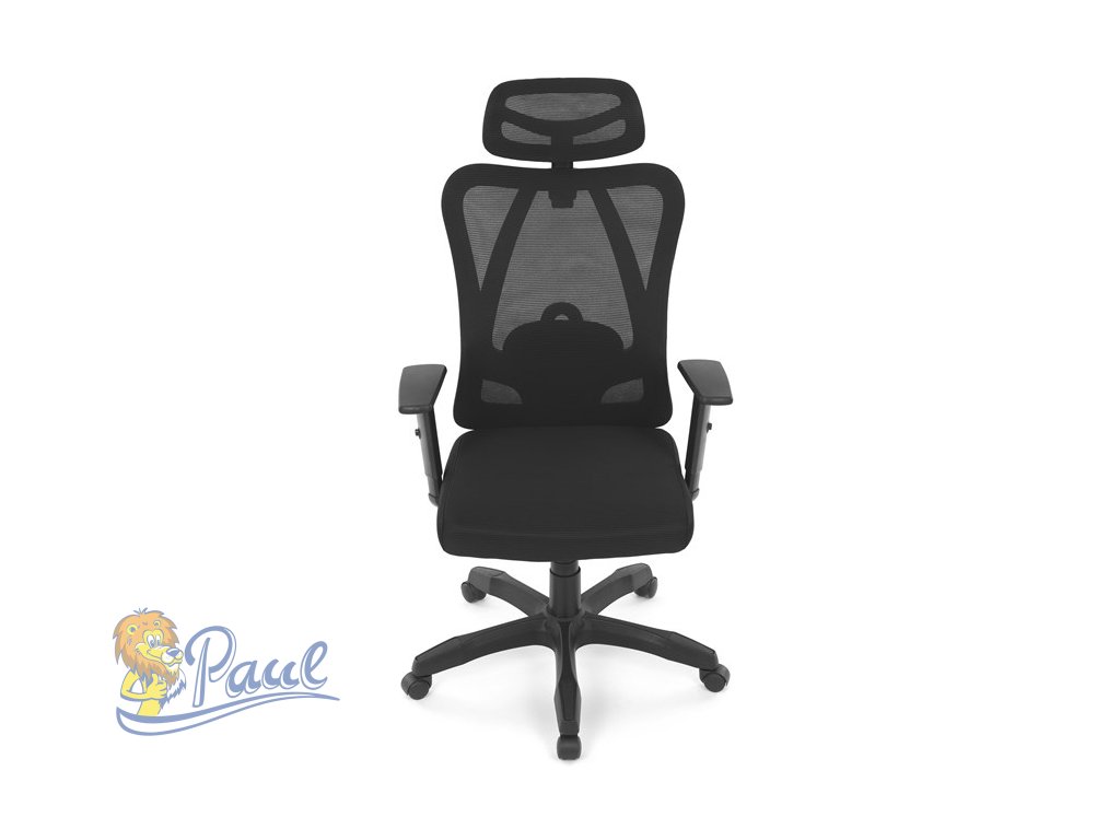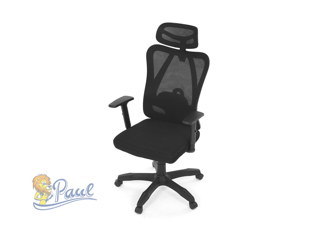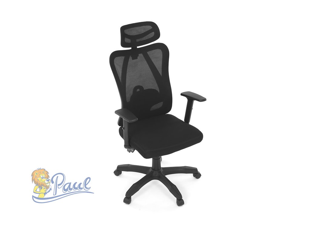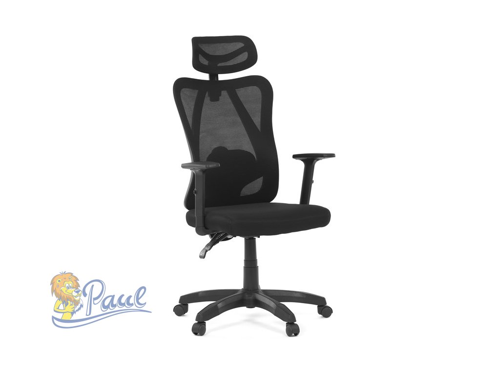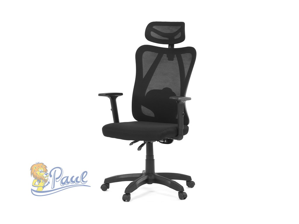 Židle kancelářská, nastavitelný podhlavník, potah černá síťovina mesh, mechanika permanent kontakt