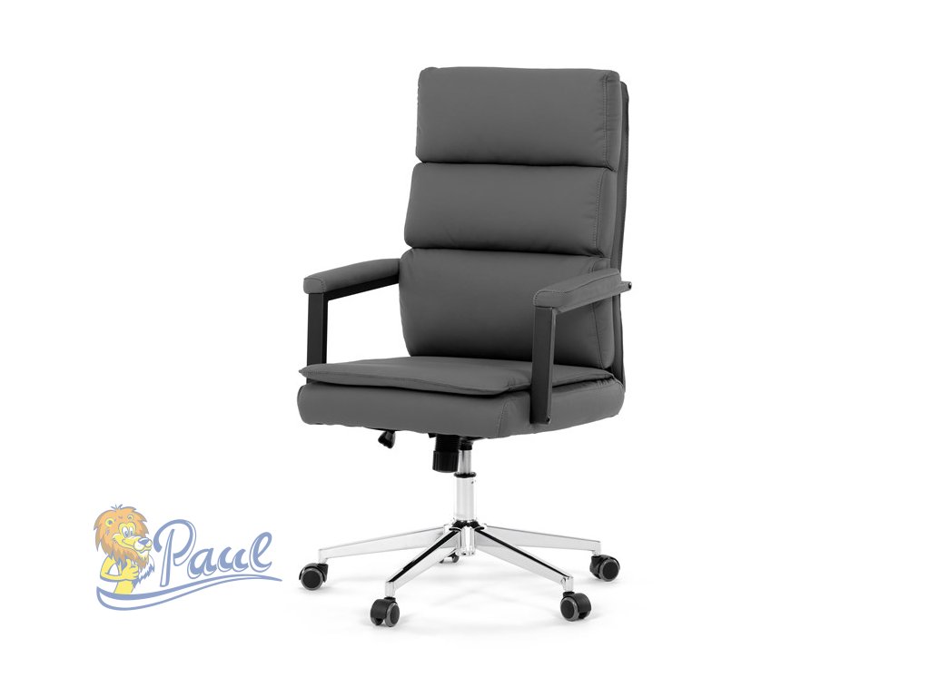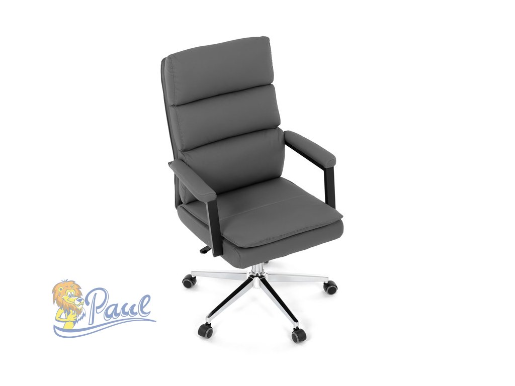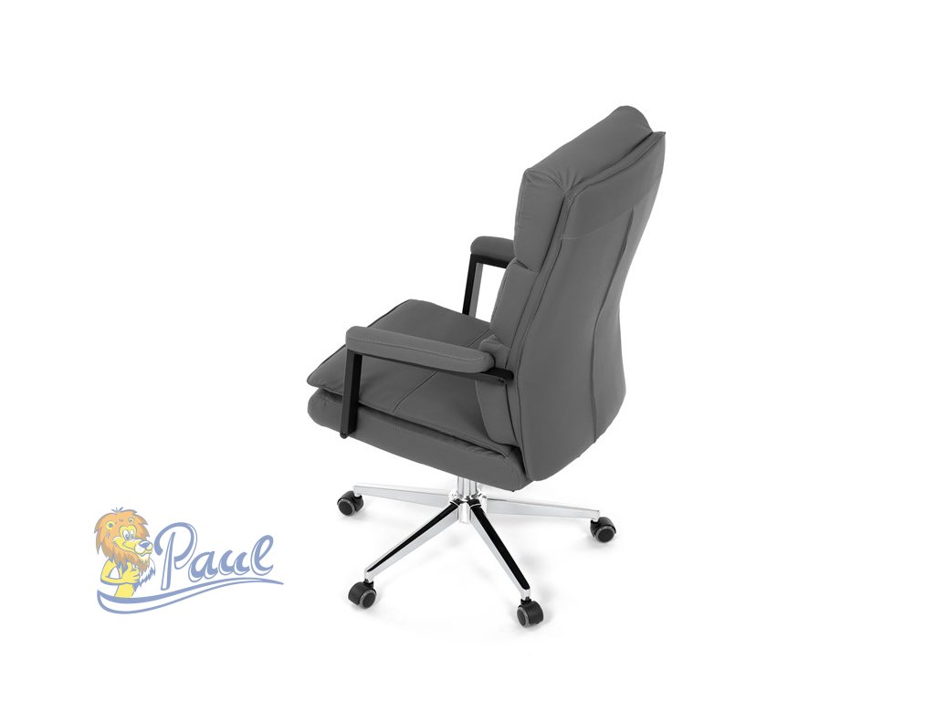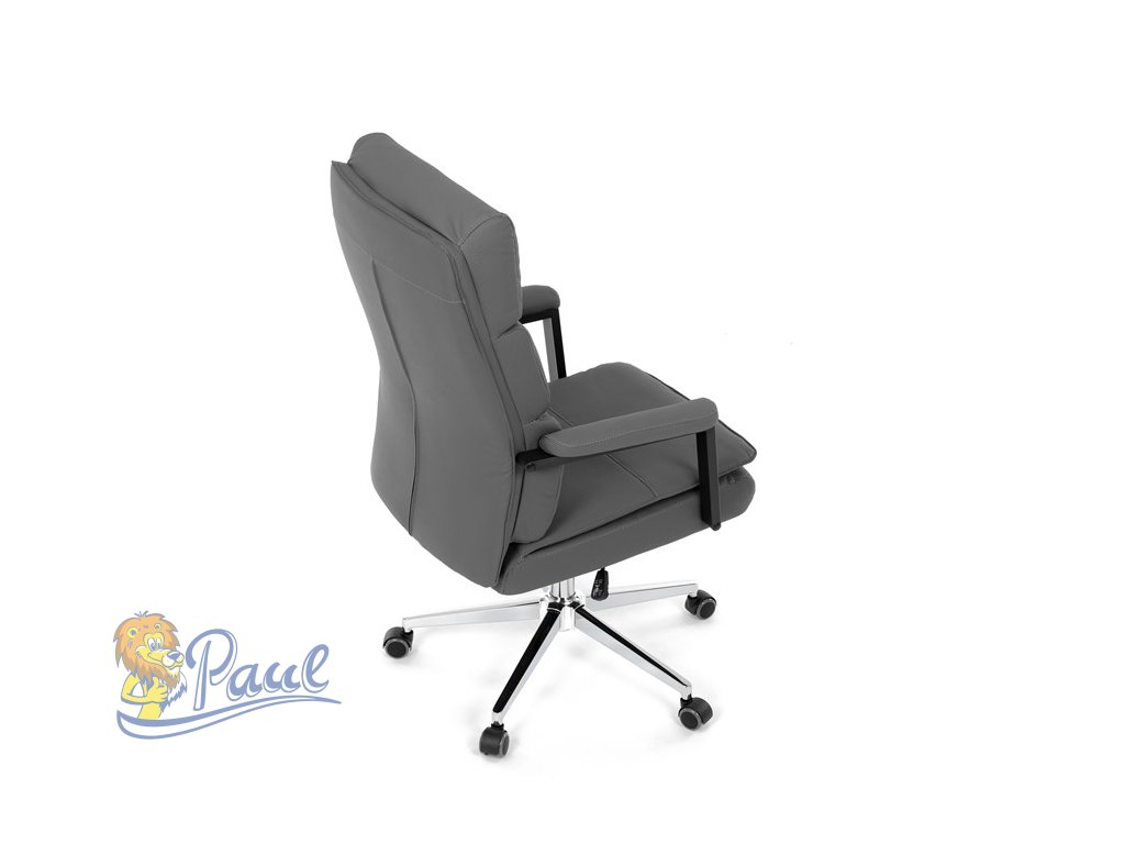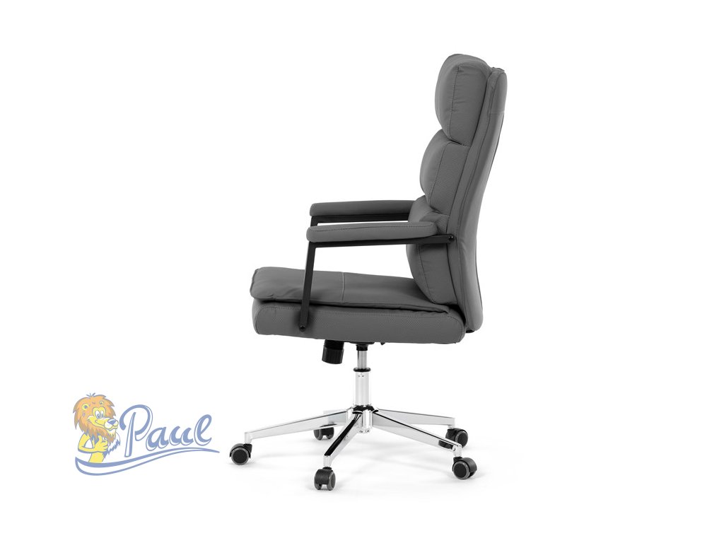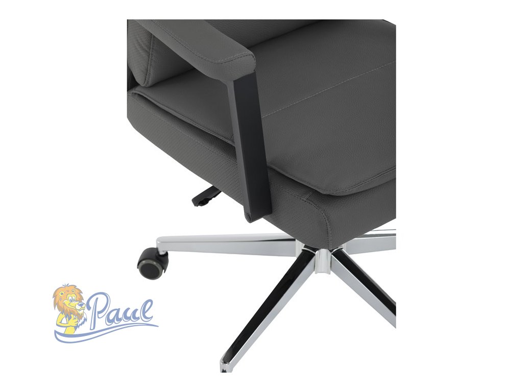 Židle kancelářská, šedá ekokůže, kříž kov chromový, houpací mechanismus, čalouněné područky