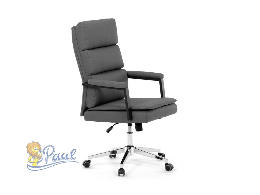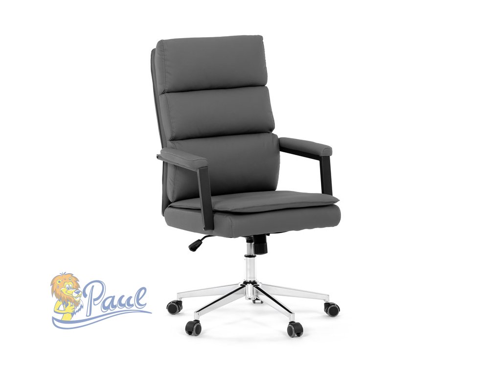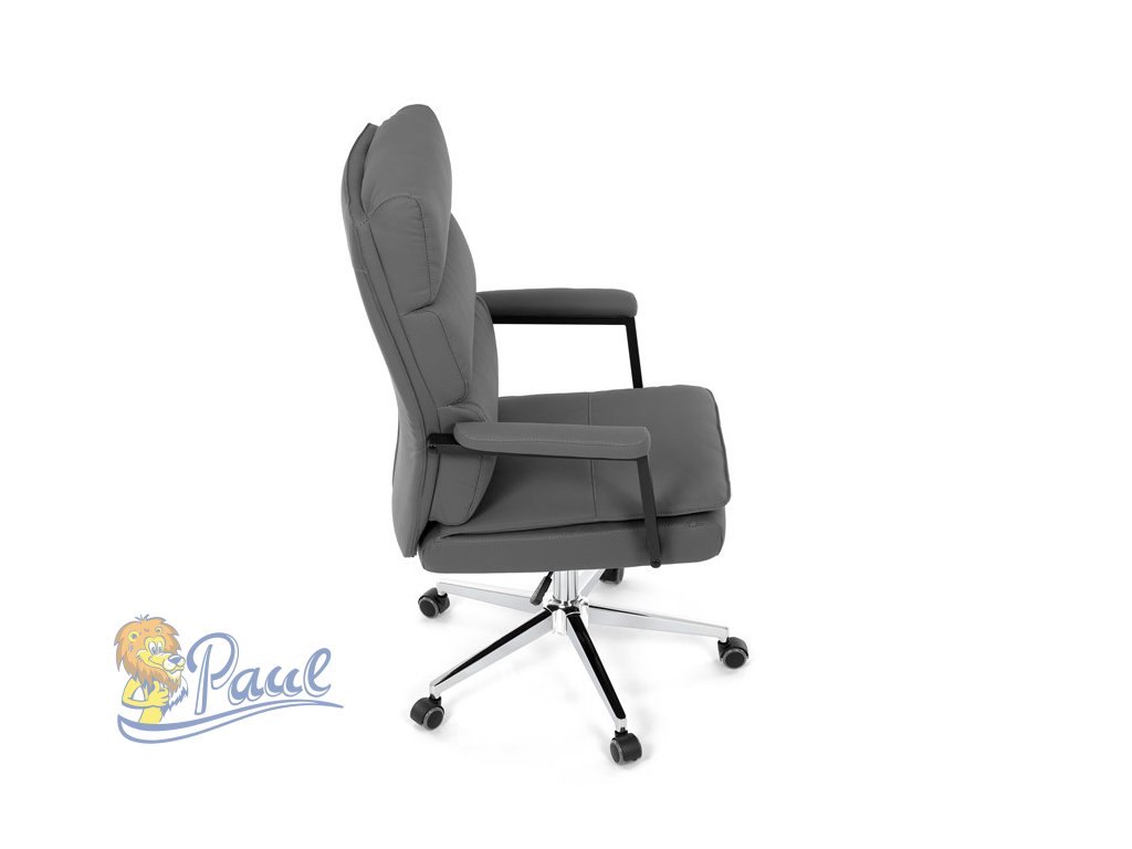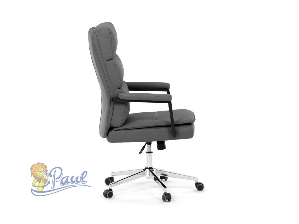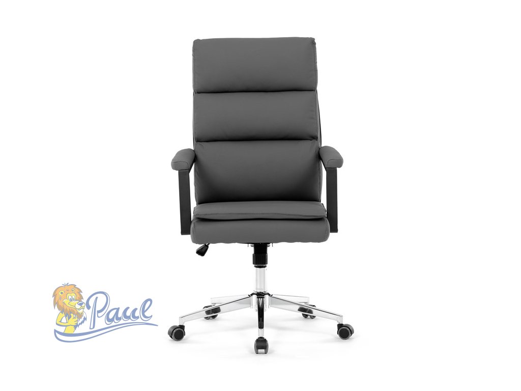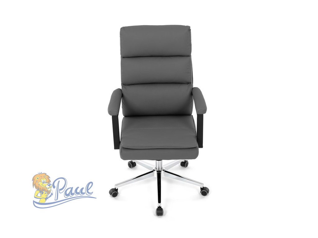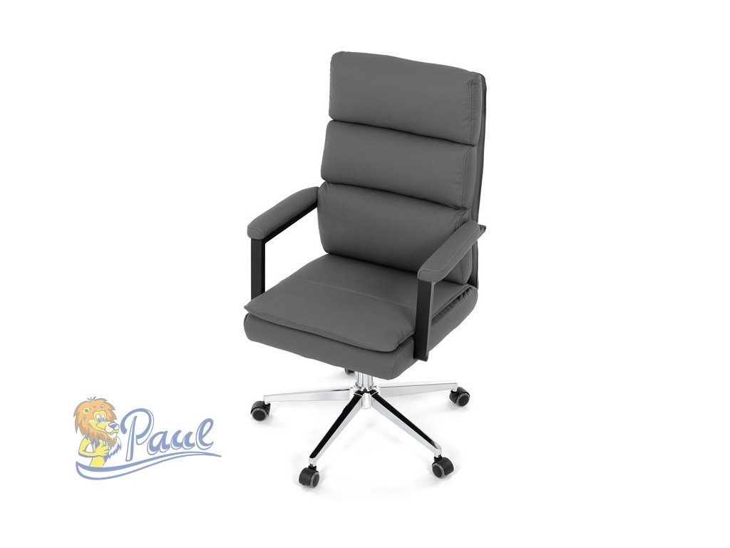 Židle kancelářská, šedá ekokůže, kříž kov chromový, houpací mechanismus, čalouněné područky