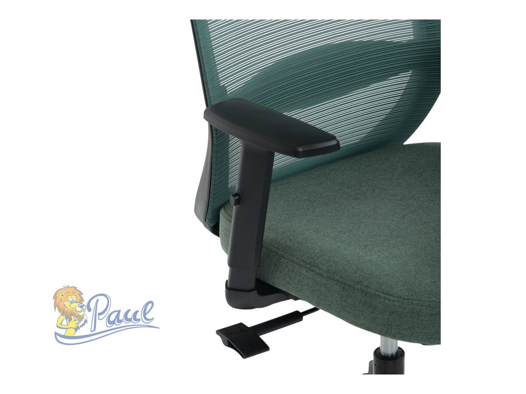 Stylová zelená látka dodává židli neotřelý vzhled, který se hodí do každého interiéru. Díky svému univerzálnímu designu je ideální pro různé typy kanceláří i domácí pracovny.