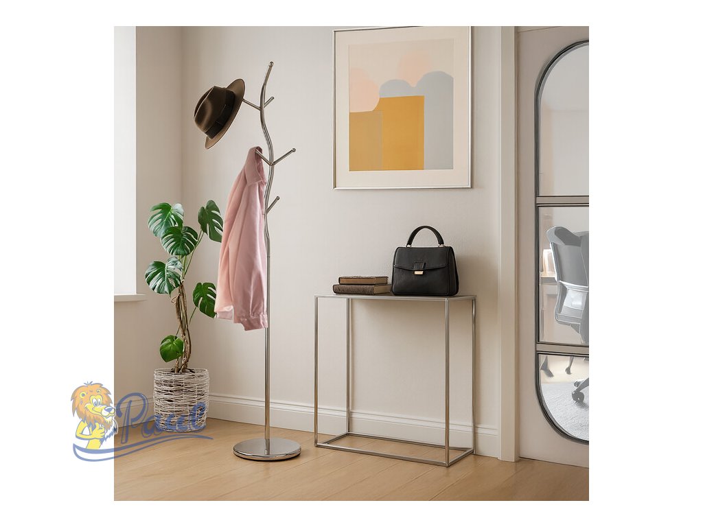 Věšák stojanový, výška 180 cm, kovová chromovaná konstrukce, nosnost 10 kg