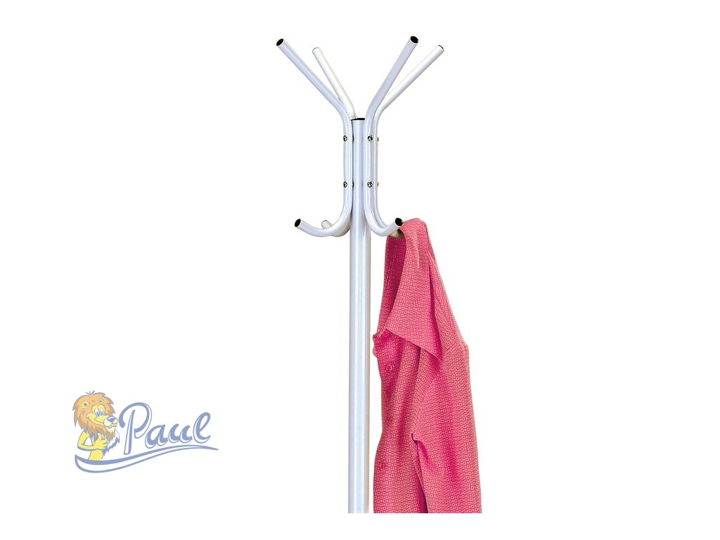 Stojanový věšák s výškou 174 cm je vyroben z pevného kovu s matným bílým lakem, který zajišťuje odolnost a snadnou údržbu. Nabízí šest háčků rozmístěných ve dvou úrovních pro pohodlné zavěšení kabátů, šál či tašek. Stabilní trojnohá základna přispívá k bezpečnému postavení i při plném zatížení, přičemž maximální nosnost dosahuje 6 kg. Jednoduchý a čistý design věšáku se hodí do moderních i klasických interiérů, kde poskytuje praktické řešení pro organizaci oděvů v předsíni nebo kanceláři.Doplňkové parametry