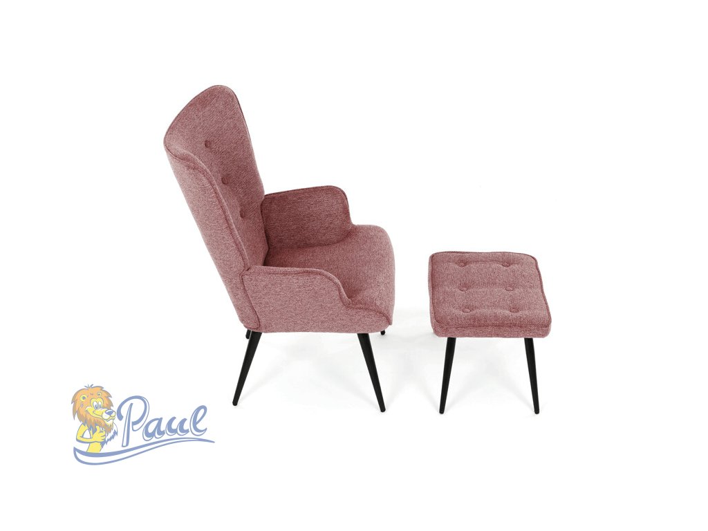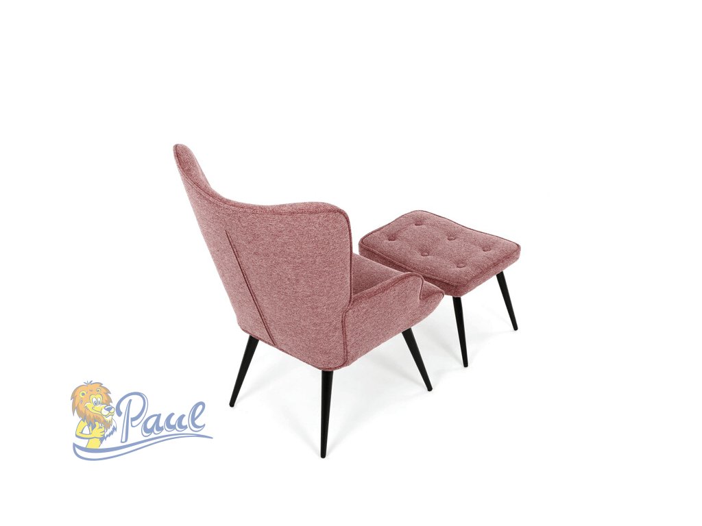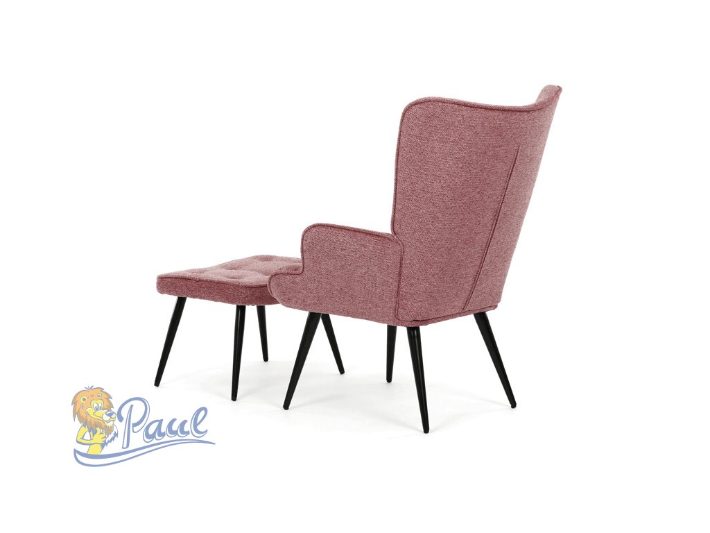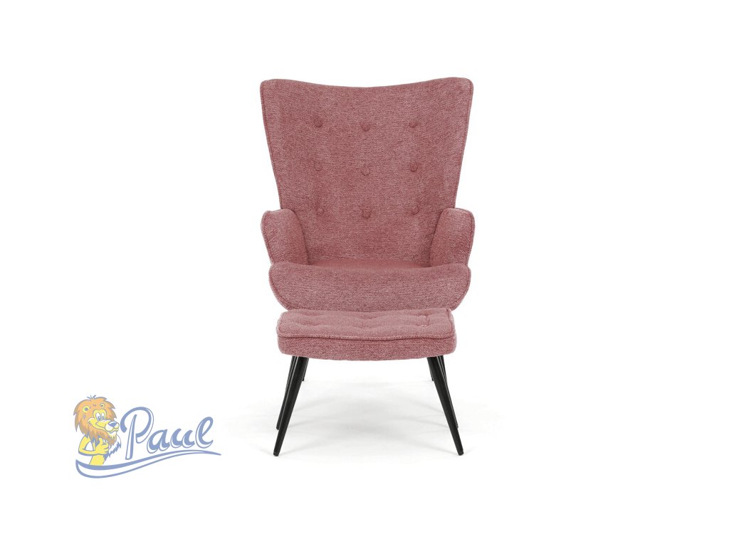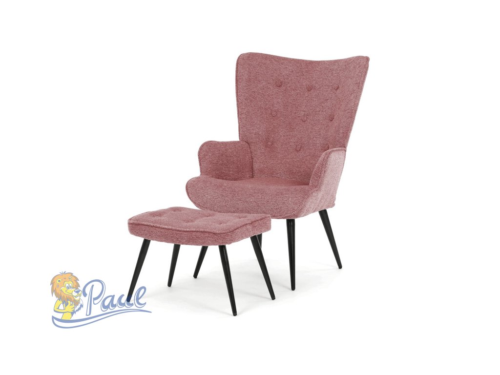 Relaxační křeslo s podnožkou v růžovém odstínu je potažené vodoodpudivou prémiovou látkou, která usnadňuje údržbu a zvyšuje odolnost proti polití. Čalounění je příjemné na dotek a doplněné o decentní prošívání s knoflíkovými detaily na opěradle, které podtrhují jeho stylový vzhled. Pevné černé kovové nohy zajišťují stabilitu a dlouhou životnost. Křeslo disponuje pohodlnými područi a ergonomicky tvarovaným opěradlem, které podporuje relaxaci a odpočinek. Součástí je také samostatný taburet se stejným čalouněním a konstrukcí, který umožňuje pohodlné podložení nohou. Taburet je o šířce 48cm, hloubce 38cm a výšce 36cm.Doplňkové parametry
