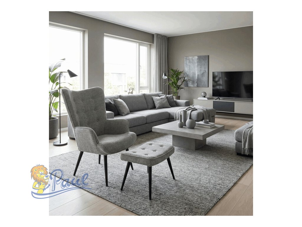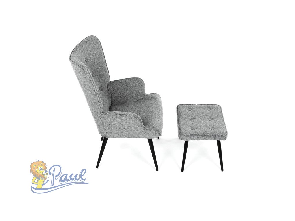 Relaxační křeslo s podnožkou v šedé barvě je potažené vodoodpudivou prémiovou látkou, která usnadňuje údržbu a zvyšuje odolnost proti polití. Pevná kovová podnož v černém provedení zajišťuje stabilitu a dlouhou životnost. Křeslo disponuje pohodlnými čalouněnými područkami a ergonomicky tvarovaným opěradlem s decentním prošitím, které podporuje relaxaci a komfort při sezení. Součástí je také samostatný taburet se stejným materiálem a designem, který umožňuje pohodlné opření nohou. Tento set je vhodný pro odpočinek v obývacím pokoji či pracovně, kde oceníte kombinaci funkčnosti a moderního vzhledu. Taburet je o šířce 48cm, hloubce 38cm a výšce 36cm.Doplňkové parametry
