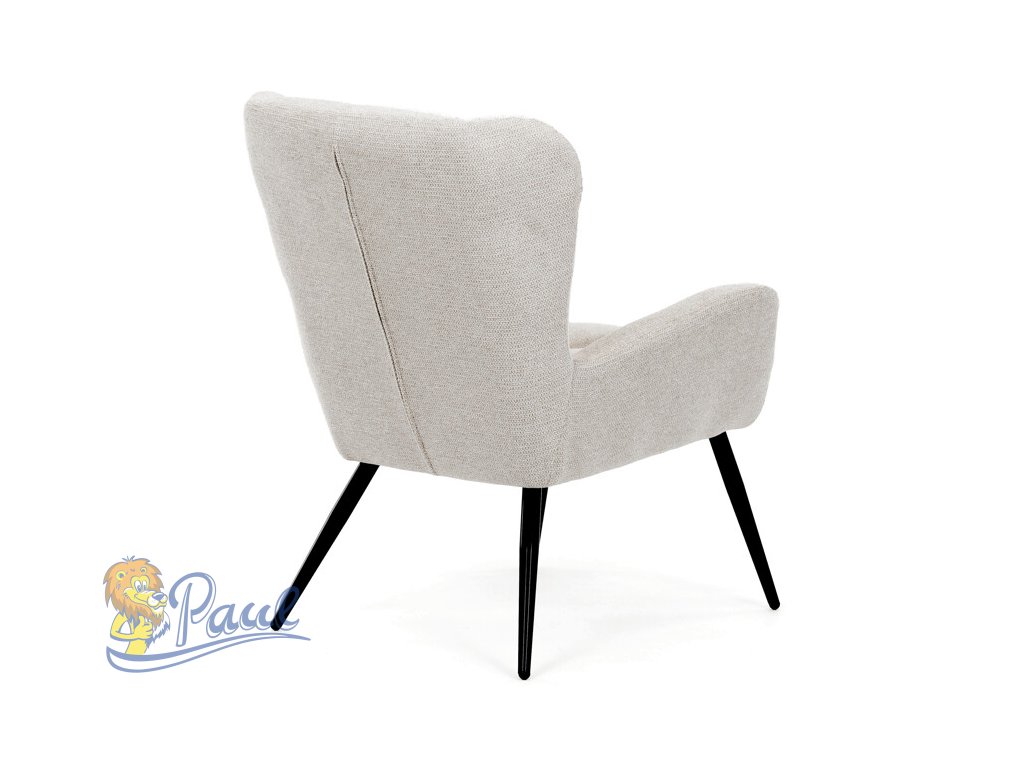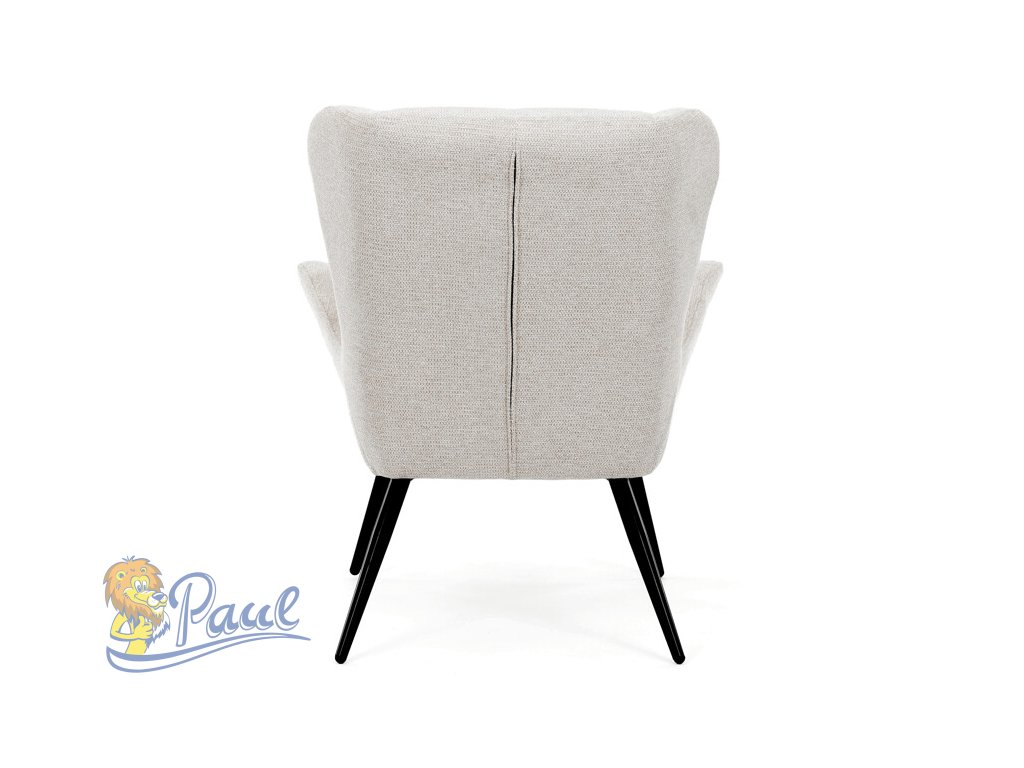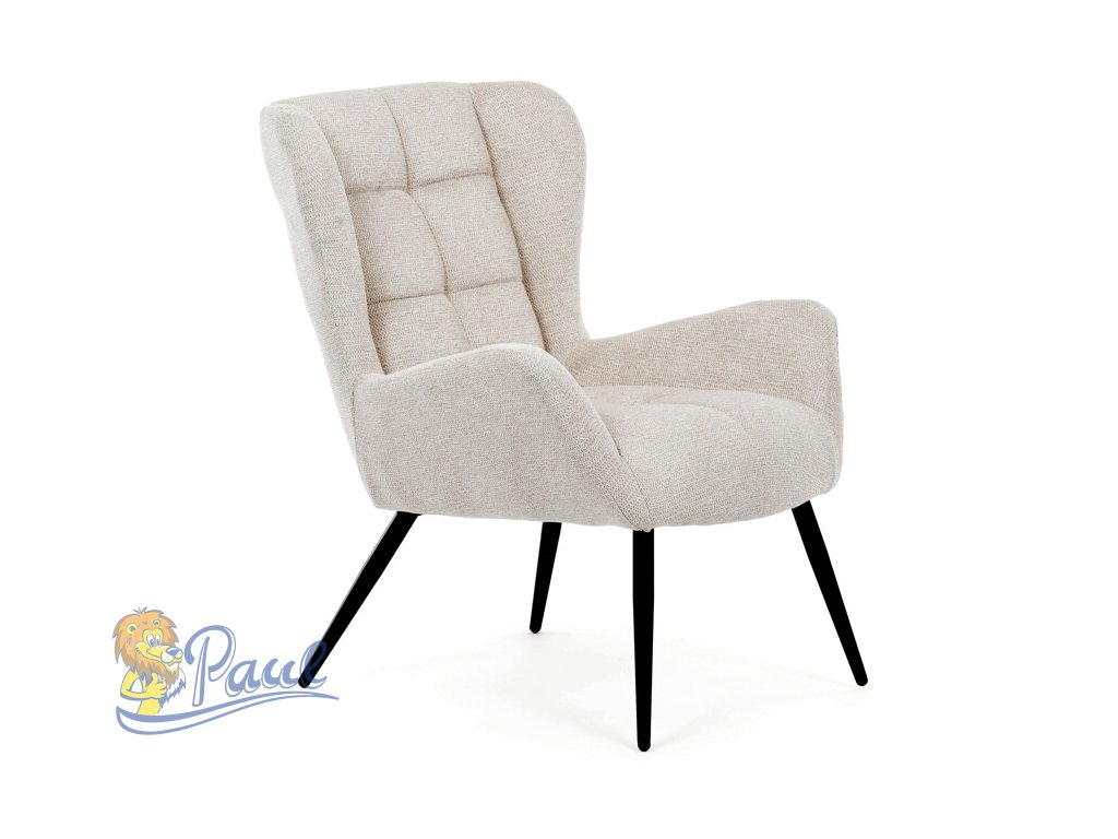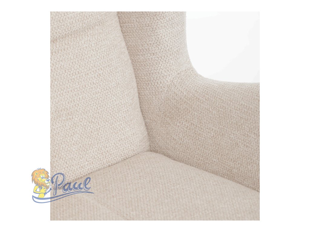 Křeslo ušák v krémovém odstínu nabízí pohodlí díky vysokému polstrování sedáku i opěradla, které je potažené prémiovou látkou s příjemnou texturou. Pevné černé kovové nohy zajišťují stabilitu a dlouhou životnost, zatímco integrované područky přispívají k ergonomickému posedění. Design s charakteristickými vysokými bočními opěrkami poskytuje oporu hlavy a ramenům, což zvyšuje komfort při odpočinku. Křeslo je vhodné do moderních i klasických interiérů, kde vynikne svým nadčasovým tvarem a neutrálním barevným provedením.Doplňkové parametry