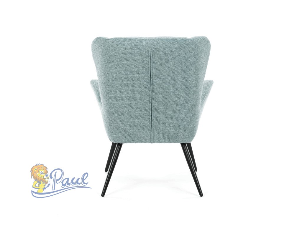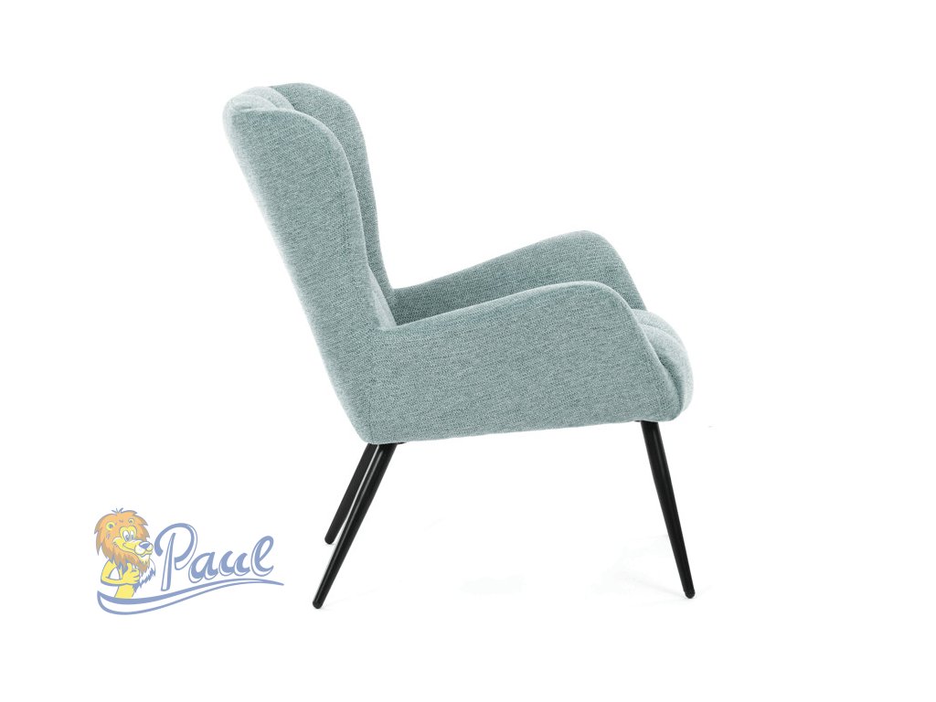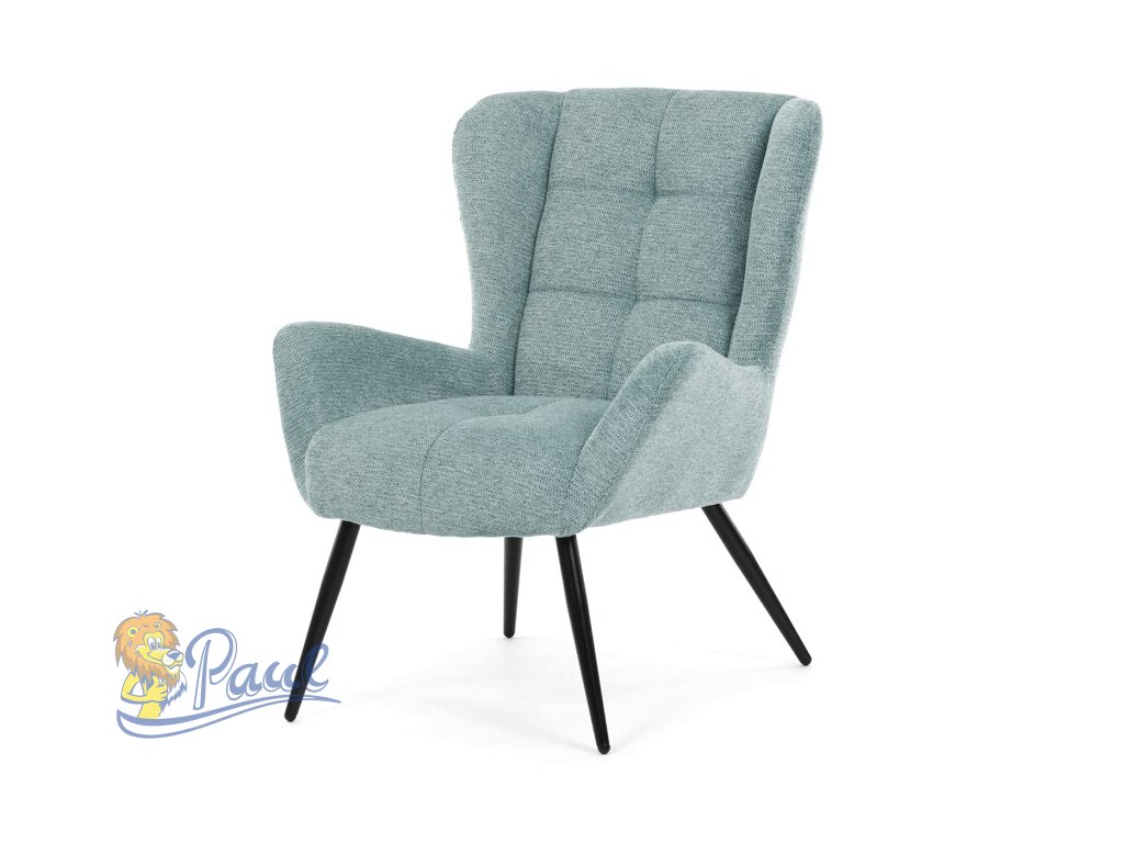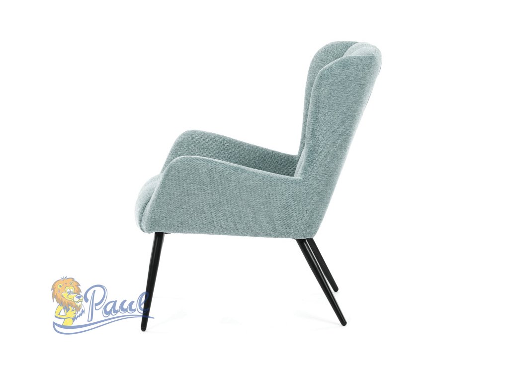 Křeslo ušák v světle modrém provedení nabízí pohodlí díky vysokému polstrování sedáku i opěradla, které je potažené prémiovou látkou s příjemnou texturou. Pevná kovová podnož v matné černé barvě zajišťuje stabilitu a dlouhou životnost. Ergonomicky tvarované područky doplňují komfort při sezení a podporují správnou oporu paží. Design křesla kombinuje klasický tvar ušáku s moderním minimalistickým vzhledem, což umožňuje jeho využití v různých typech interiérů. Křeslo není rozkládací ani otočné, což podtrhuje jeho pevnou a stabilní konstrukci.Doplňkové parametry