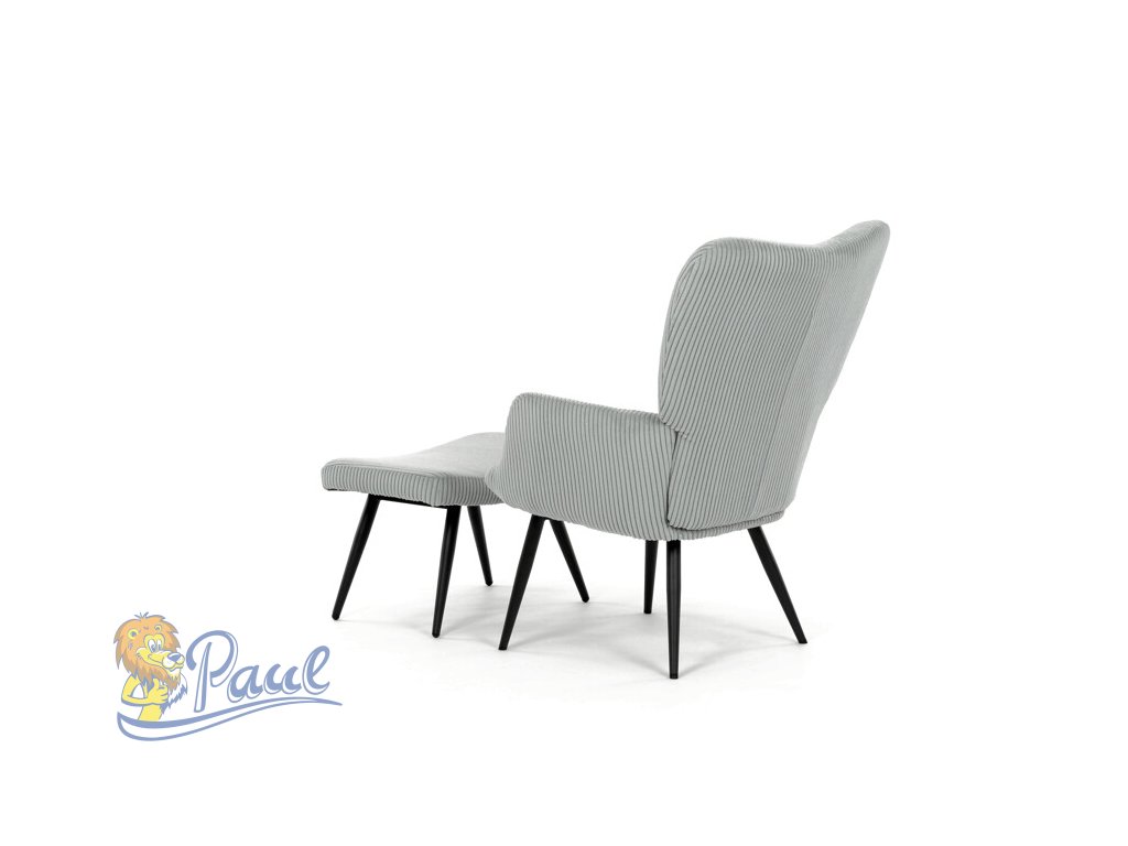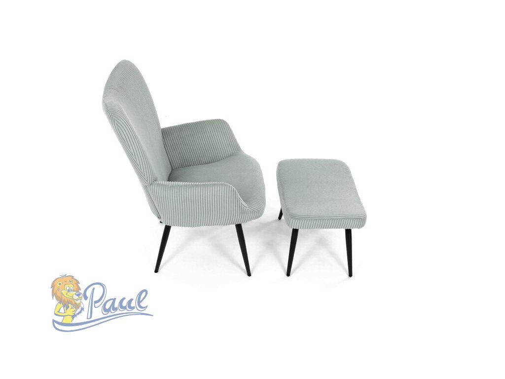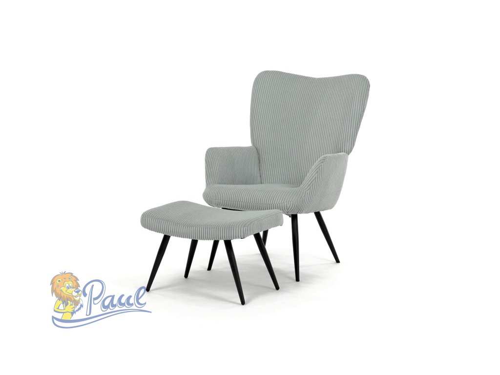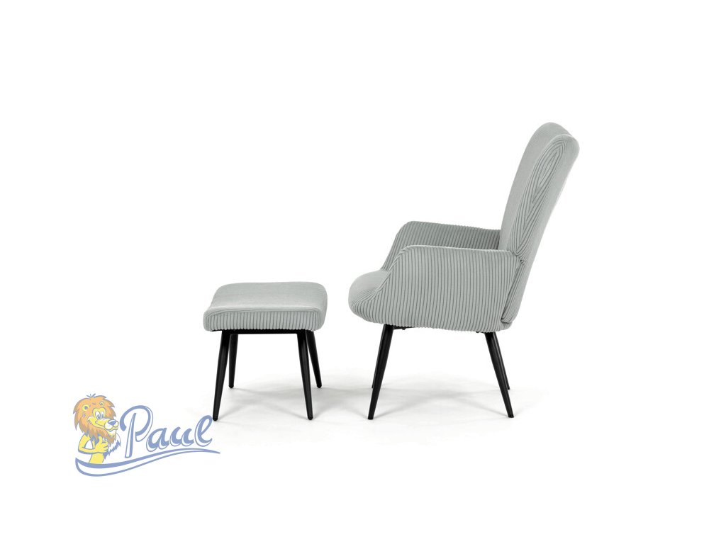 Relaxační křeslo s podnožkou v modrém manšestru nabízí pohodlné posezení díky měkkému čalounění a ergonomicky tvarovaným područkám. Pevné černé kovové nohy zajišťují stabilitu a dlouhou životnost. Manšestrová látka dodává křeslu příjemnou texturu a vizuální hloubku, která se hodí do moderních i klasických interiérů. Součástí je praktický taburet pro pohodlné opření nohou, který sdílí stejný design a materiál. Křeslo není otočné ani rozkládací, což podtrhuje jeho jednoduchost a funkčnost.Doplňkové parametry