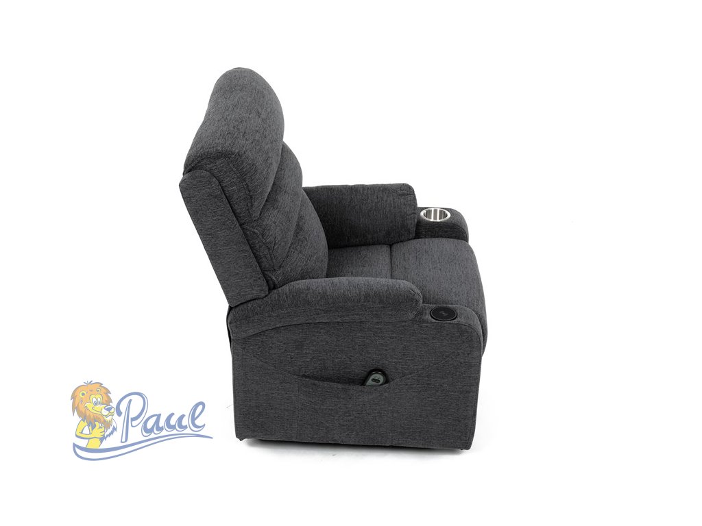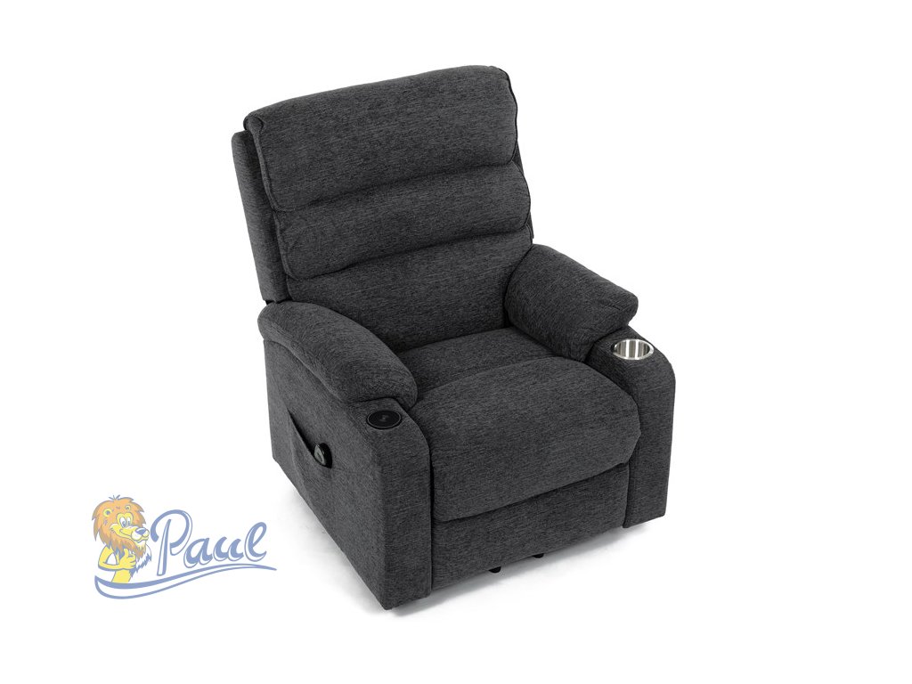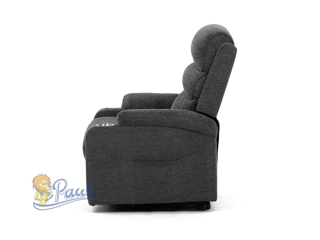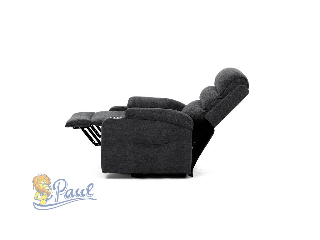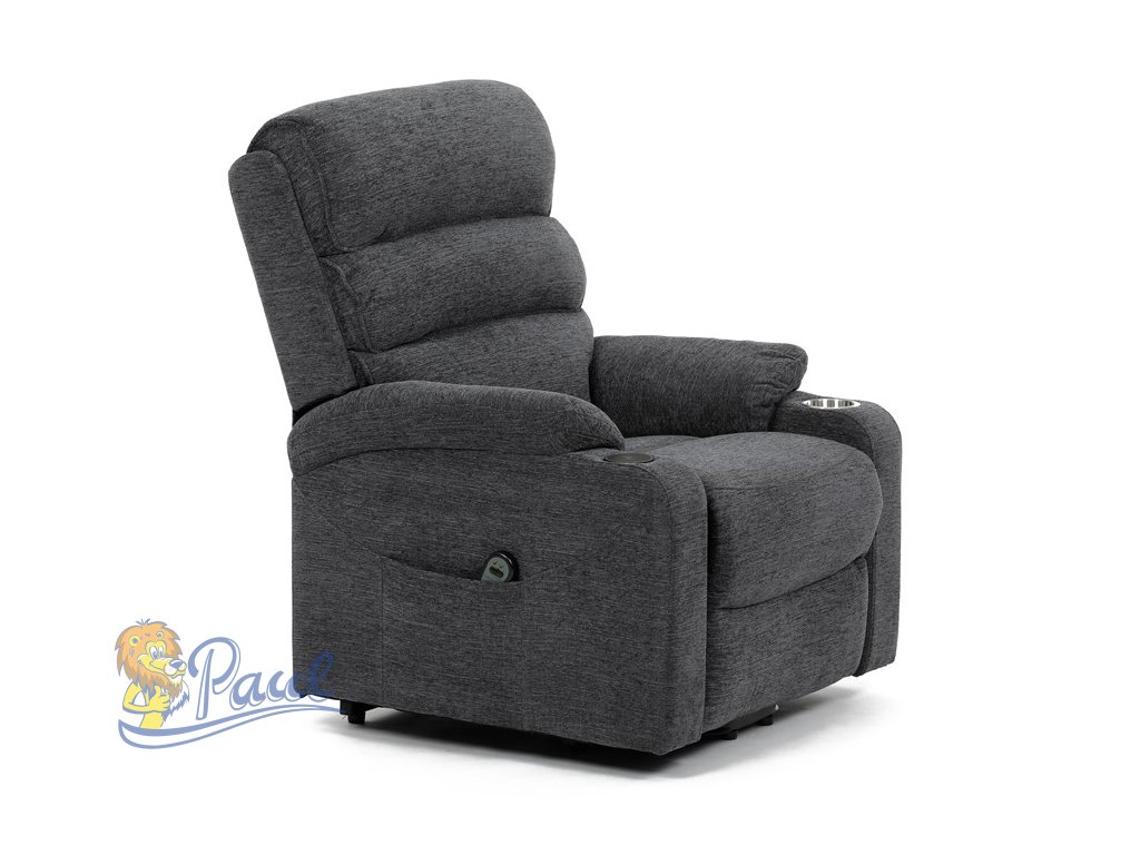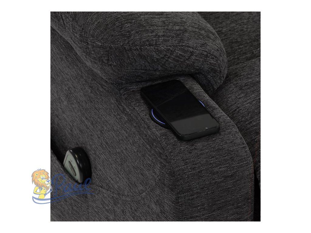 Křeslo polohovací elektrické, 1 motor, šedá látka, bezdrátové nabíjení pro mobilní telefon