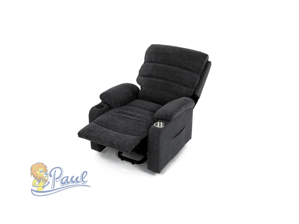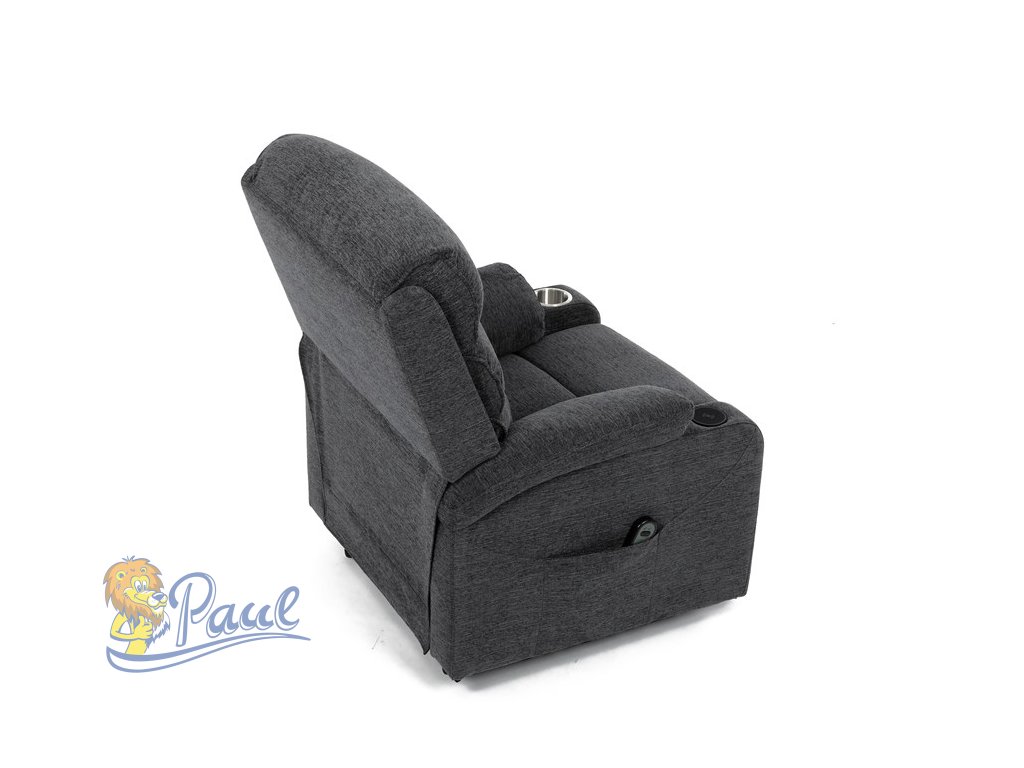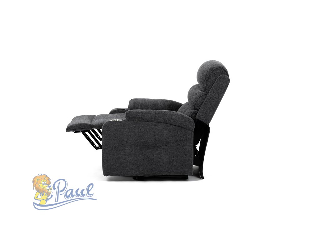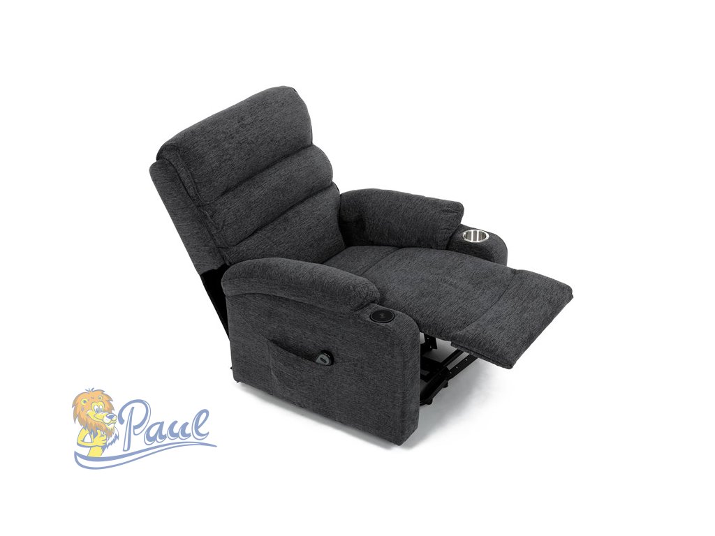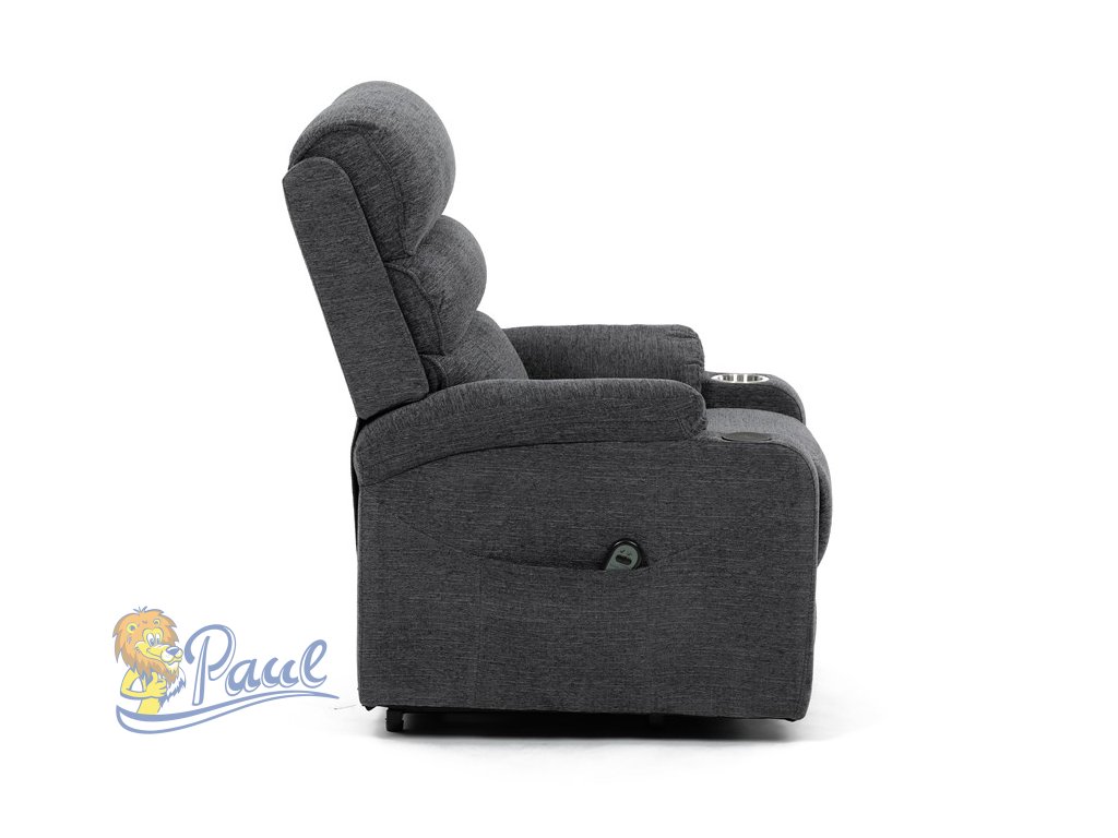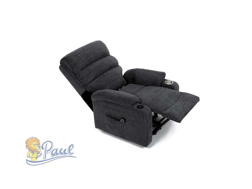 Křeslo polohovací elektrické, 1 motor, šedá látka, bezdrátové nabíjení pro mobilní telefon