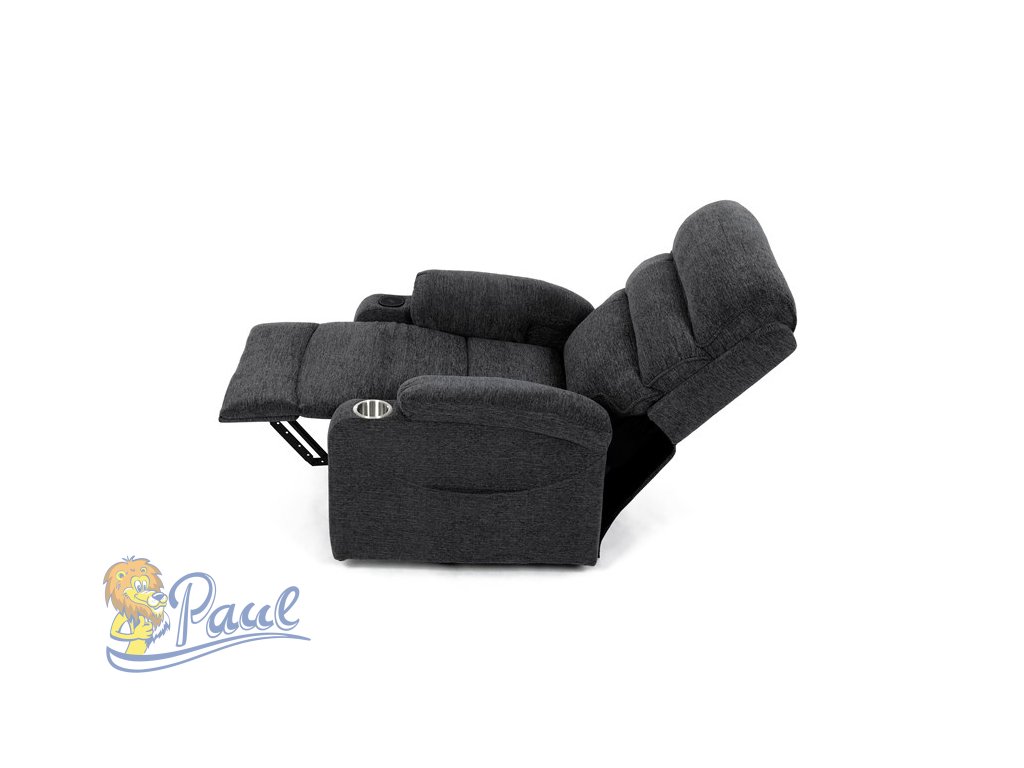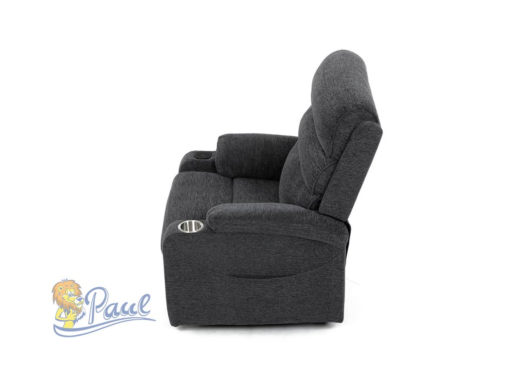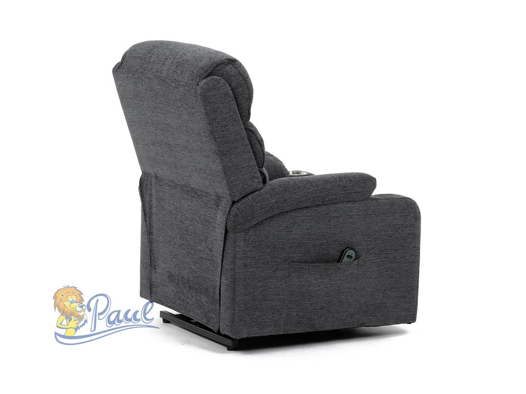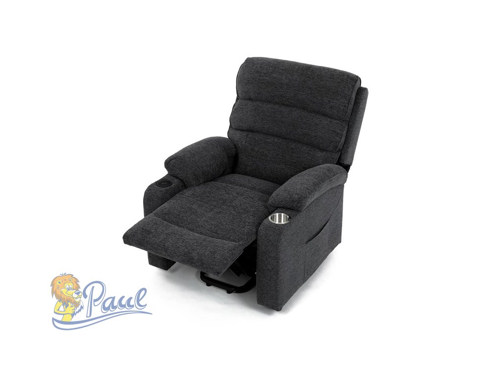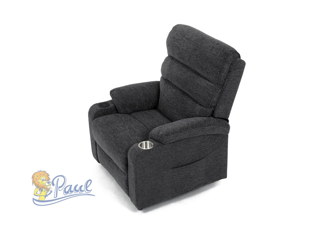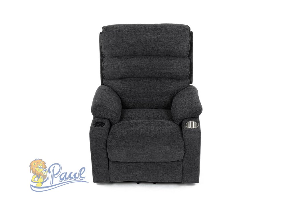 Křeslo polohovací elektrické, 1 motor, šedá látka, bezdrátové nabíjení pro mobilní telefon