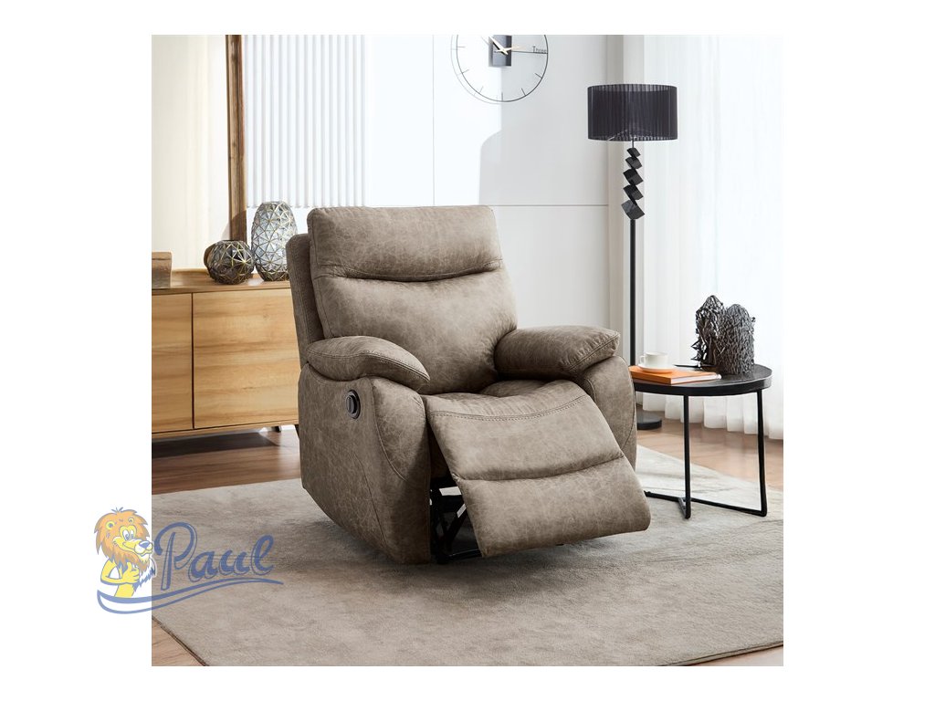 TV a relaxační křeslo s elektrickým ovládáním, potah lanýžová látka v dekoru vintage, 1 motor 240V