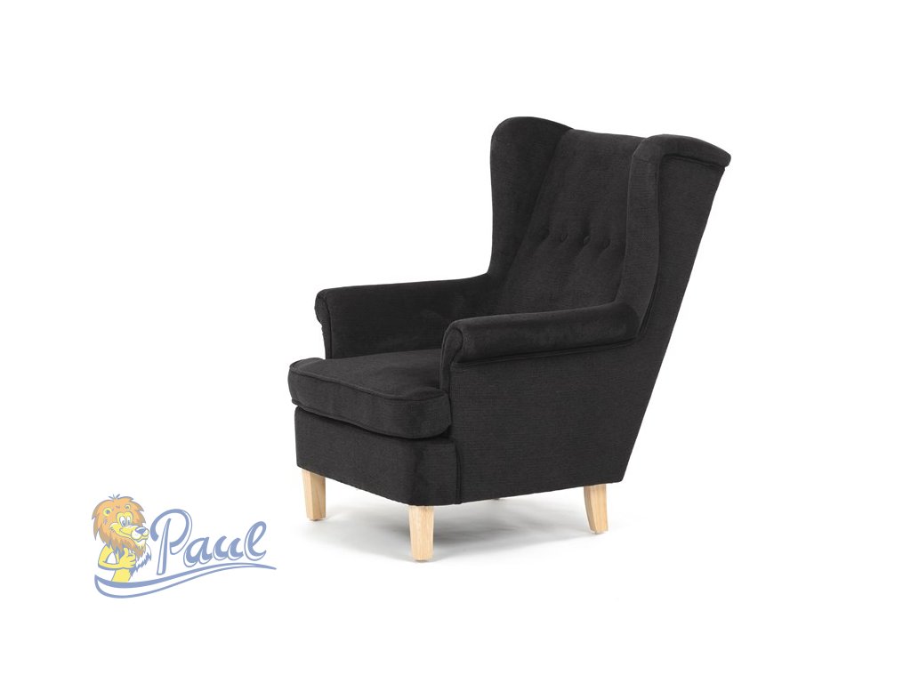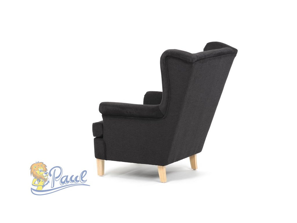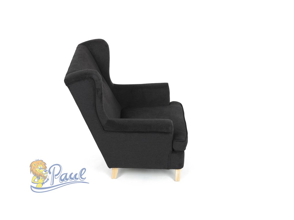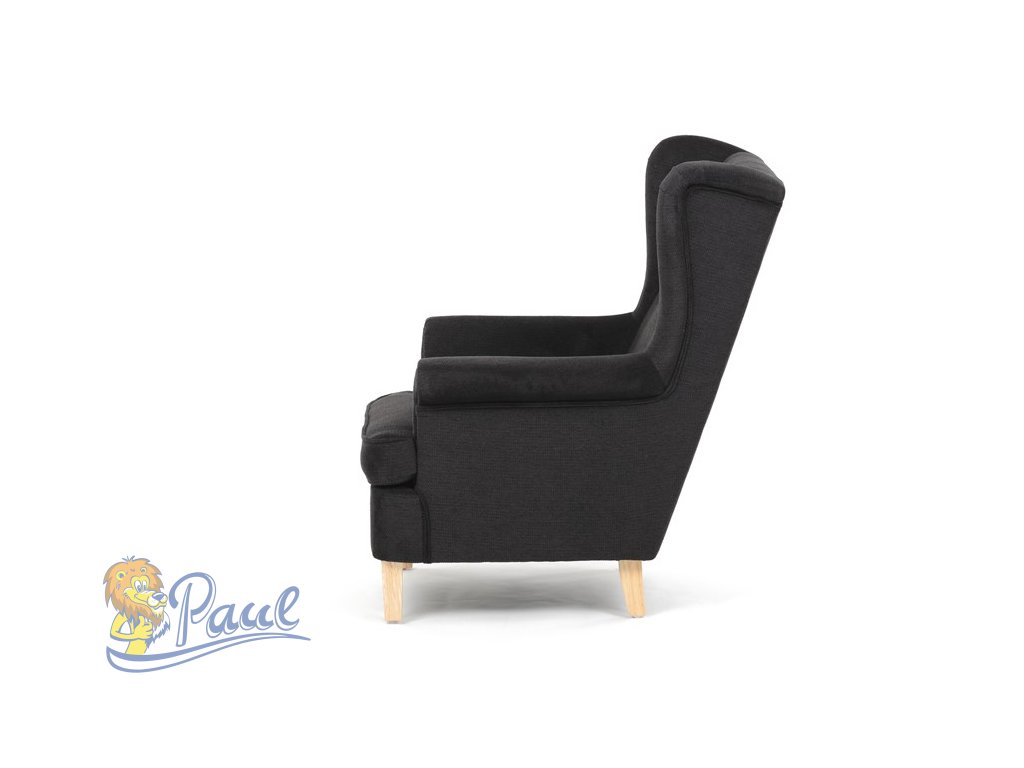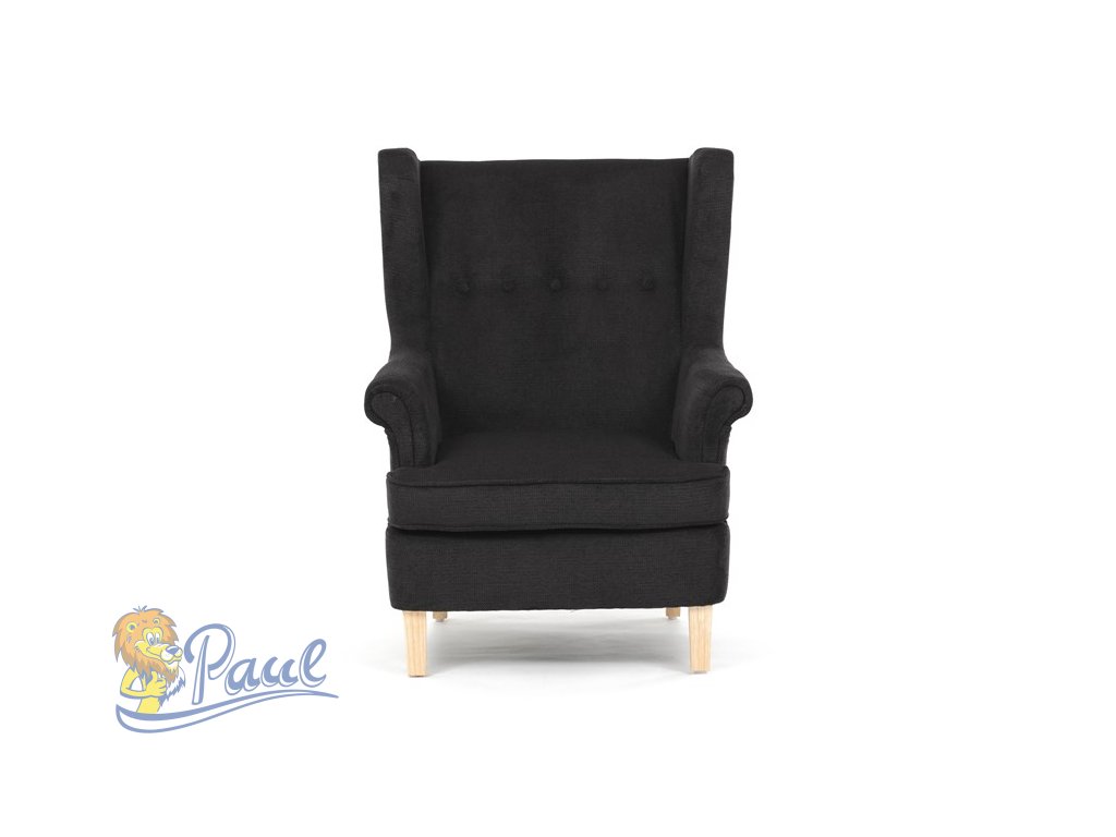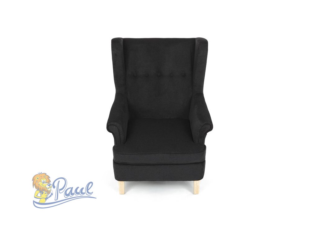 Křeslo ušák, černá látka, AK-388 BK2