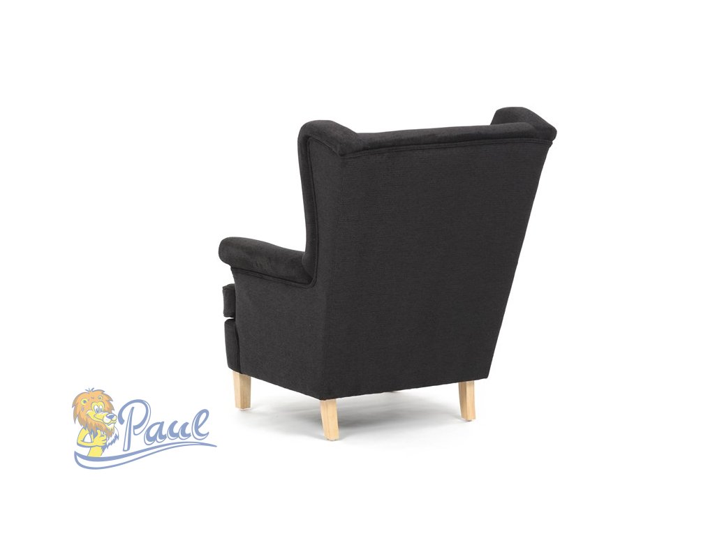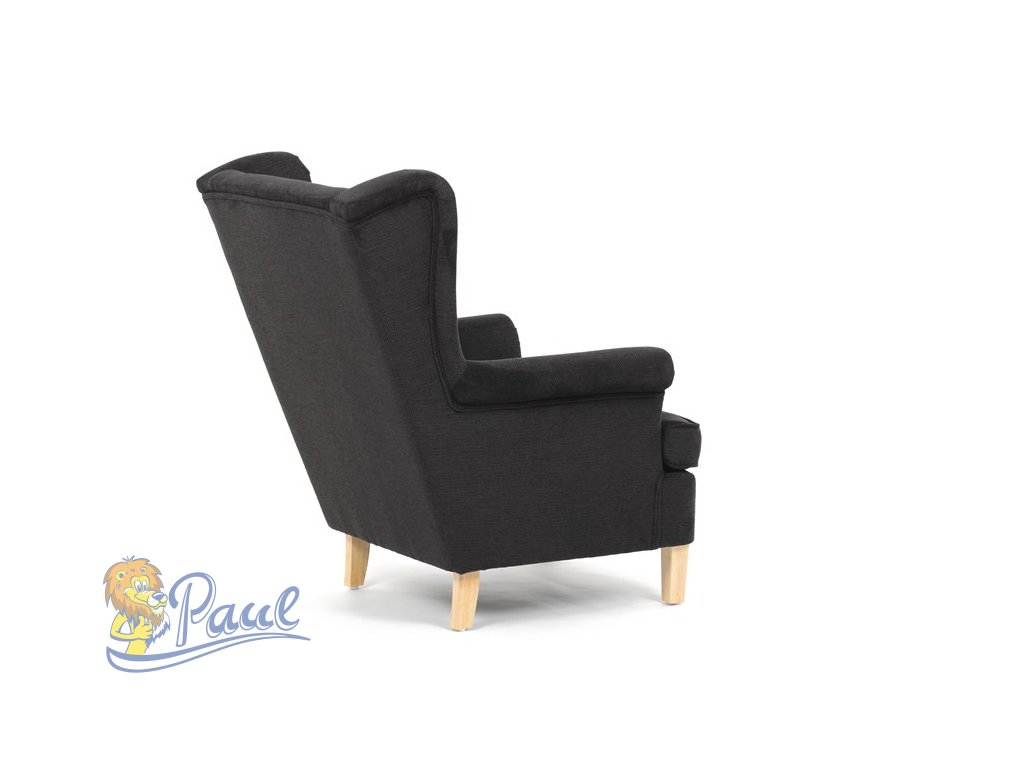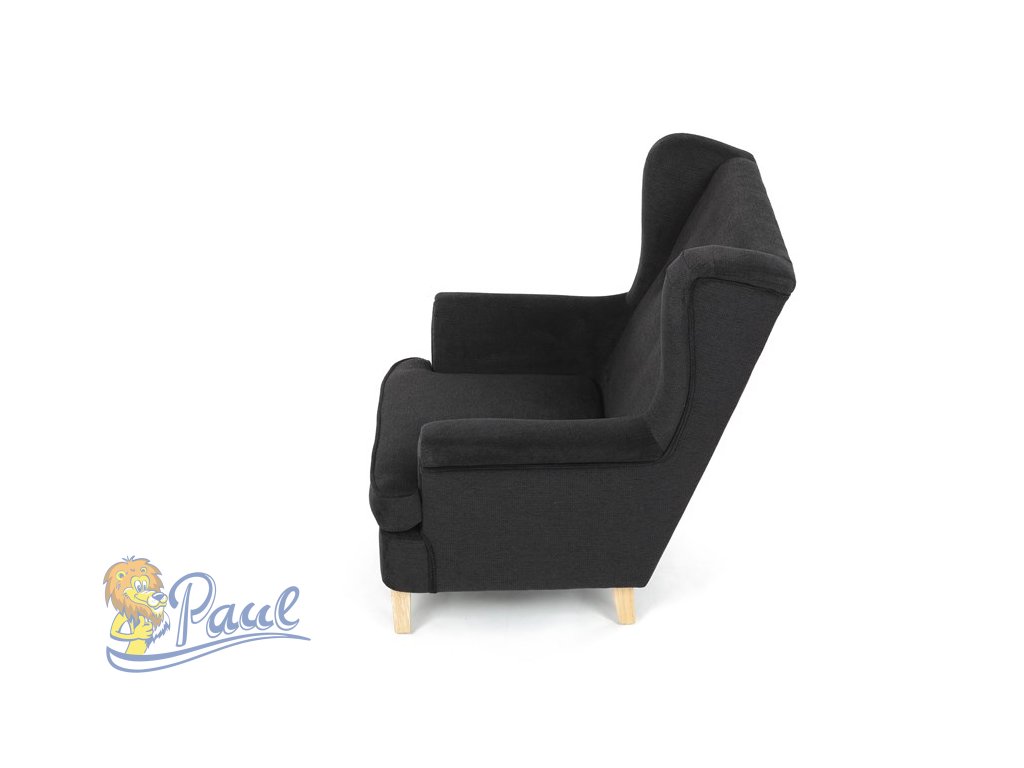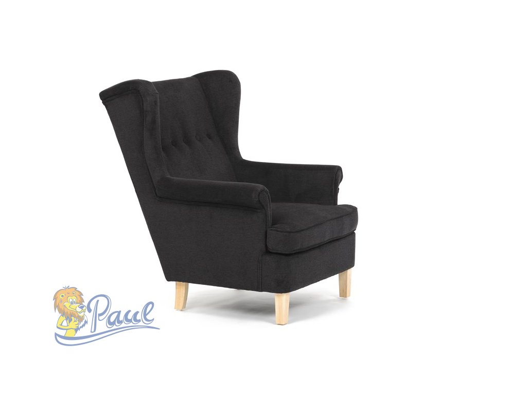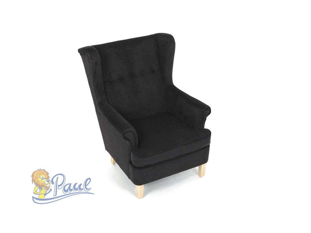 Křeslo ušák, černá látka, AK-388 BK2