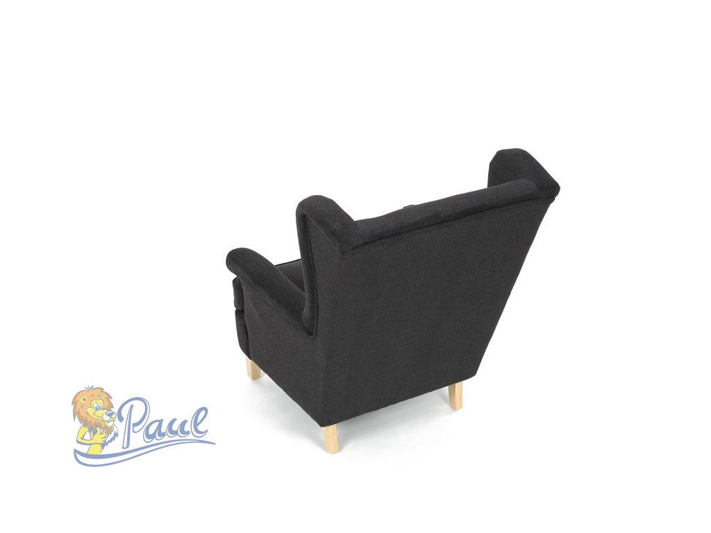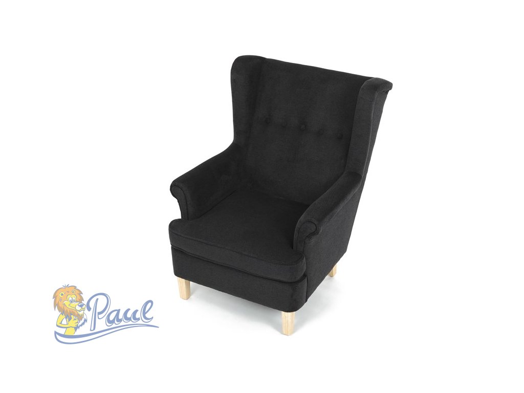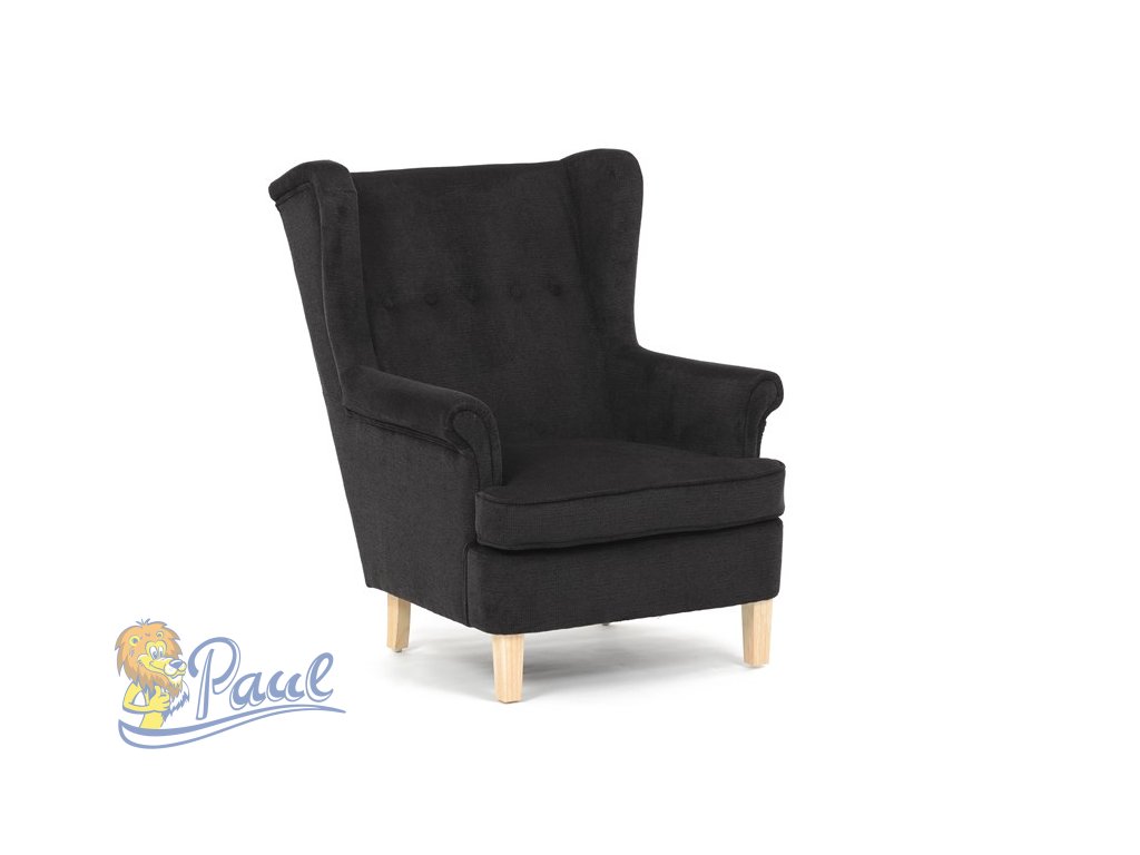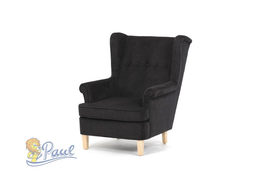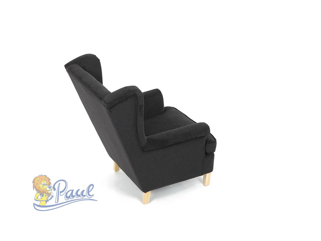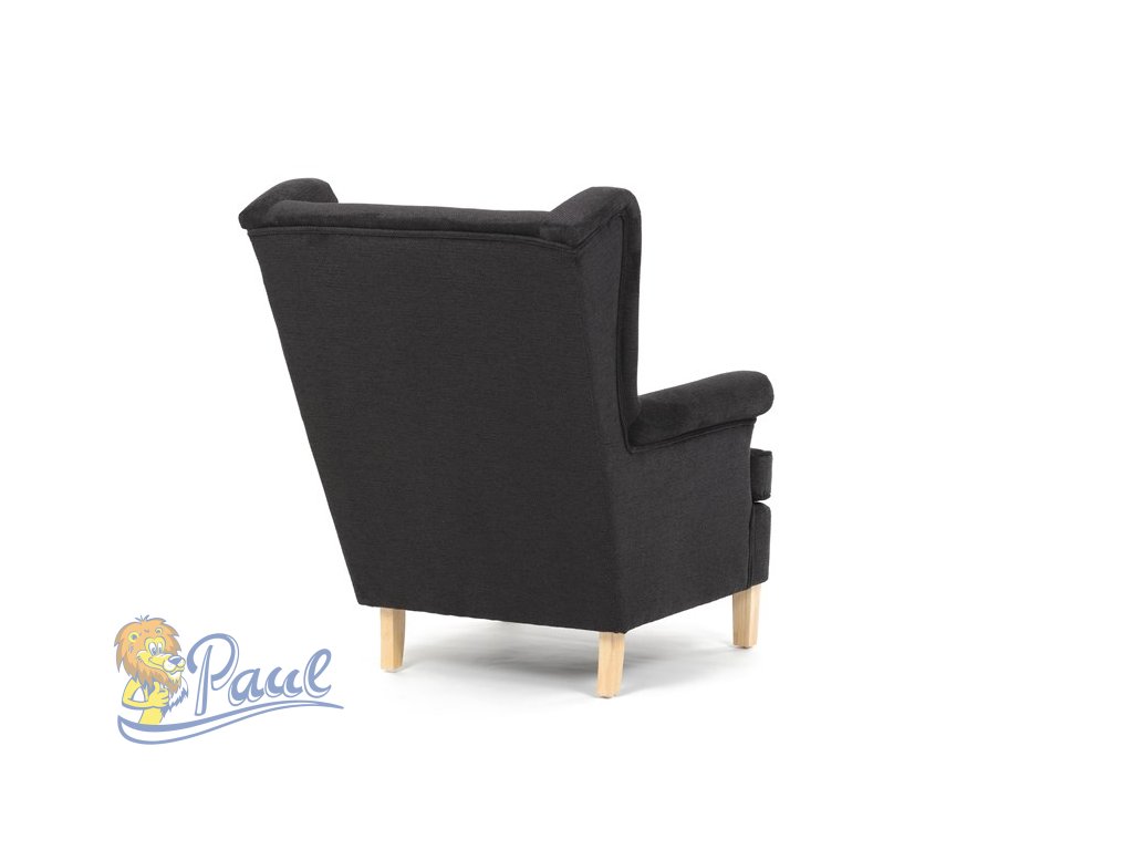 Křeslo ušák, černá látka, AK-388 BK2