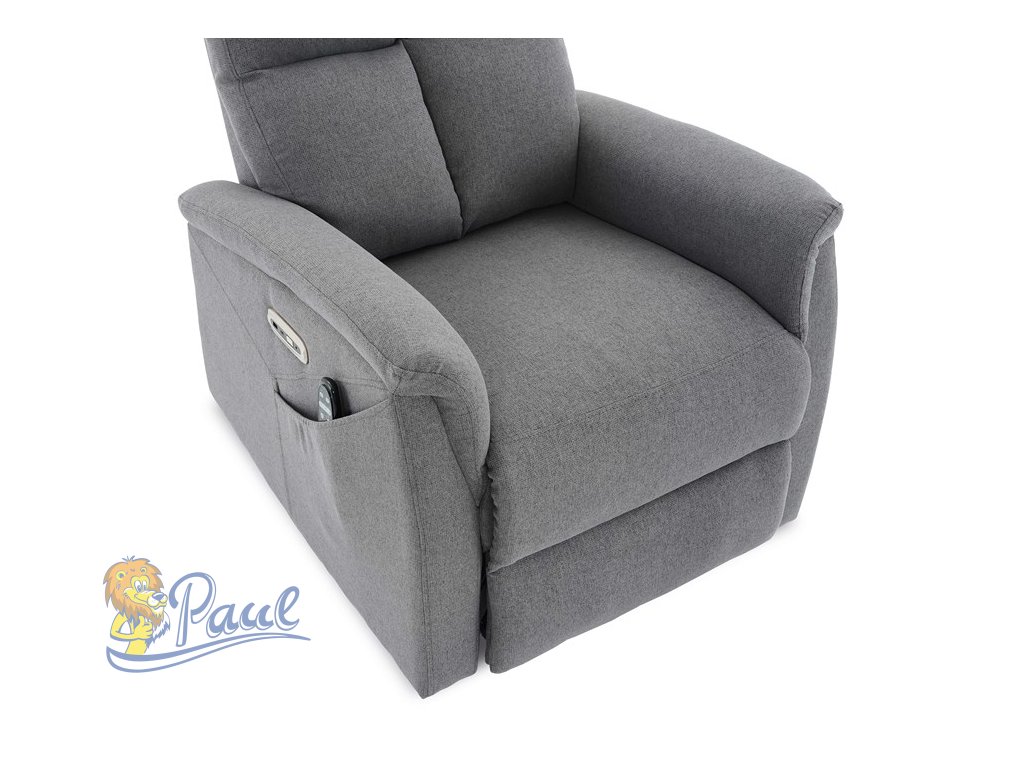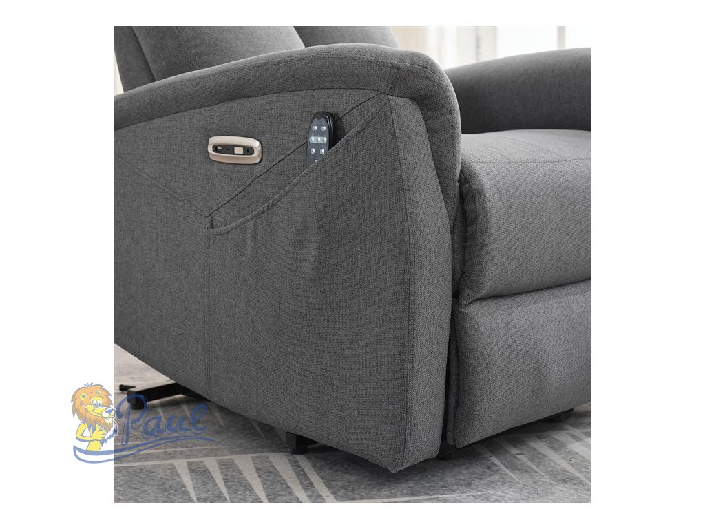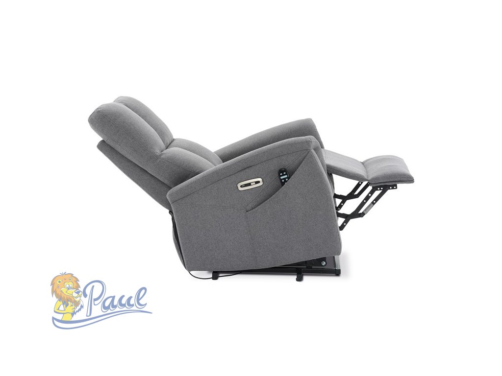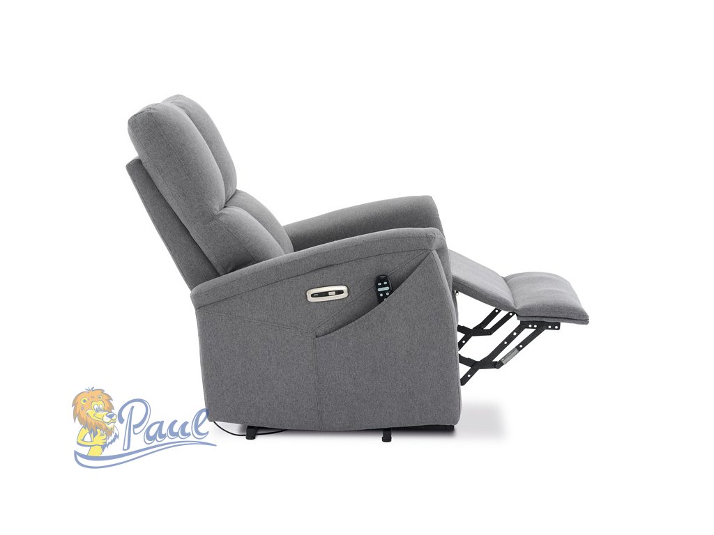 Polohovací křeslo, elektrické zabudované ovládání, šedá, látka, TV-929 GREY2
