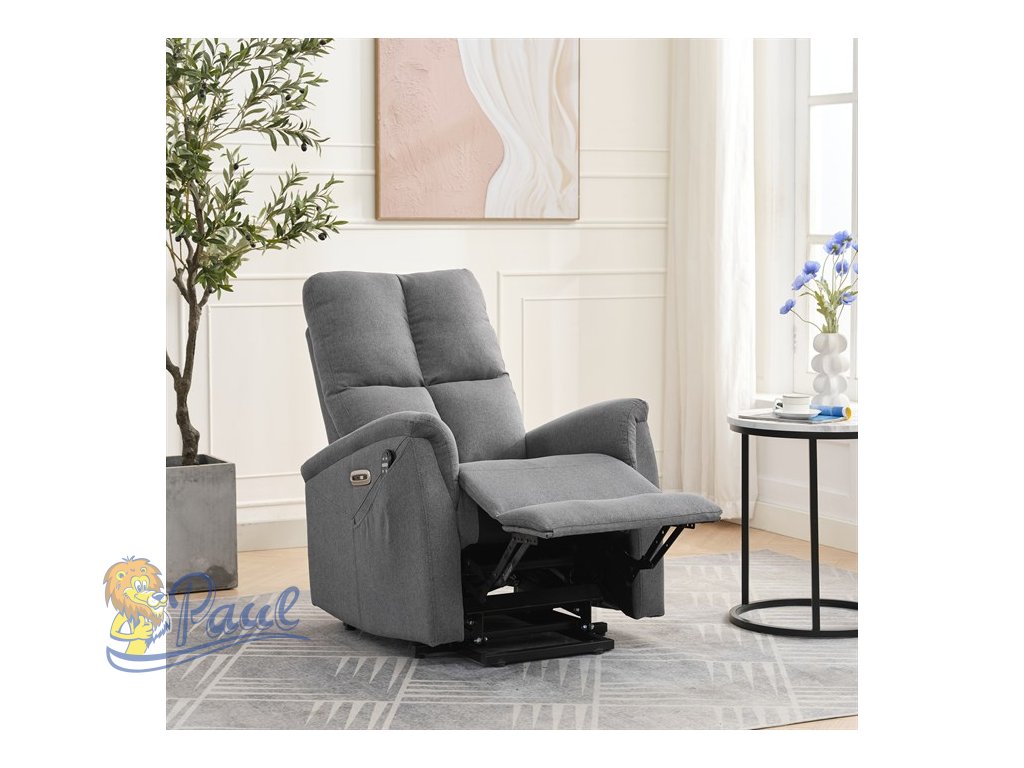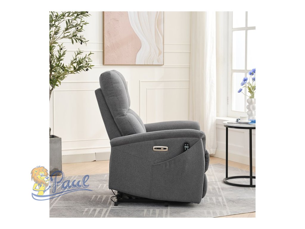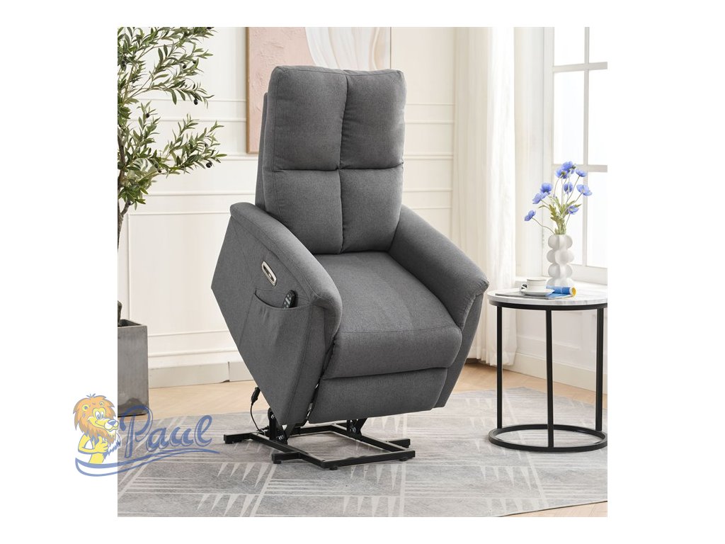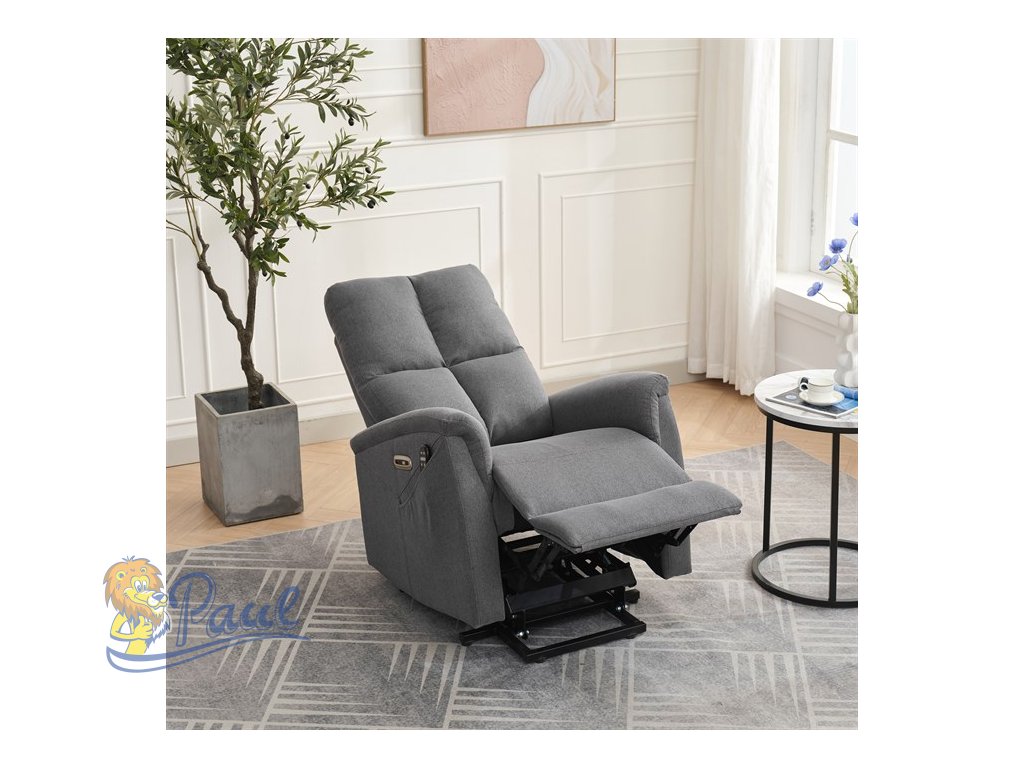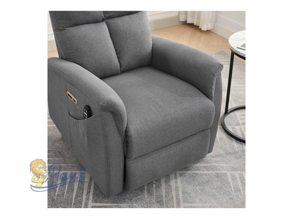 Objevte pohodlí a relaxaci s naším elektricky ovládaným relaxačním křeslem v moderní šedé barvě. Toto křeslo je navrženo tak, aby poskytovalo maximální komfort a zlepšilo váš domácí odpočinek. Ideální do obývacího pokoje, kde se stane vaším oblíbeným místem pro relaxaci. Klíčové vlastnosti: • Elektrické ovládání: Křeslo je vybaveno jedním motorem pro snadné a plynulé nastavování polohy opěradla a podnožky. • Výklopná funkce: Usnadňuje vstávání, což je ideální pro osoby s omezenou pohyblivostí. • Integrované ovládání s USB a USB-C: Panel umožňuje snadné nastavení křesla a nabíjení vašich elektronických zařízení přímo z křesla. • 8 bodová vibrační masáž: Strategicky rozmístěné body masáže poskytují maximální úlevu a uvolnění svalů. • Vyhřívání: Vyhřívací funkce je ideální pro chladnější dny a pomáhá zmírnit svalové napětí. • Kabelový ovladač: Snadno dostupný a intuitivní ovladač pro funkce masáže a vyhřívání. • Moderní design: Čalouněné měkkou a odolnou látkou v elegantní šedé barvě, která se hodí do jakéhokoli interiéru. Proč si vybrat naše elektrické relaxační křeslo? Naše elektricky ovládané relaxační křeslo je navrženo s ohledem na vaše pohodlí a zdraví. S funkcemi jako jsou vibrační masáž a vyhřívání, poskytuje úlevu od každodenního stresu a napětí. Integrované ovládání s USB porty je moderním doplňkem, který vám umožní zůstat připojení a nabíjet svá zařízení, aniž byste museli vstávat. Výklopná funkce je skvělá pro seniory nebo osoby s omezenou pohyblivostí, usnadňuje vstávání a zajišťuje bezpečnost. Zakupte si naše šedé elektrické relaxační křeslo ještě dnes a začněte si užívat luxusní pohodlí ve svém domově.Doplňkové parametry